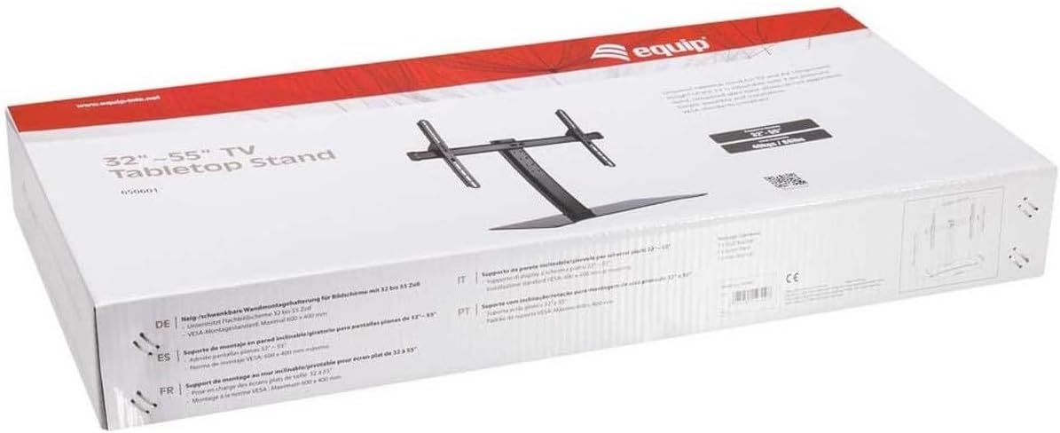 Supporto a muro per TV dalle dimensioni tra gli 80,96 cm (32") ed i 139,7 cm (55") Realizzato in metallo, è di colore nero Ha una massima portata di 40 Kg Certificazione CE, dimensioni: 28 x 60 cm