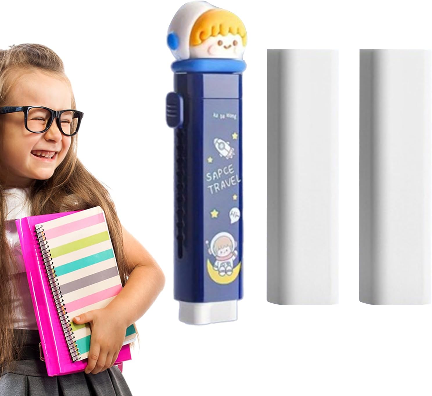 Cancellazione pulita ed efficiente: la nostra avanzata gomma per matita retrattile scorrevole garantisce la rimozione senza sforzo di segni di matita ed errori, lasciando una carta pulita e in ogni momento. Sperimenta le prestazioni di cancellazione senza lasciare tracce o macchie utilizzando la nostra gomma push-pull. Design : migliora la tua giornata con un'affascinante gomma retrattile scorrevole con un simpatico aspetto cartone animato che attirerà immediatamente la tua attenzione. Divertiti a cancellare con un umorismo allegro e rendere i compiti mondani più divertenti. Funzione di scorrimento: far scorrere la gomma verso l'esterno per cancellarla con precisione e scorrere nuovamente verso l'interno per riporlo senza problemi. La funzione di scorrimento della nostra gomma retrattile scorrevole garantisce una cancellazione facile e senza sforzo quando ne hai bisogno. Comodità portatile: la nostra gomma per matita retrattile scorrevole è adatta per i viaggi, con dimensioni compatte per una facile conservazione e portabilità senza sforzo. Mettilo nel tuo sacchetto di cancelleria e portalo ovunque tu vada per cancellare in modo pulito e preciso all'aperto. Molteplici usi: migliora il tuo gioco artistico con la gomma a matita retrattile scorrevole. Il suo design raffinato si adatta perfettamente a qualsiasi ambiente: in aziende, scuole, case e altri luoghi.
