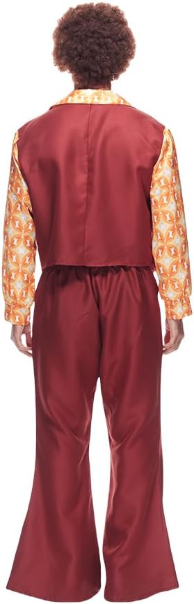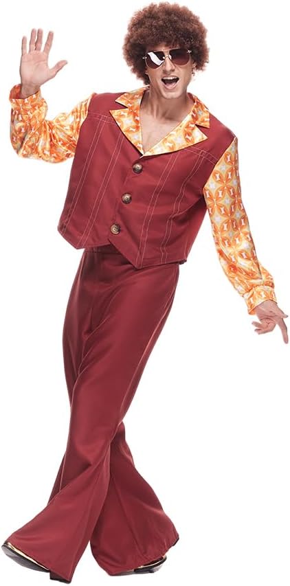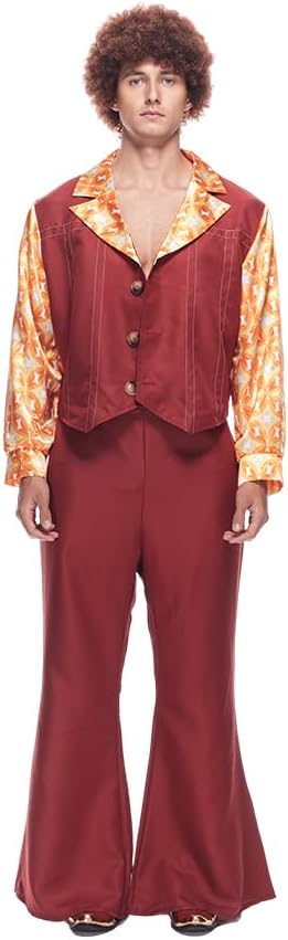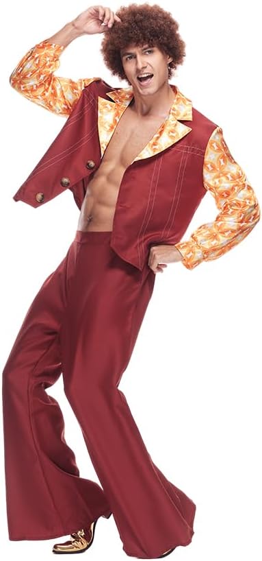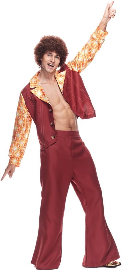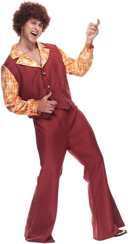 EraSpooky si impegna a fornirti prodotti e servizi migliori che renderanno la tua vita migliore. Migliora il tuo gioco in discoteca con il costume da discoteca Dynamite: uno spettacolo garantito che farà parlare tutti dei tuoi passi di danza leggendari e del tuo stile impeccabile! Questo outfit è l'emblema dello stile cool degli anni '70, caratterizzato da una camicia a maniche lunghe con stampa geometrica scintillante personalizzata che brilla e brilla ad ogni movimento. La combinazione gilet abbinato e pantaloni a zampa d'elefante porta lo stile a un livello superiore, ornato con filo bianco decorativo e accentuato da bottoni marrone chiaro per un tocco di autenticità. Chiarimento sulle dimensioni: M: Lunghezza giacca 58 cm/22,8 pollici, Torace 108 cm/42,5 pollici, Lunghezza pantaloni 106 cm/41,7 pollici, Vita 74 cm/29,1 pollici L: Lunghezza giacca 60 cm/23,6 pollici, Torace 116 cm/45,6 pollici, Lunghezza pantaloni 109 cm/42,9 pollici, Vita 82 cm/32,2 pollici XL: Lunghezza giacca 62 cm/24,4 pollici, Torace 124 cm/48,8 pollici, Lunghezza pantaloni 112 cm/44,1 pollici, Vita 90 cm/35,4 pollici Elenco dei pacchetti: Giacca, pantaloni.