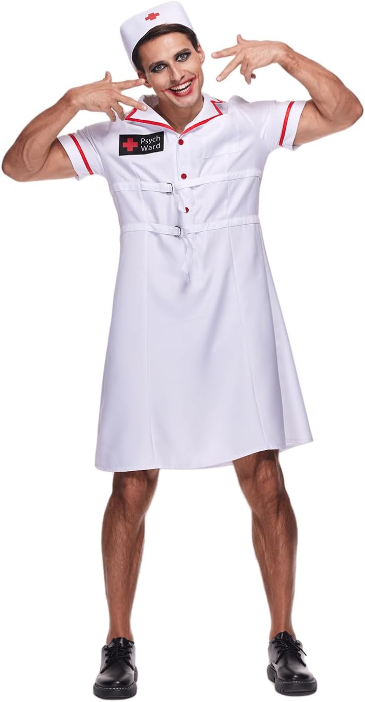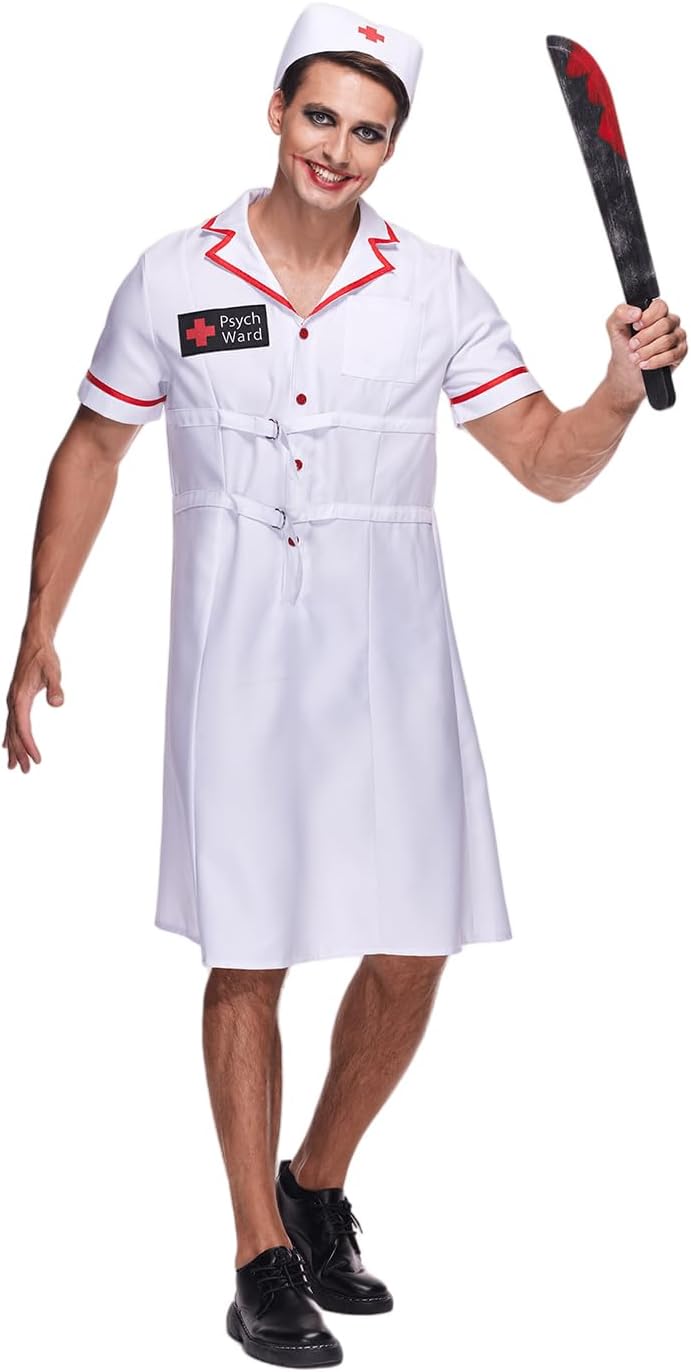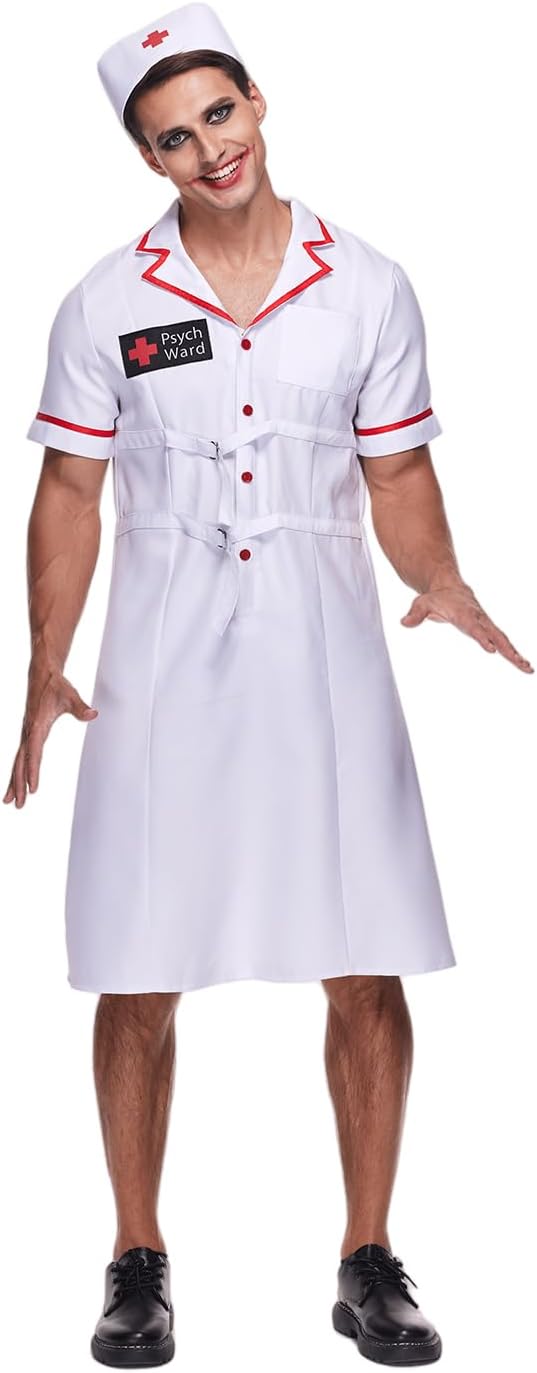 Preparati ad attirare tutti gli sguardi e a far rabbrividire chi ti circonda con questo spaventoso costume da infermiera per uomo! Progettata per gli appassionati di horror e di Halloween, questa uniforme da infermiera per manicomio è la miscela perfetta di brivido, stile e comfort. Che tu stia partecipando a una festa in maschera, a un evento in una casa stregata o che tu voglia giocare nei panni di un'infermiera terrificante, questo vestito fa per te.