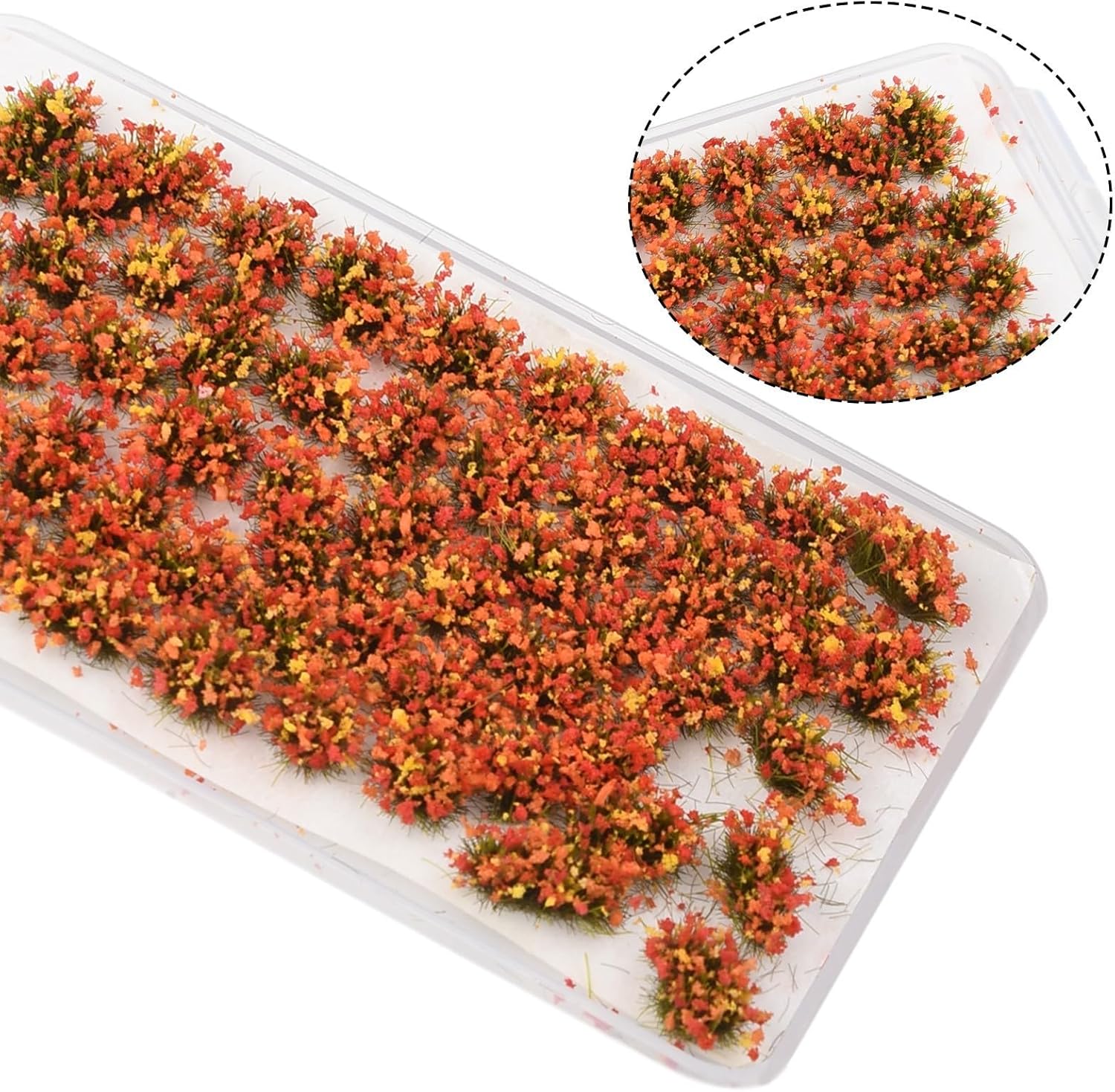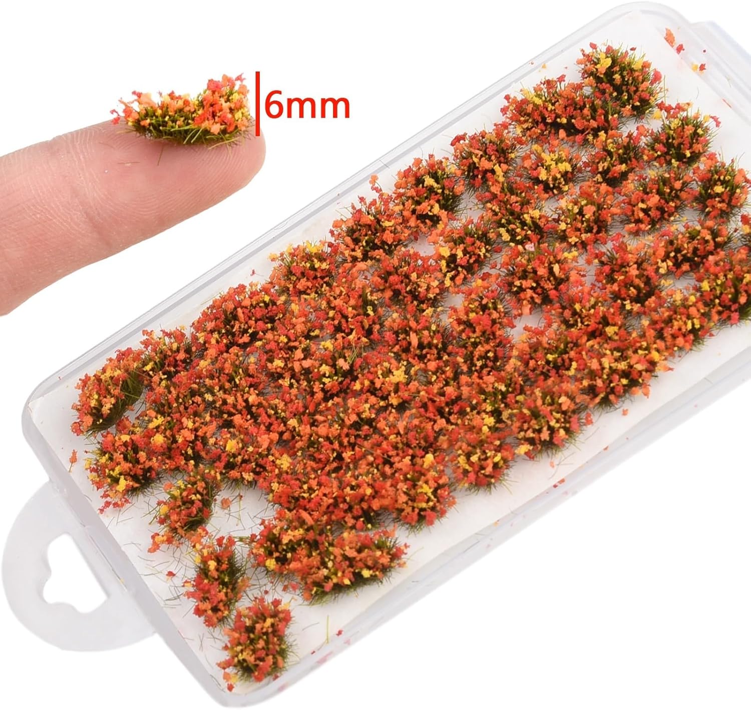 [53 fiori artificiali] Questo set include 53 fiori artificiali meticolosamente realizzati, progettati per migliorare le tue scene in miniatura con saturazione e dettagli realistici. Decorazione: perfetti per una varietà di scale di modelli (135, 148, 172, 187), questi fiori sono ideali per costruire modelli, tavoli di sabbia e layout di treni. [PAESAGGIO REALISTICO] Aggiungi un tocco di verde ai tuoi paesaggi modello, sia per scopi educativi che per progetti personali; i colori vivaci danno vita a qualsiasi scena. Adatto per molteplici occasioni: utilizza questi fiori per feste in giardino, esposizioni a casa o come parte del tuo materiale didattico psicologico; si adattano perfettamente a qualsiasi ambiente. [Promemoria dimensioni] Ogni pianta è alta circa 6-7 mm; si prega di controllare le dimensioni prima dell'acquisto per soddisfare le vostre esigenze.