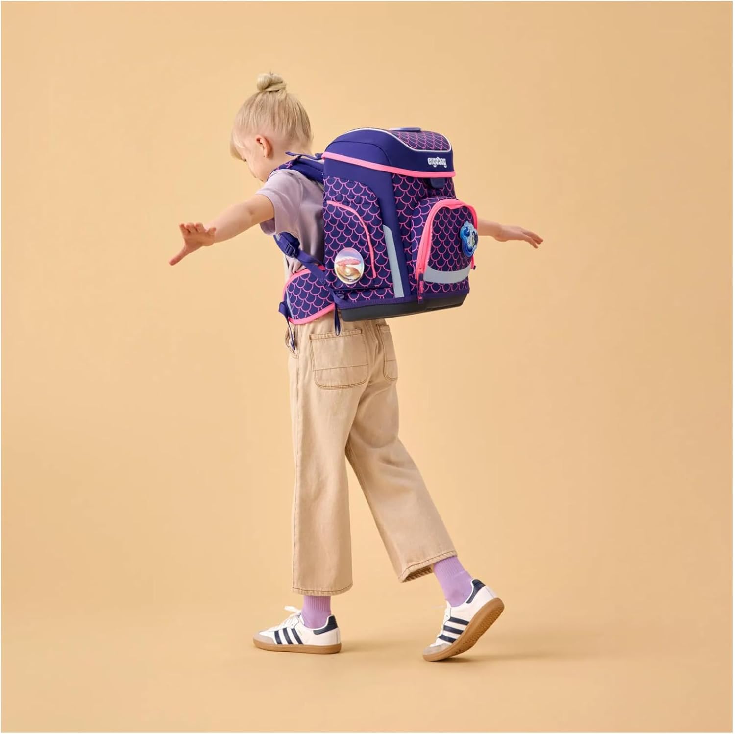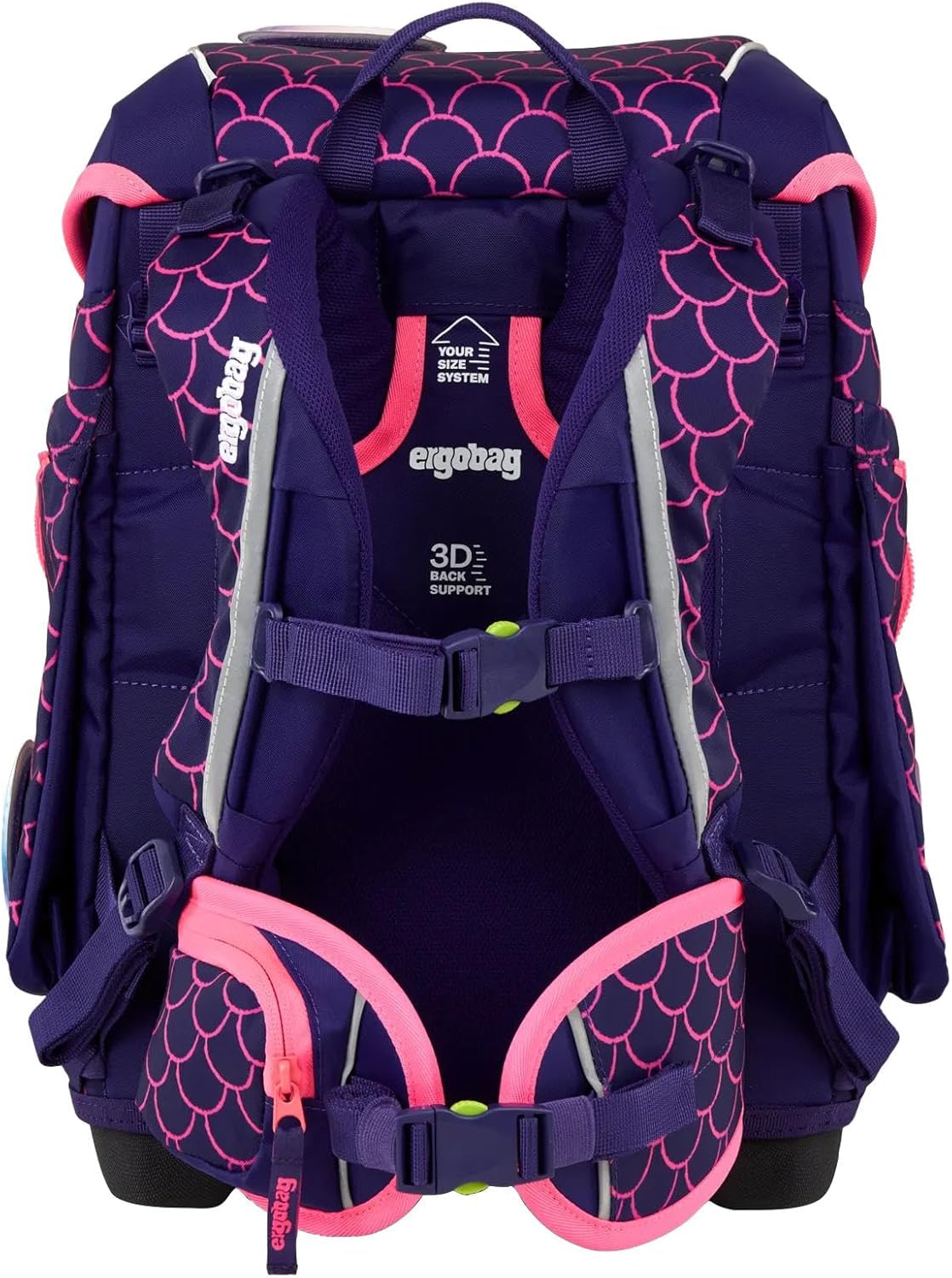 Ergonomico – Grazie al sistema regolabile in altezza, si adatta alla corporatura individuale ed è adatto a bambini piccoli e grandi. Le ampie pinne pelviche imbottite ripartiscono il peso sui fianchi e garantiscono un elevato comfort. Talento organizzativo: scomparto principale ben organizzato con suddivisione flessibile, portaquaderni integrato, scomparto anteriore e molti dettagli intelligenti per il massimo ordine. Aprire e chiudere il coperchio a cerniera è facilissimo. Resistente e riflettente – Il robusto vassoio di base rende questo zaino particolarmente resistente. Inoltre, l'acqua non può entrarci se finisce in una pozzanghera. Catarifrangenti su tutto il perimetro garantiscono visibilità da tutti i lati. Personalizzazione – Con i Kletties puoi rendere unico il tuo ergobag. anche le tasche frontali e laterali si personalizzano. con vari Zippies trasformi il tuo ergobag in qualcosa di speciale. Set da 5 pezzi – cartella scolastica ergonomica dimensioni 28 x 40 x 25 cm (LxAxP), sacca sportiva, 5 Kletties, astuccio rigido completo di 22 pezzi e astuccio per matite. Prodotto in modo responsabile con 27,7 bottiglie in PET riciclate.