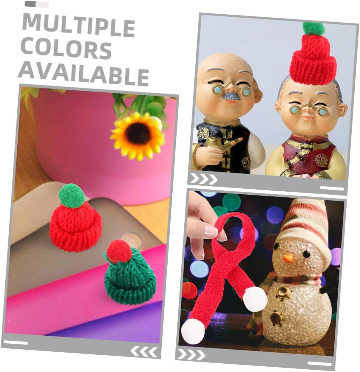 Varietà design: set include una varietà design, come cappelli, cilindri e sciarpe a righe, offrendoti diverse opzioni per tue esigenze artigianato, mini sciarpa, sciarpe lavorate a maglia a righe in miniatura Design festivo: gli affascinanti design a tema natalizio aggiungono un tocco spirito natalizio a qualsiasi progetto artigianale, rendendoli ideali per decorazioni natalizie, mini cappelli a cilindro per lavori artigianali, piccole sciarpe a forma neve Ottimi per feste bricolage: questi mini accessori sono ideali per feste bricolage, consentendo a tutti creare proprie decorazioni natalizie uniche, sciarpa con neve in miniatura, cappelli lavorati a maglia in miniatura Festivo e divertente: i design a tema natalizio aggiungono un festoso e divertente ai tuoi lavoretti natalizi, rendendoli ideali per decorazioni stagionali, mini cappellini per lavoretti, cappello da costume da barbuto Facile da attaccare: i mini cappelli e sciarpe possono essere facilmente cuciti o incollati su varie superfici, rendendoli adatti a tutti i tipi progetti artigianali, cappelli da neve per l'artigianato, cappelli da compleanno