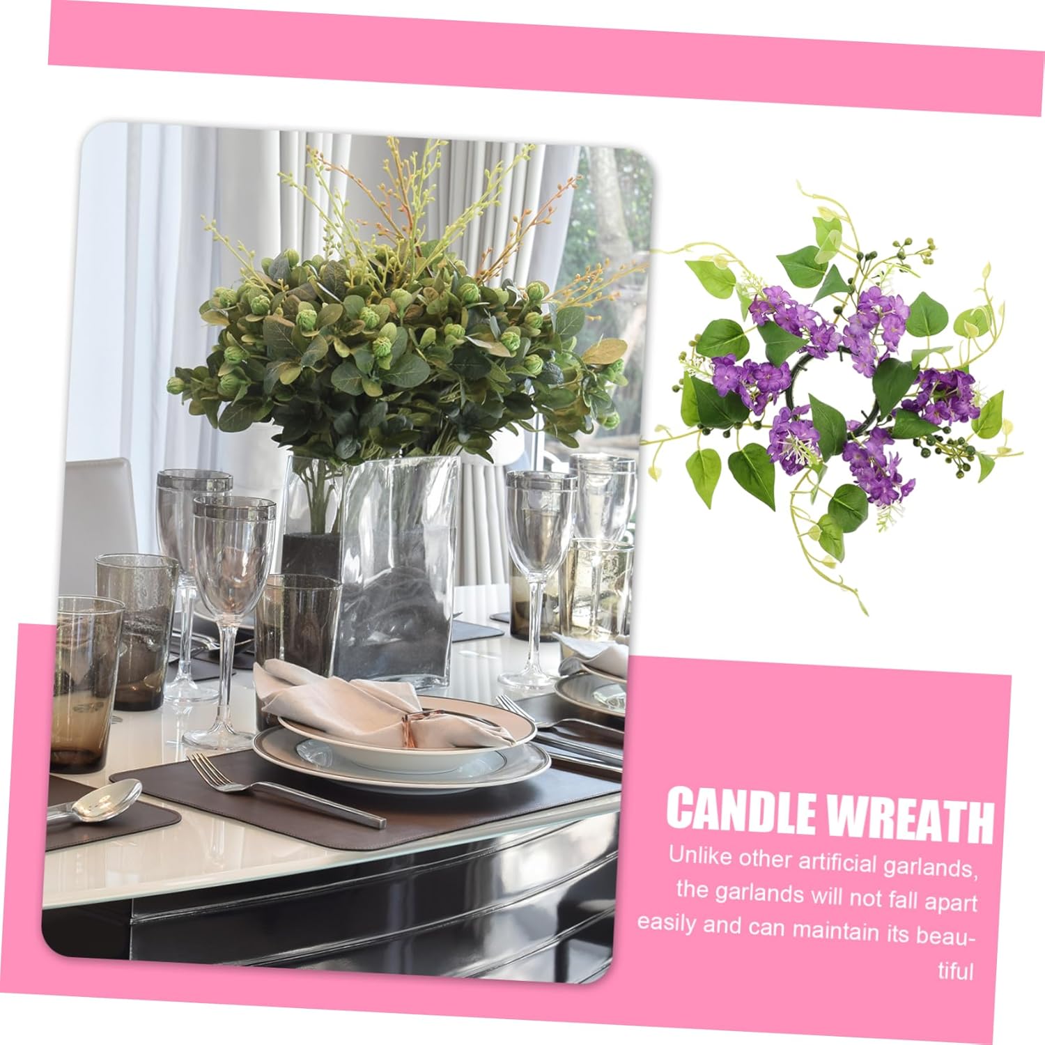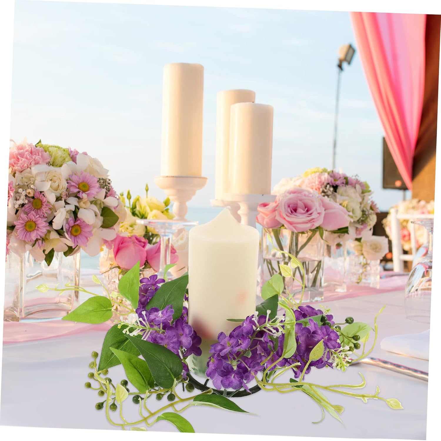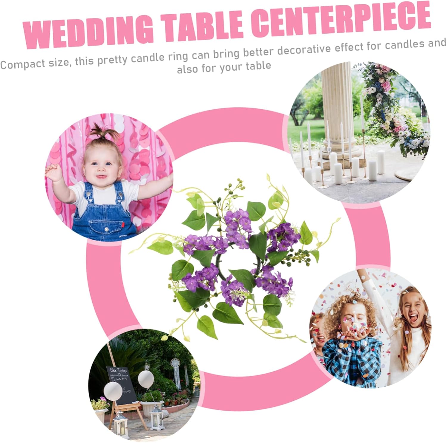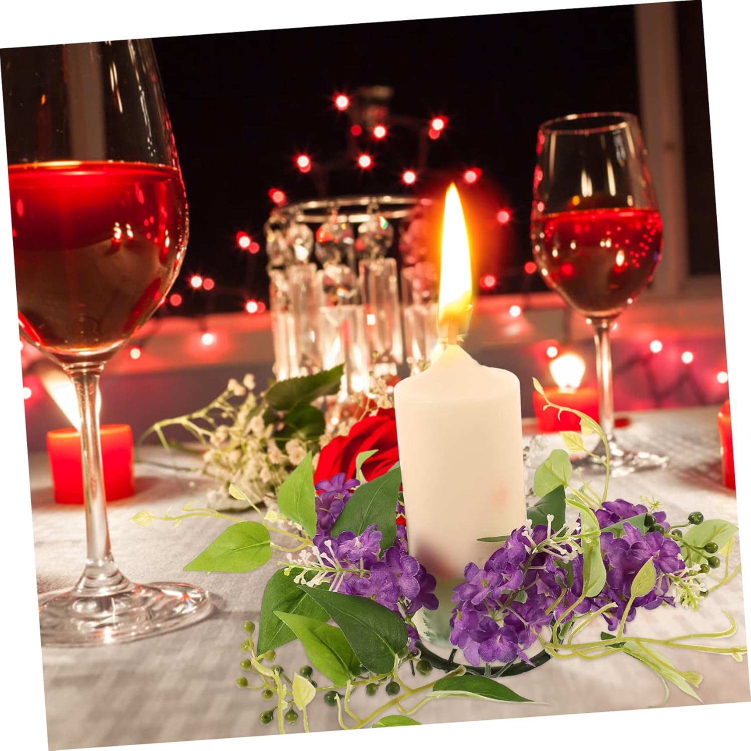 Anelli per candele: realizzati in plastica e tessuto, questi anelli per candele non sbiadiscono o rompono facilmente, sono resistenti e adatti per decorazioni per feste nuziali. Anello portacandele con fiori artificiali: per decorare la casa, feste, banchetti, riunioni, matrimoni, compleanni e altre feste, anello portacandele con fiori artificiali Anelli di candele floreali: presentano un aspetto realistico, ricco di un'atmosfera calda e piacevole, centrotavola floreali per tavoli Anelli portacandele per pilastri: illuminano l'atmosfera della festa, un'atmosfera più dolce e romantica per la festa e la casa, anello portacandele per matrimonio di candele: design compatto e leggero per un facile trasporto, una quantità sufficiente può soddisfare le vostre esigenze di quantità, centrotavola floreali