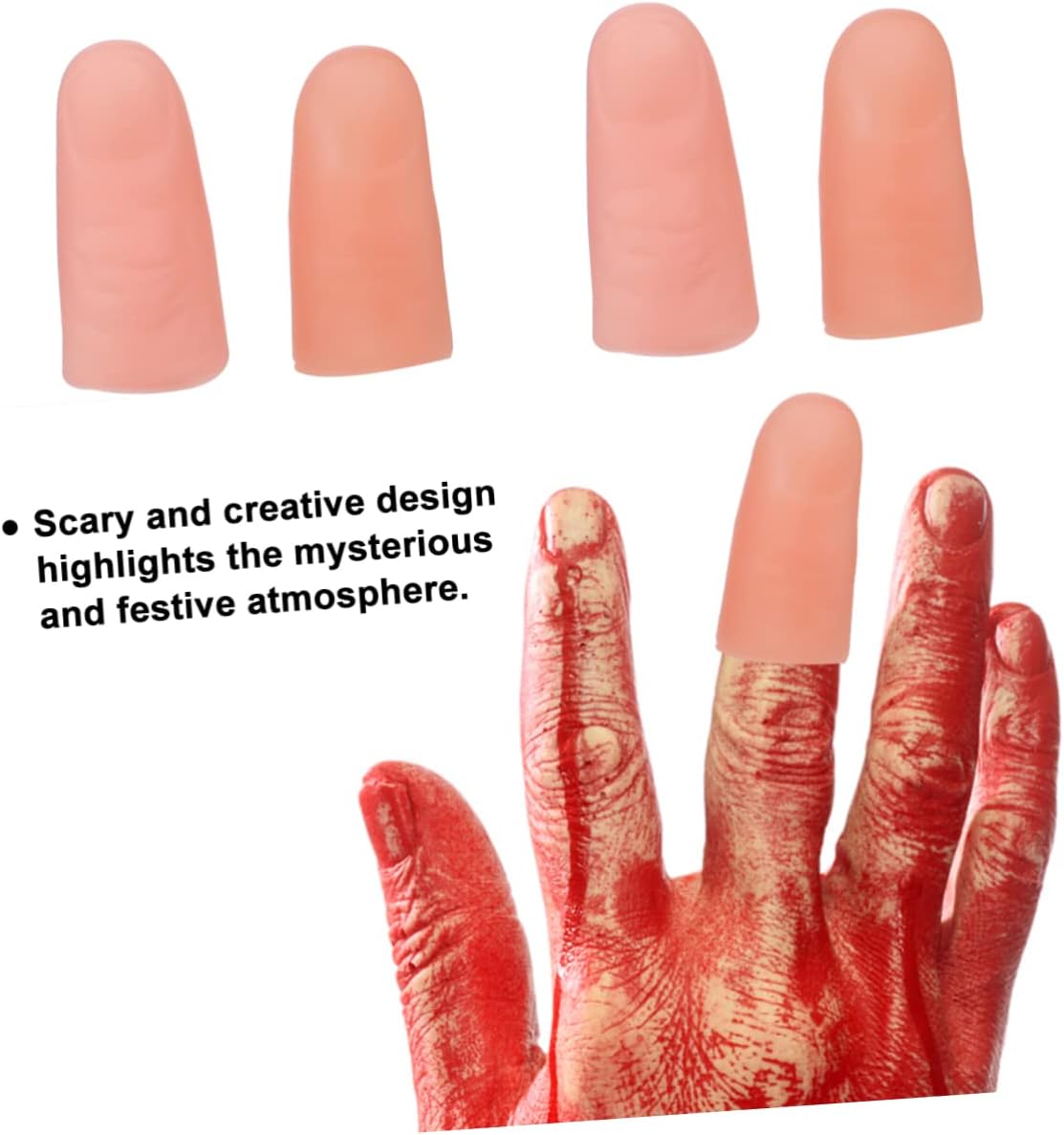 Applicazione: Queste punte dei pollici sono strumenti utili nelle esibizioni e nelle feste di taumaturgia e possono essere utilizzate per molti trucchi di taumaturgia come oggetti di scena e scherzi, simulazioni di dita finte e accessori per dita. Oggetti di scena per trucchi con le dita artificiali: le dita artificiali sono fatte di materiale che non si scheggia. Usalo per praticare il classico trucco taumaturgia, puoi usarlo molte volte, Accessori per dita truccate - È ottimo anche come accessorio di Halloween, decorazione di Halloween, oggetto per scherzi, ecc., Puntelli per dita simulati Puntelli per trucchi - un oggetto di scena per feste taumaturgia che ti rende diverso di notte, Puntelli per dita Puntelli per dita finte - Il design inquietante e creativo evidenzia la misteriosa atmosfera festosa, puntelli per dita finte simulati