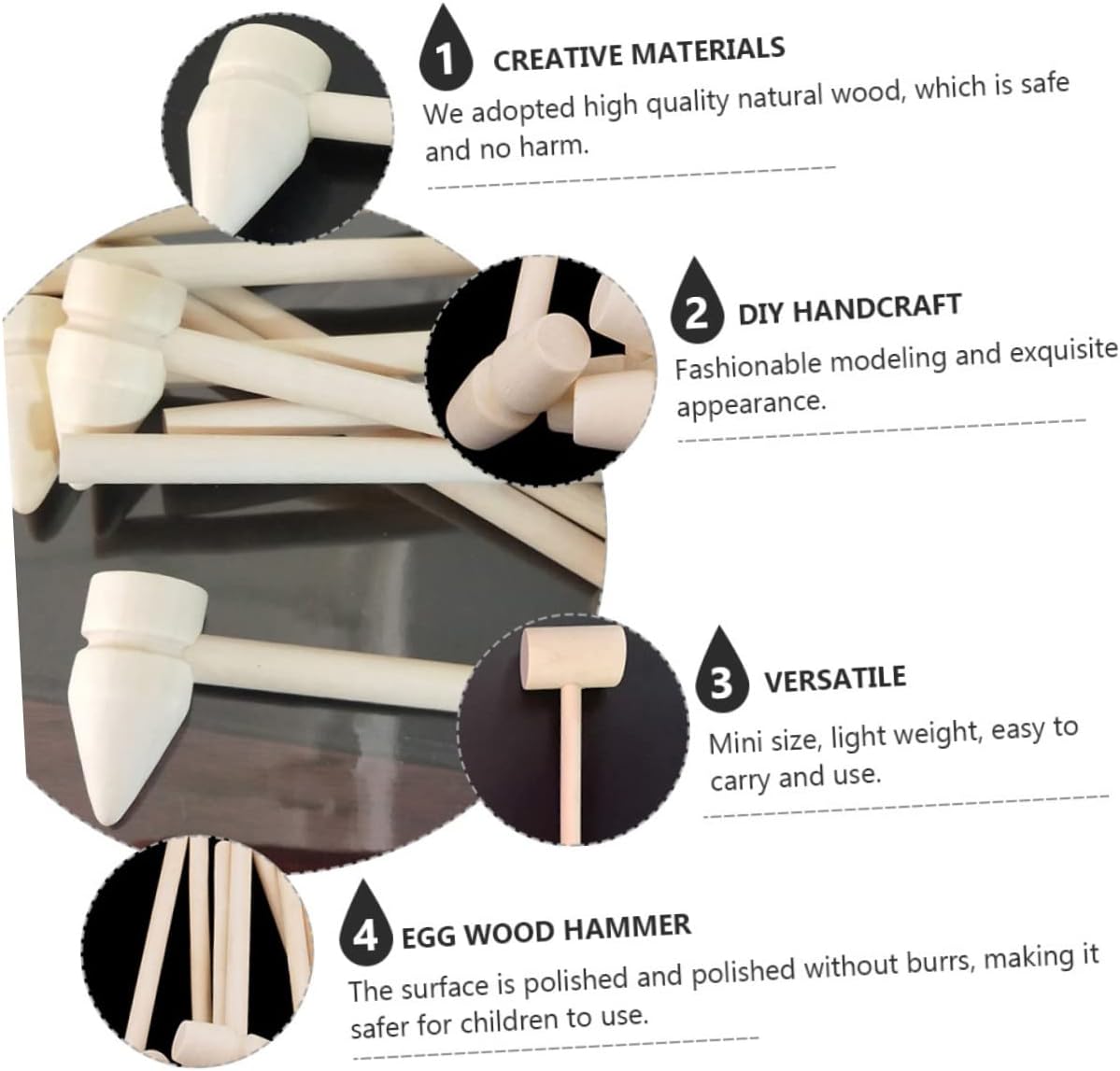 Mini martelli di legno: ha un design semplice ma molto pratico da usare e ti offre un'esperienza d'uso, martelli di legno martelli di granchio per: anche un'idea regalo per i tuoi bambini, ti piacerà molto, martelli giocattolo martello di legno: ampia gamma di applicazioni, per lavori fai da te, per battere torte planetarie ecc., martelli di granchio mini martelli di legno mini per: realizzati in materiale di legno sicuro e di alta qualità, riutilizzabili, piccoli martelli creativi Martelli di granchio: il design con manico lungo fornisce una presa sicura e comoda, è comodo da usare e interattivo