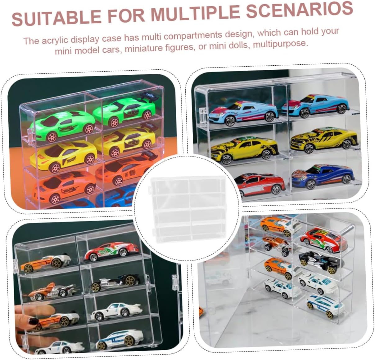Organizzatore trasparente per vetrine: la vetrina è adatta per bambole micro paesaggistiche da te, altre opere d'arte, conservazione e visualizzazione modelli manuali, espositore per modellini auto Vetrine per modelli: la vetrina in plastica ha un design multiscomparto, può contenere i tuoi mini modelli auto, figure in miniatura o mini bambole, vetrina per modelli Custodia per modellini auto: la scatola espositiva in plastica può fornire effetti protezione per tue , per proteggerle e altri danni, vetrina per modellini auto Vetrina per modelli auto: la vetrina è realizzata in materiale plastico qualità, robusta e sufficientemente trasparente per l'uso espositivo, mini vetrina Custodia per macchinine giocattolo: la della scatola espositiva in plastica adotta un magnete, la rende facile da aprire e chiudere, comoda da usare, custodia espositiva per auto
