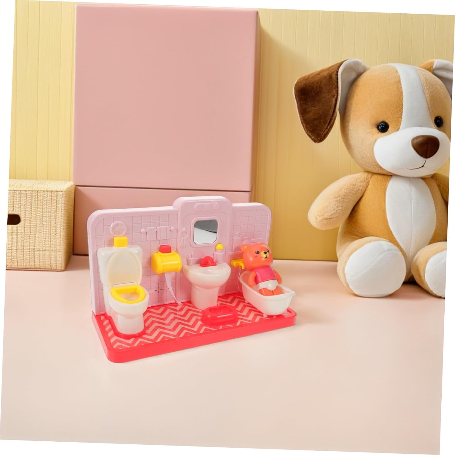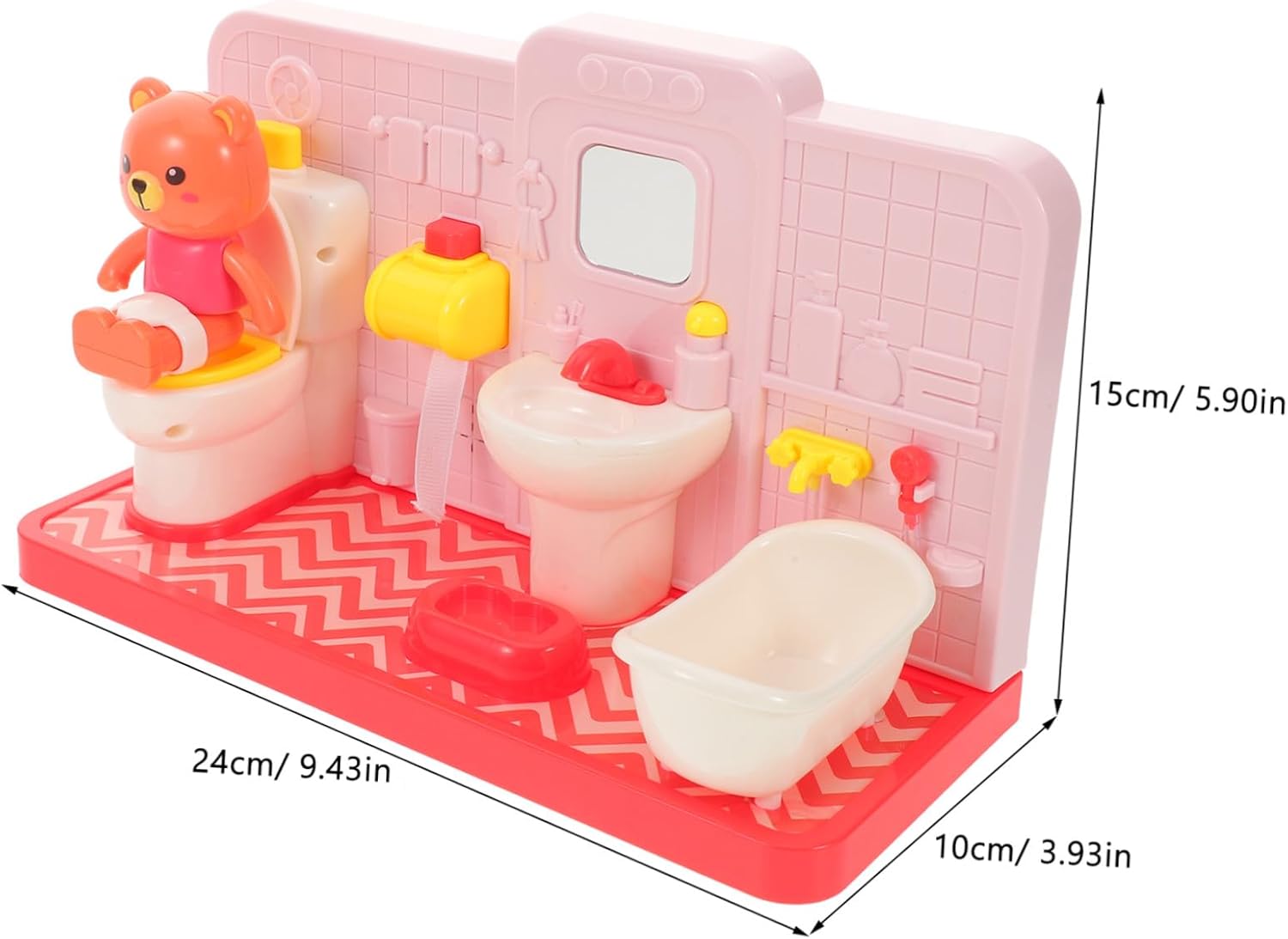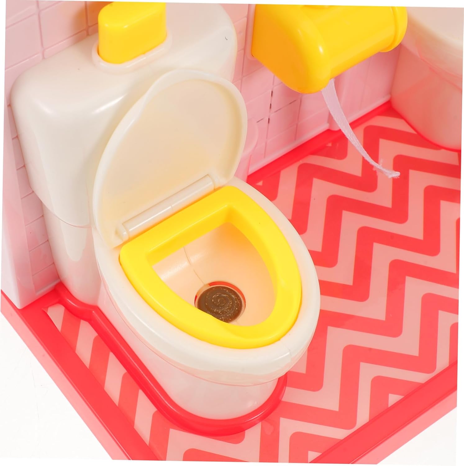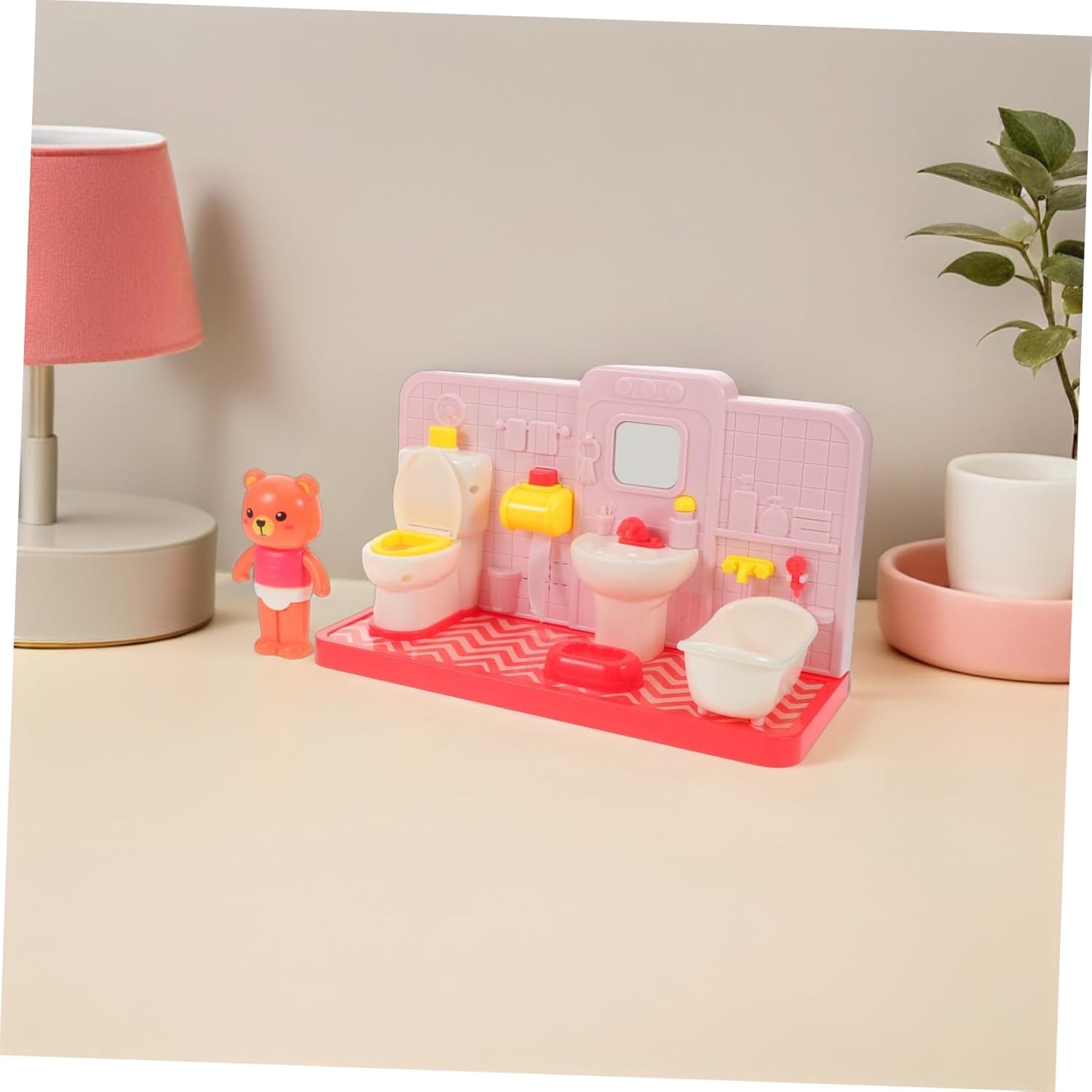 Gioco di finzione in bagno: il simpatico set da gioco per il water a forma di orso fonde perfettamente elementi del water, della vasca da bagno e della orso, invitando i ad ampliare la loro immaginazione durante il gioco di finzione in bagno, simpatico giocattolo da vasino a forma di orso, divertente set da gioco per il water Dimensioni perfette: mini set di giocattoli da bagno / accessori per bambole, la struttura compatta assicura che i possano praticare in modo indipendente le routine del bagno ovunque in casa, mobili da bagno in miniatura, giocattoli da vasino Design realistico: questo giocattolo per il bagno della casa delle bambole presenta un set da gioco per wc in miniatura realistico, che aiuta i ad adattarsi facilmente alle vere esperienze di addestramento al vasino e a sviluppare buone abitudini in bagno, giochi di finzione in bagno, giocattoli da bagno finti Gioco educativo: giocattoli per l'addestramento al vasino / set da gioco educativo per il bagno incoraggiano l'apprendimento precoce, coltivando le capacità sociali e linguistiche dei attraverso divertenti giocattoli per il bagno finto, simpatico giocattolo per il bagno a forma di orso, gioco di finzione per il bagno Simpatico giocattolo per il bagno a forma di orso: giocattoli finti per il bagno in una casa delle bambole / mini set di giocattoli per il bagno che offrono un autentico gioco di ruolo in bagno, preparando i al successo nell'uso del vasino nel mondo reale, set di gioco educativo per il bagno, vasino giocattolo