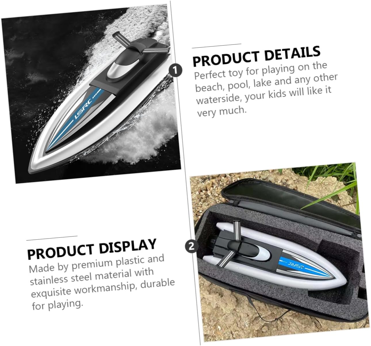 Giocattolo barca telecomandato: il nostro giocattolo barca da corsa è realizzato in plastica di e acciaio inossidabile, caratterizzato da una barca con telecomando solida e Barca da corsa: con una borsa portaoggetti, la barca è leggera e portatile, il che è molto comodo da trasportare, giocattolo elettrico per barca Barca telecomandata: con questa barca, potrai goderti momenti felici con la tua famiglia o i tuoi amici!, giocattolo per barca da corsa Giocattolo elettrico per barca: realizzato in plastica di alta qualità e acciaio inossidabile con lavorazione squisita, per giocare, giocattolo elettrico per barca Giocattolo da barca da corsa: giocattolo perfetto per giocare in piscina, al lago e in qualsiasi altro luogo, piacerà moltissimo ai tuoi , giocattolo da barca elettrica