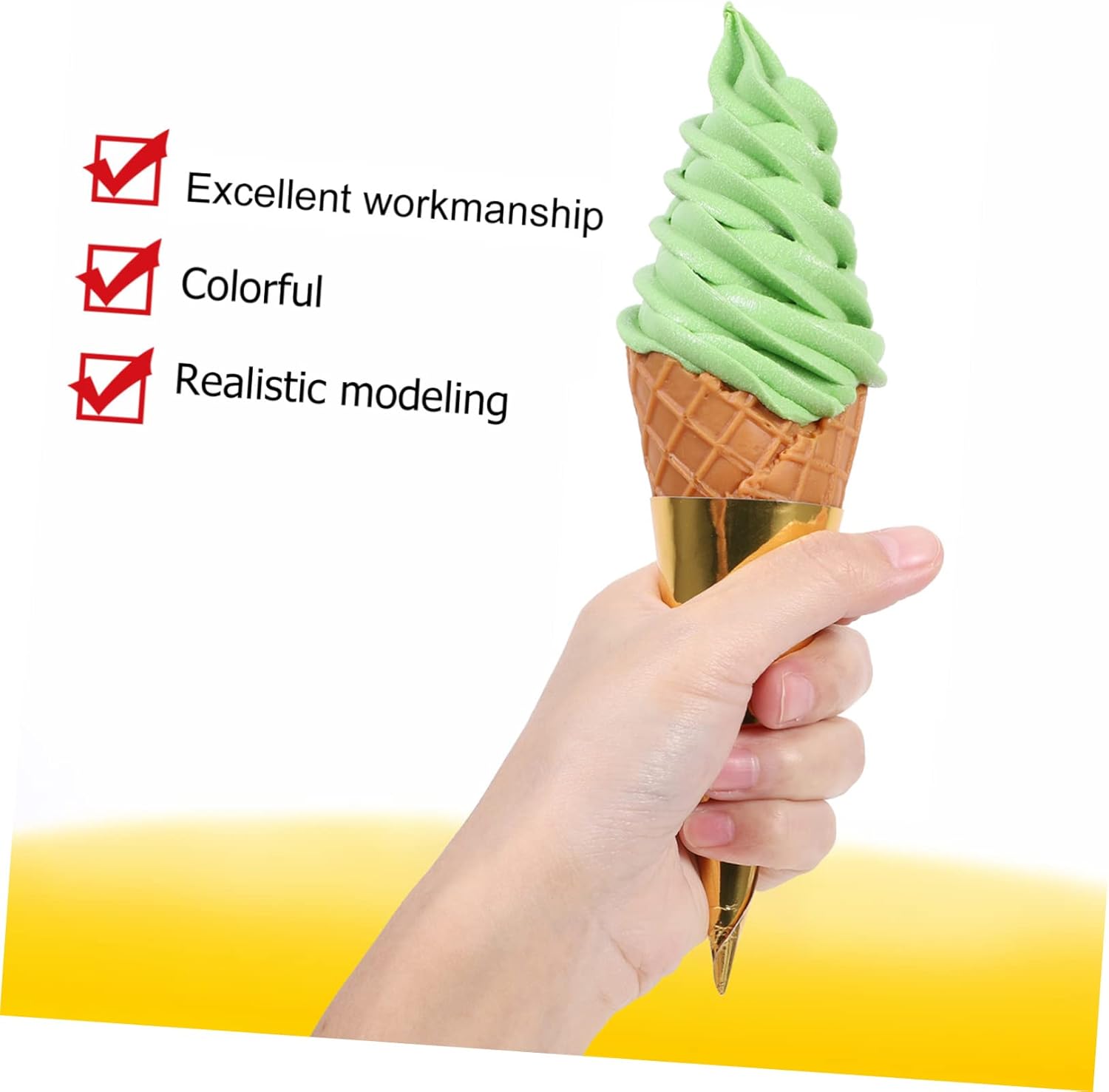 Decorazione estiva per dessert gelato - il suo aspetto realistico e la sua forma con un buon effetto decorativo ti convinceranno facilmente, modello di simulazione del gelato Simulazione del modello di cono gelato - questo modello può essere utilizzato a lungo e ti consente di usarlo per vari scopi, come decorazione per gelaterie Cupcake artificiale - contiene tutti gli ingredienti alimentari e può essere utilizzato a lungo senza deformazioni, modello di cono gelato simulazione della decorazione domestica - realizzato in materiale PVC di alta qualità, sicuro e facile da usare, non facile da rompere, può servirti a lungo, artificiale cibo per l'allestimento di accessori per gelato: aggiungi più interesse alla decorazione della tua tavola, alla presentazione di foto e cibo e alla decorazione dell'home staging