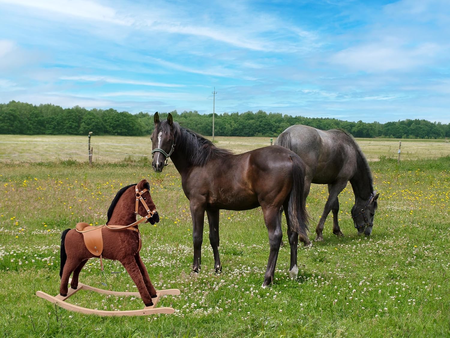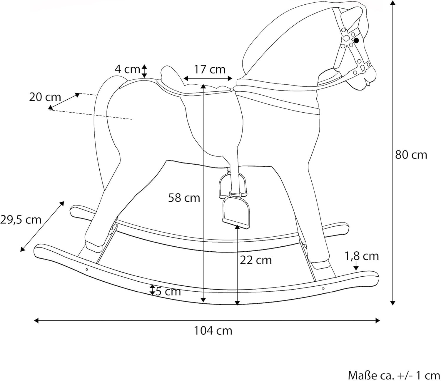 Solido cavallo a dondolo Baio per bambini da 3 anni con solidi finimenti Dimensioni: Altezze: 80cm testa, 60cm sella, 106cm pattini. Peso sostenibile ca. 60/70kg Ottima qualità, robustezza e pregevoli finimenti, particolari Non adatto a bambini di età inferiore ai 36 mesi.