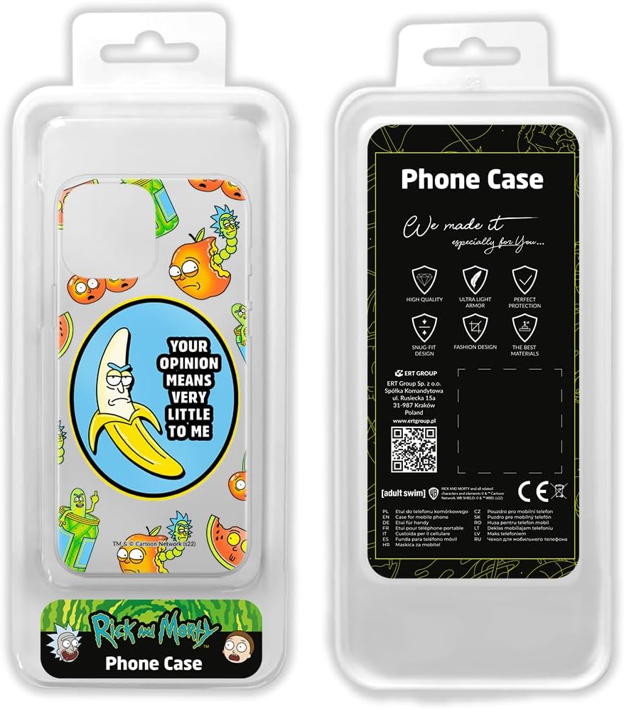 Custodia per smartphone originale e con licenza ufficiale. Confermato dai rappresentanti ufficiali della Rick and Morty. Il prodotto è concesso in licenza sotto il marchio Rick and Morty, pertanto le stampe sono al 100% originali. TPU flessibile: la custodia del cellulare è prodotta in poliuretano termoplastico (TPU), che assicura dettagli grafici colorati. Il guscio dello smartphone in TPU è caratterizzato da un'elevata elasticità e resistenza all'abrasione. La custodia è parzialmente trasparente. Design unico: migliora l'aspetto del telefono ed enfatizza il tuo stile unico e la tua individualità proteggendo il tuo telefono. Protezione dello smartphone: la custodia per smartphone è dotata di bordi rialzati in poliuretano termoplastico (TPU) flessibile e di alta qualità, che assicura una perfetta aderenza al tuo telefono, e lo protegge ammortizzandolo in caso di caduta. Sicura e di alta qualità: la robusta custodia per smartphone è certificata REACH per ogni materiale utilizzato. Colpisce per la sua lavorazione accurata, con colori profondi e intensi, e per la sua linea pulita.