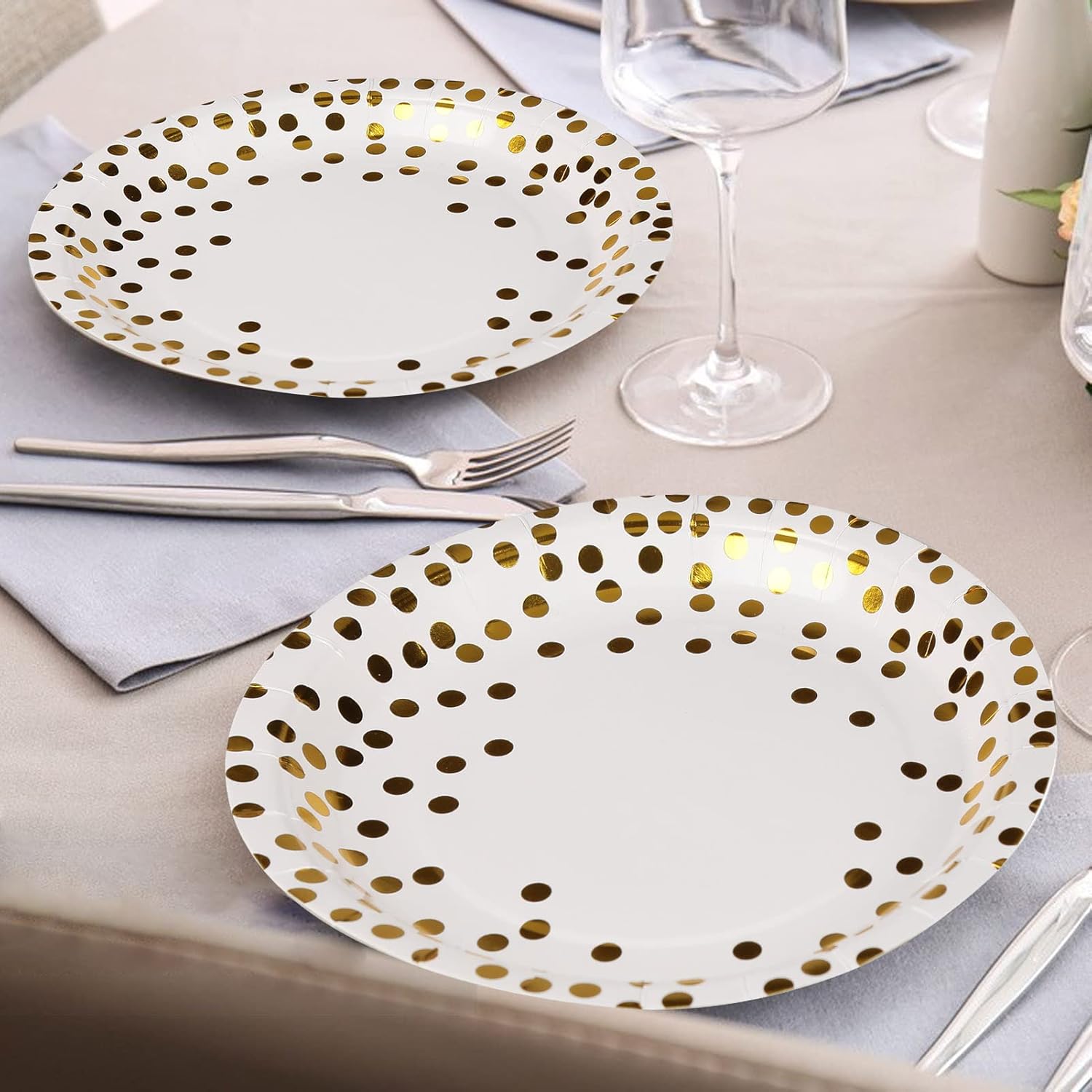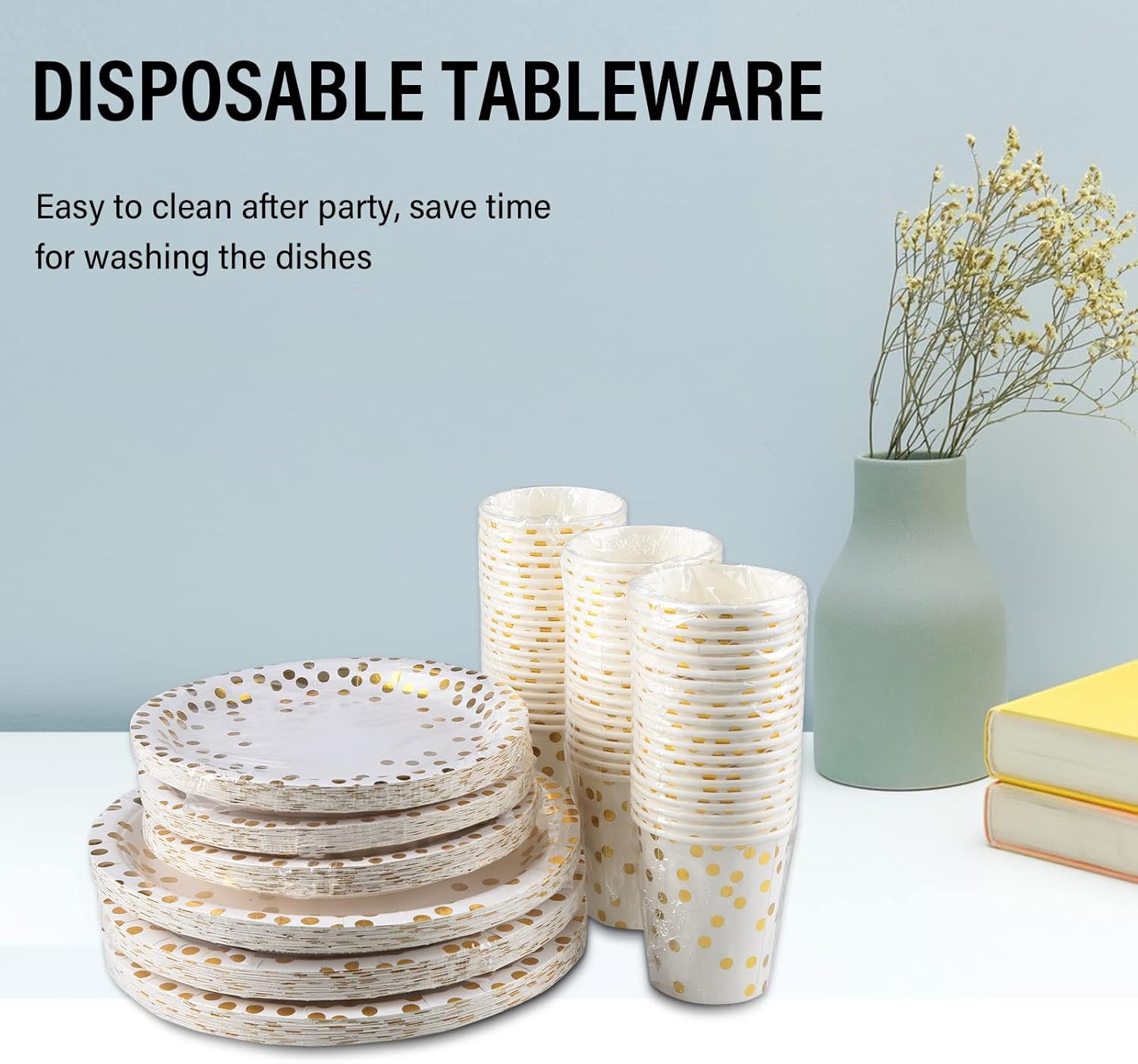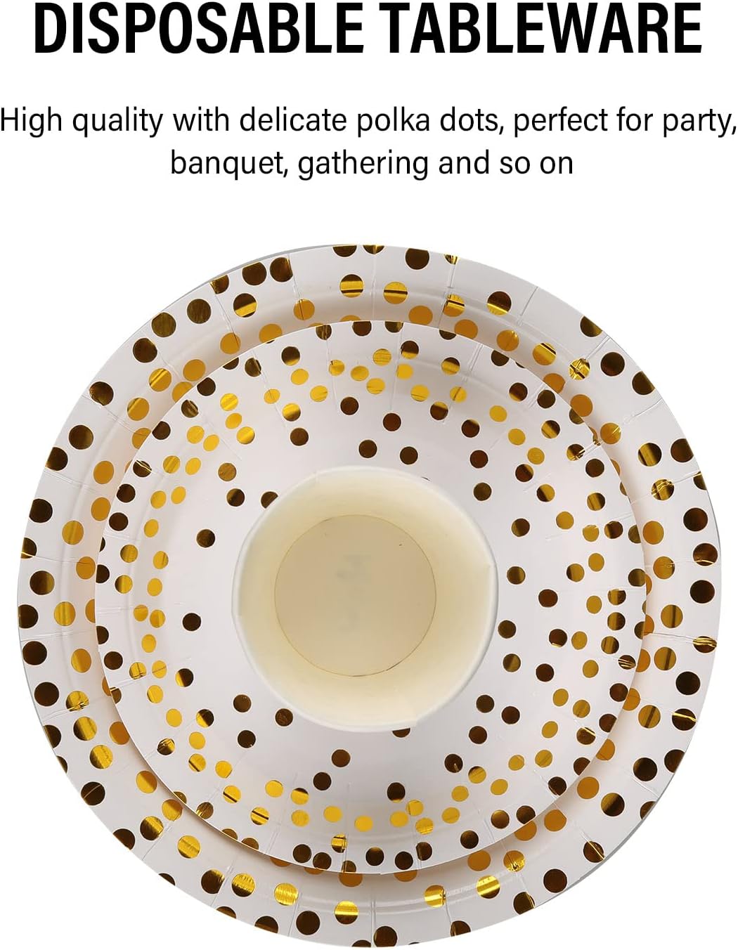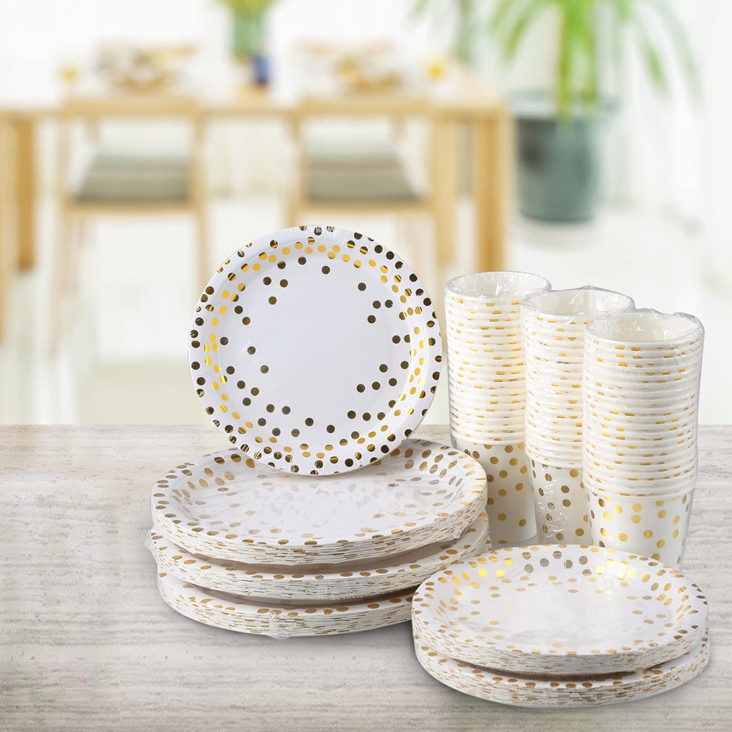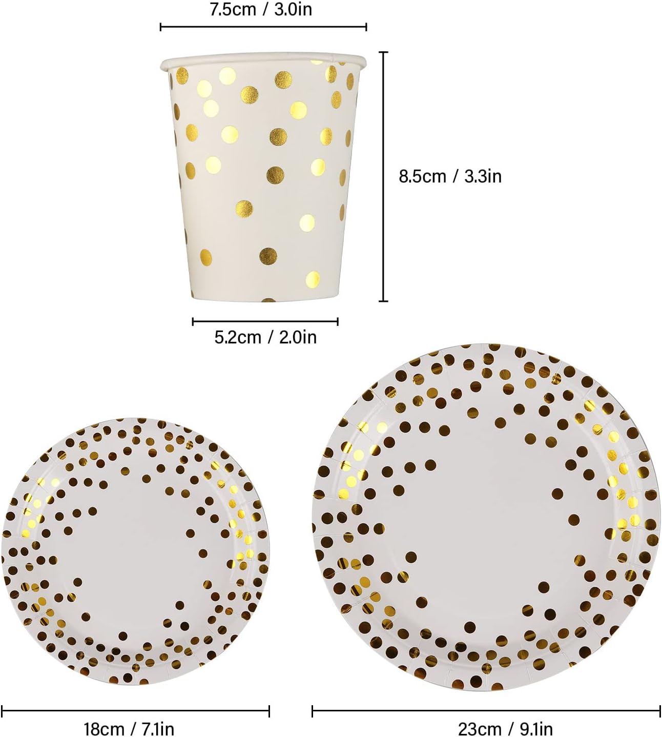 [Versatile e multipopo] Ottimo per varie occasioni tra cui anniversari di compleanno matrimoni doccia per neonati e progetti fai -da -te. Il design neutro bianco e oro completa qualsiasi tema o decorazione. Il set è anche ideale per i barbecue e le feste di ufficio che offrono versatilità e comodità per qualsiasi incontro. [Conveniente e risparmio nel tempo] Dì addio per la pulizia delle partite con questi comodi bevande e stoviglie di carta usa e getta. Basta usare e lanciare risparmiando ore di lavaggio dei piatti. Il design leggero ma robusto garantisce una facile maneggevolezza e smaltimento per la preparazione e la pulizia del tuo evento. [& Affordable] realizzato in materiale di carta durevole queste tazze e piatti offrono una buona qualità a un prezzo ragionevole. Le tazze da 9 once sono ideali per bevande calde o fredde mentre le piastre da 7 pollici e 9 pollici sono per servire dessert e corsi principali. Una soluzione pratica ed economica per qualsiasi host. [Set di feste completo] Questo elegante set di carta e piastre usa e getta comprende 180 pezzi con 60 unità ciascuna delle tazze da 9 once di tazze da 7 pollici e piatti da pranzo da 9 pollici. Per piccoli incontri o eventi assicurandoti di avere sufficienti stoviglie per tutti i tuoi ospiti senza la seccatura di lavare i piatti in seguito. [Elegante design a pois dorato] I bicchieri e piatti semplici ma eleganti presentano un affascinante design a pois dorato che aggiunge un tocco di raffinatezza a qualsiasi evento. Che si tratti di una festa di compleanno per la doccia da sposa o di una doccia per bambini, questi bevande usa e getta e un piatto miglioreranno la tua impostazione del tavolo senza sforzo.