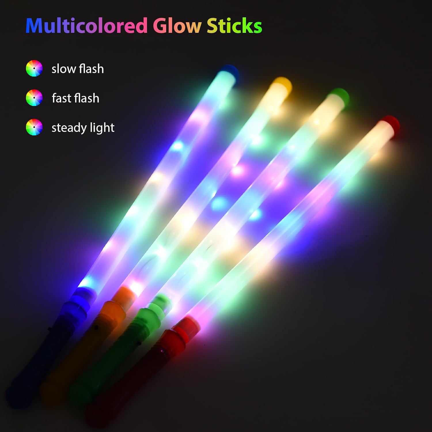 [Decorazione versatile]: non bomboniere, questi bastoncini luminosi sono decorazioni ideali per feste di Natale, compleanni, concerti ed eventi sportivi. [Modalità lampeggianti multiple]: passa facilmente tra luce fissa, flash veloce e flash lento con la semplice pressione di un pulsante, utile per creare effetti di luce dinamici. [Illumina la tua festa]: illumina qualsiasi evento con la nostra confezione 12 di vivaci bastoncini luminosi a LED, ideali per le celebrazioni di Halloween e le occasioni festive. [Sicuro e facile usare]: con le batterie integrate, questi bastoncini luminosi sono sicuri per tutte le età ed essenziali per qualsiasi evento a tema luminoso, offrendo divertimento ed eccitazione senza fine. [Bagliore a lunga durata]: goditi oltre 10 ore di illuminazione continua alimentata 4 luci a LED, creando un'atmosfera colorata ed emozionante.