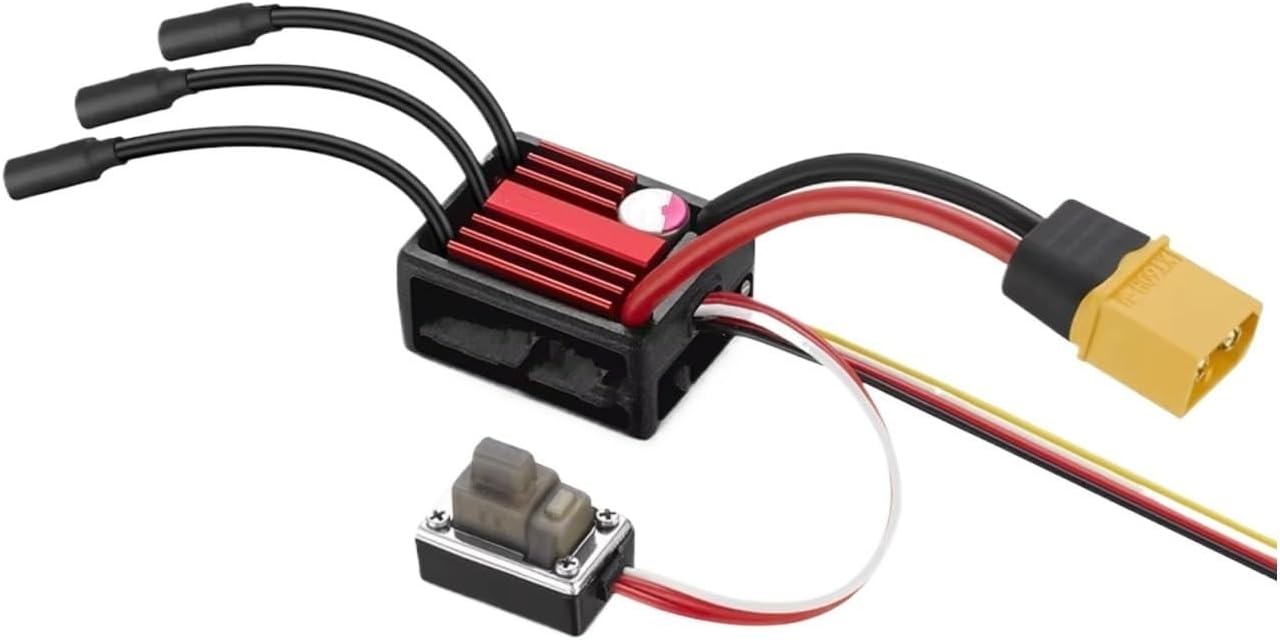 Materiale: realizzato con materiali speciali e lavorazione meticolosa, garantisce affidabilità per un ampio utilizzo. Può resistere alle dure condizioni delle avventure fuoristrada ed è facile da usare; Caratteristiche: Il magnete e il rotore hanno una coppia elevata, buona stabilità, ampia applicazione, robusti e affidabili, non facili da rompere, protezione a bassa tensione, funzione tubo ad effetto di campo a bassa resistenza; Installazione: è un Per ottimo accessorio di aggiornamento, il regolatore di velocità senza spazzole non richiede aria per la calibrazione del circuito, plug and play, design compatto, facile da installare, non sono necessarie modifiche e l'installazione è molto comoda; Funzione: L'ESC RC è il regolatore di velocità per modelli radiocomandati. Essenzialmente, è costituito da un interruttore e un trasformatore, che convertono in modo accurato ed efficiente l'energia elettrica fornita dal radiocomando nella potenza che aziona il motore. È il cuore del gruppo propulsore del modello; Nota: questo prodotto deve essere compatibile con la tua macchinina. Si prega di confrontare attentamente la compatibilità prima dell'acquisto. Per qualsiasi domanda, non esitate a contattarci;