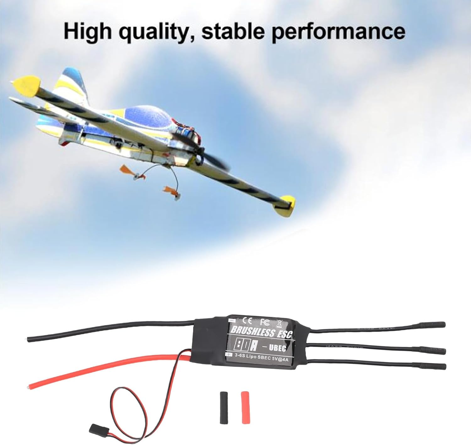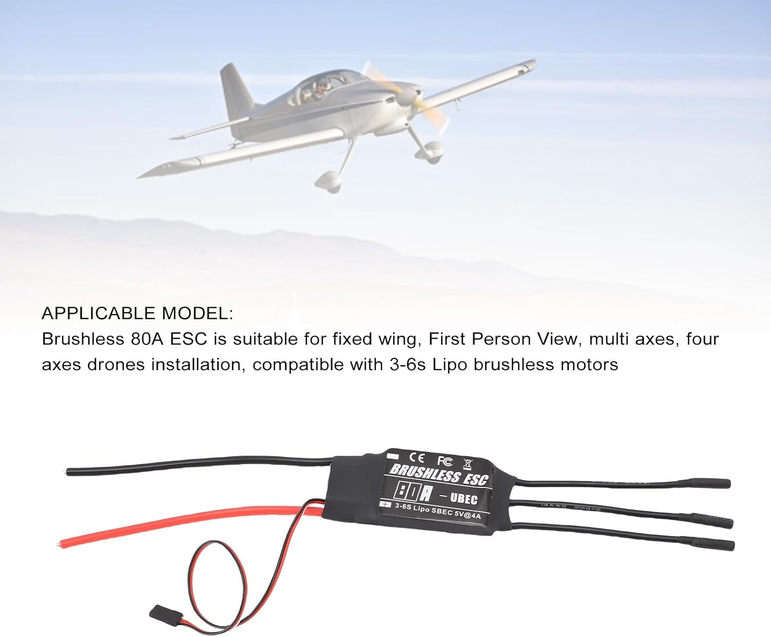 COMPATIBILITÀ: L'ESC senza spazzole è compatibile con batterie ai polimeri di litio 3-6S ed è adatto per droni FPV, velivoli ad ala fissa e velivoli multirotore. Inoltre, è dotato di un ricevitore integrato e di un sistema di alimentazione servo FUNZIONI DI PROTEZIONE INTEGRATE: L'ESC brushless è dotato di molteplici funzioni di protezione, tra cui protezione da sovratensione, protezione da surriscaldamento e protezione da sottotensione, che aiutano a mantenere la stabilità durante voli prolungati o operazioni ad alta intensità RISPOSTA SENSIBILE: Il regolatore di velocità fornisce una risposta immediata, adatta ai voli acrobatici, mantenendo la stabilità di volo nella fotografia aerea o in modalità crociera COSTRUZIONE RESISTENTE: Il controller elettronico di velocità è realizzato in materiale di rame rivestito in silicone, che migliora la flessibilità e la conduttività termica, prestazioni stabili durante il volo continuo PLUG-AND-PLAY: Il controller di velocità è dotato di un connettore a banana da 4 mm, che consente una facile integrazione in quadricotteri e aeromodelli RC senza modifiche complesse