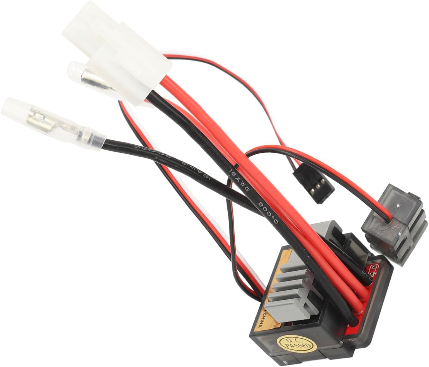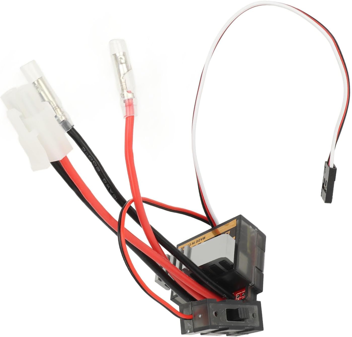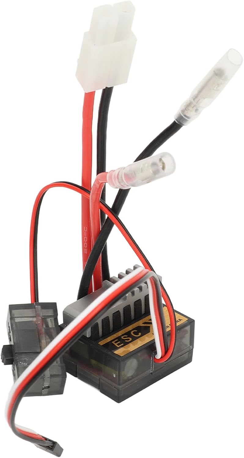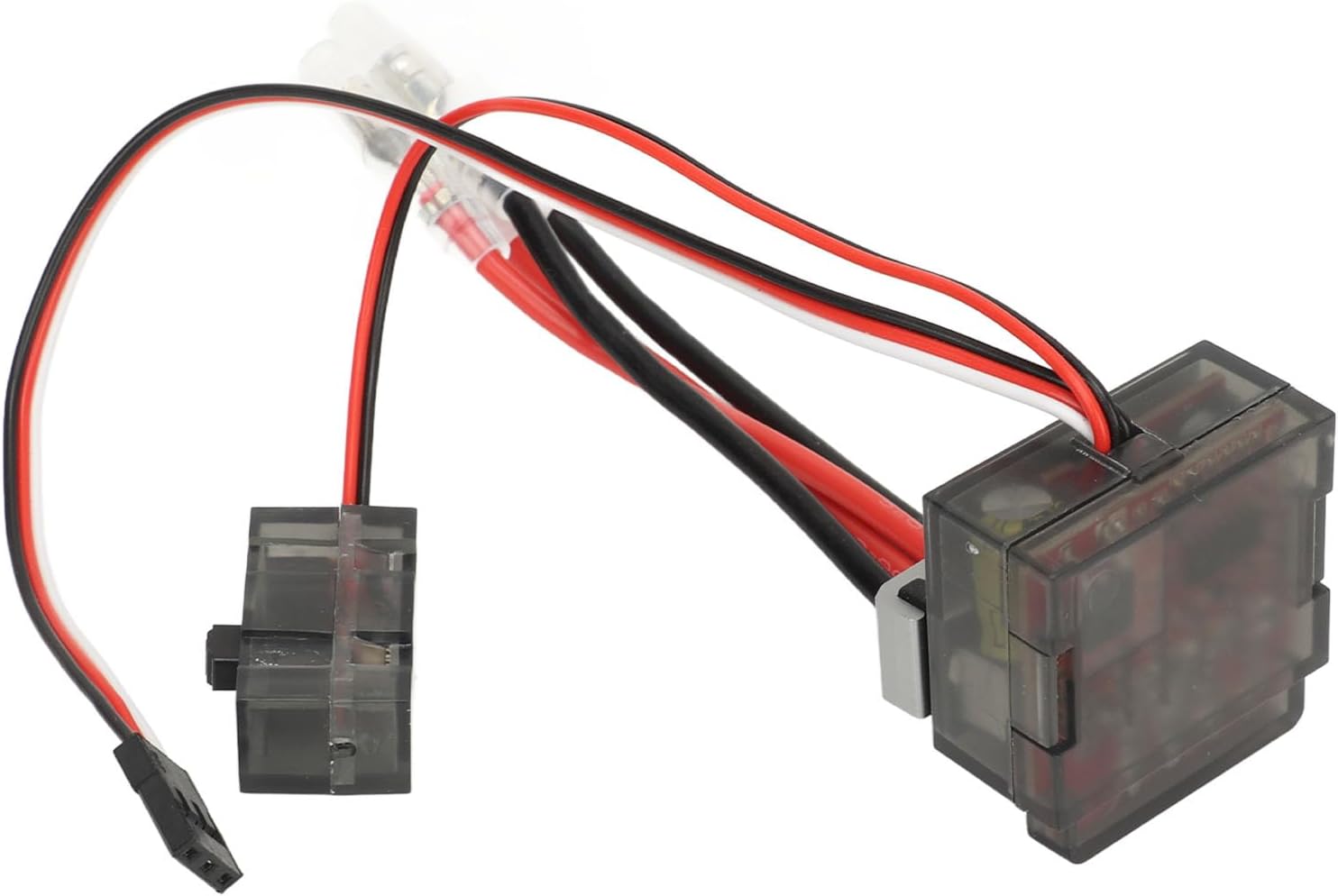 Dissipazione del calore: con dissipatore di calore in lega di alluminio, che può garantire una buona dissipazione del calore per gli ESC. Oggetti applicabili: questo ESC spazzolato è piccolo e potente e può essere utilizzato in diversi di o automobili RC. di azionamento ad alta frequenza: utilizza una camera d'aria con effetto di campo a bassa resistenza. Ha funzioni anteriori e posteriori per auto e barche RC. Durevole da usare: questo ESC spazzolato è realizzato in plastica di alta qualità e materiale in lega di alluminio, durevole e non facile da danneggiare, può essere utilizzato a lungo. Prestazioni stabili: quando collegato al motore, può fornire 320 A in avanti, picco istantaneo 600 A, 160 A inverso, corrente di frenatura 250 A.
