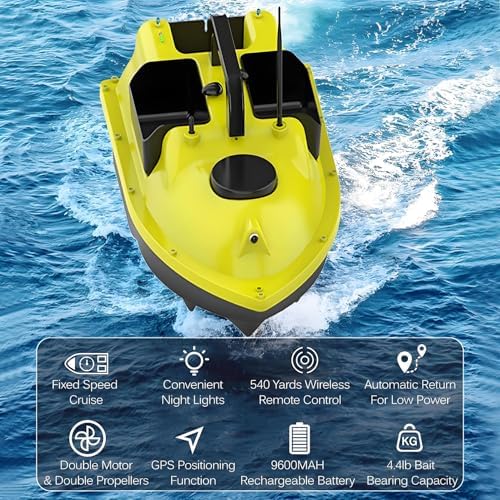 Funzionamento fluido e silenzioso: progettato per la furtività, questa barca esca si muove dolcemente e silenziosamente sull'acqua per evitare pesci sorprendenti, garantendo una battuta di pesca di successo. Controllo a lunga distanza: con un sistema RC 2.4G che offre una portata di 400-500 metri, i pescatori possono posizionare facilmente la barca nel punto di pesca ideale per risultati ottimali. Durata prolungata della batteria: una batteria da 7,4 V 10000 mA alimenta la barca fino a 5 ore, fornendo un ampio tempo per la pesca senza frequenti interruzioni di ricarica. Navigazione GPS avanzata: dispone di un avanzato sistema GPS in grado di contrassegnare fino a 4 punti di navigazione, semplificando il posizionamento delle esche e migliorando l'efficienza della pesca. Funzione di sicurezza di ritorno automatico: Dotato di una funzione di ritorno automatico, la barca assicura che ritorni quando la batteria è scarica, il segnale viene perso o va fuori portata, prevenendo la perdita.