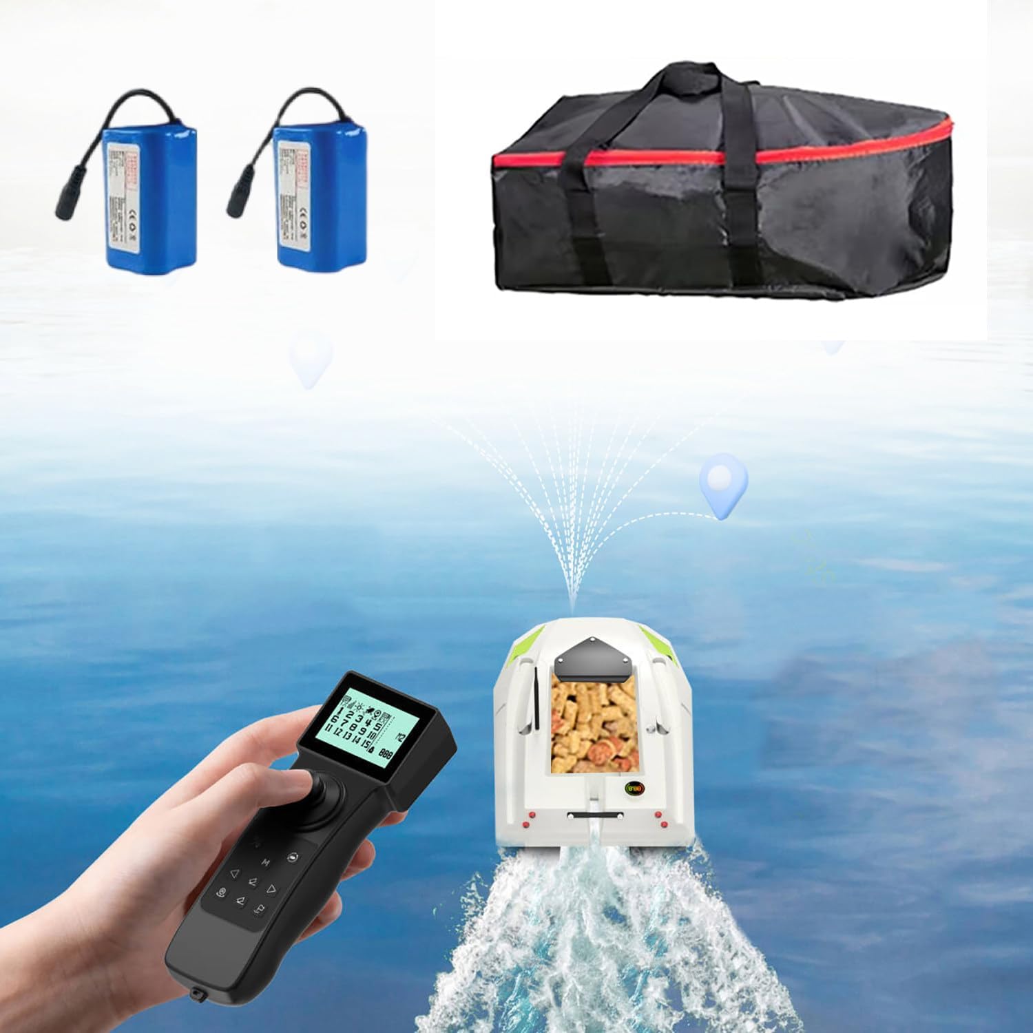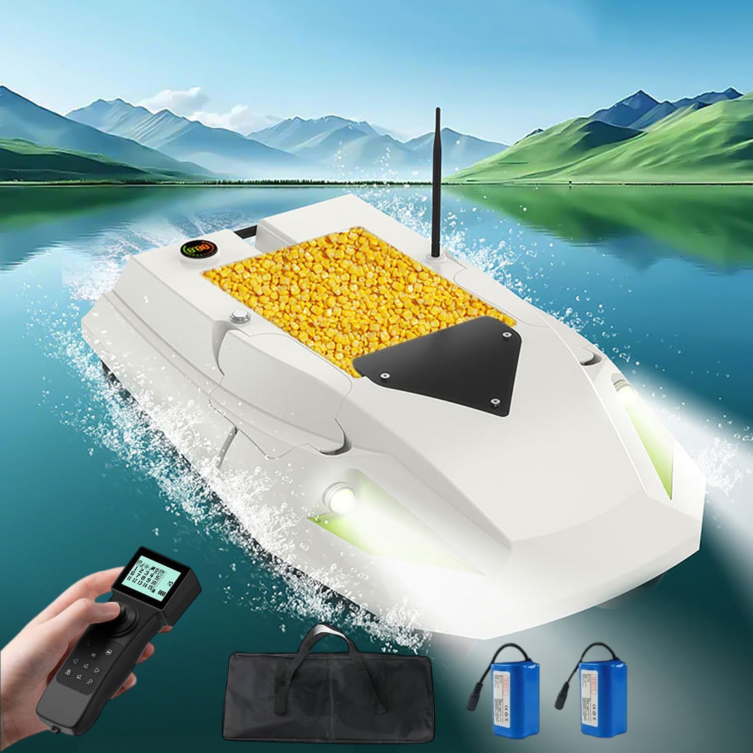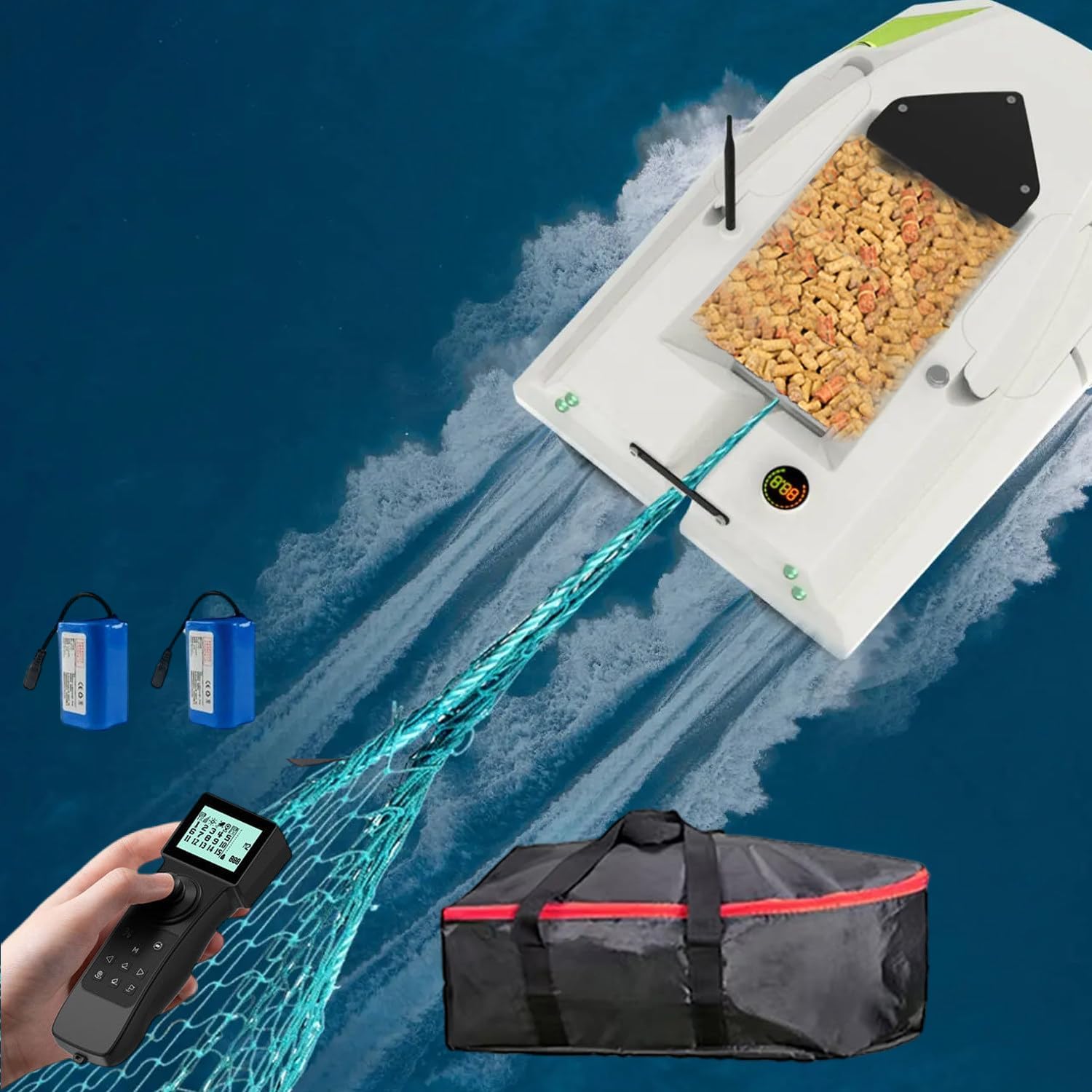 Migliora la tua esperienza di pesca con una barca con esca telecomandata GPS ad alta potenza da 12 V intelligente. Le caratteristiche includono ritorno automatico a casa, luci notturne, ritorno automatico della batteria scarica, velocità regolabili e disconnessione dell'elettrovalvola a un pulsante, ideale per i pescatori di tutti i livelli. Rilascio dell'esca senza sforzo con struttura in ABS e grande silo indipendente che carica fino a 2 kg. Il metodo di alimentazione con perdite verso il basso garantisce un'accurata e silenziosa entrata dell'esca in acqua e previene l'intreccio della lenza per catture efficaci. Posizionamento GPS con memoria a 100 punti e raggio di controllo remoto di 500 metri. Include avviso di batteria scarica, ritorno automatico e tre marce per il nesting a risparmio energetico, trazione efficiente del gancio e potente traina con forza di tensione fino a 1,5 kg. Pesca notturna pronta con luci di navigazione per l'identificazione della direzione e l'attrazione dei pesci. Lo schermo LCD impermeabile visualizza distanza, carica della batteria, stato della luce notturna, tasto di posizione e funzioni di ritorno a un tasto per un facile funzionamento in condizioni di scarsa illuminazione. Lunga durata della batteria con due batterie da 15600 mAh per un uso prolungato, supportando onde di livello 5-6 e tempeste. Goditi più tempo in acqua con una ricarica minima, perfetto per lunghe sessioni di pesca.