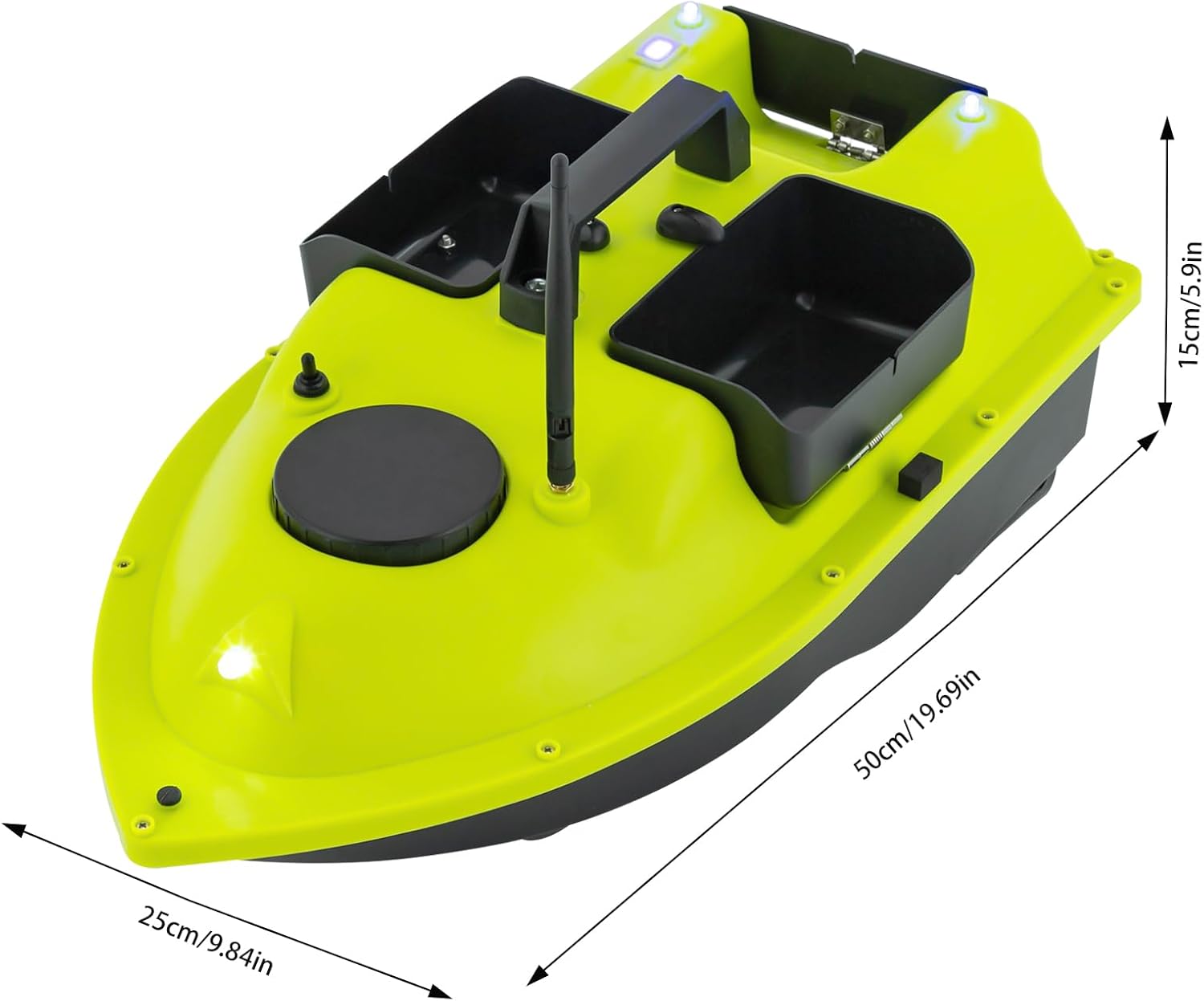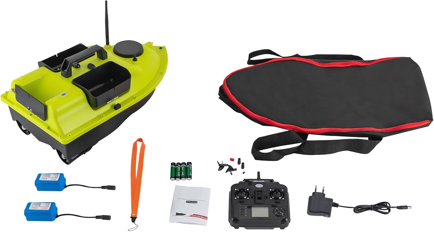 Navigazione GPS efficiente: con posizionamento GPS e una portata di 600 metri, la barca può essere navigata con precisione. La correzione automatica dell'imbardata e la perdita di connessione e il ritorno automatico a batteria scarica garantiscono un utilizzo sicuro su grandi corpi idrici. 【Potente e di lunga durata】 Con due motori 390 e una potenza di 52 W, la barca raggiunge una velocità massima di 10.000 giri/min e una velocità di guida di 5,91 piedi al secondo. I 99 punti da pesca permettono una ricerca precisa dei pesci. Due batterie agli ioni di litio da 5200 mAh offrono una durata fino a 90 minuti per carica, sufficiente per un'intera giornata all'aperto. Design pratico e facile da usare: la barca dispone di una custodia impermeabile aerodinamica che riduce la resistenza all'acqua e aumenta la stabilità. Il telecomando con schermo LCD mostra il livello della batteria, il segnale GPS e altre informazioni importanti, e l'allarme automatico di batteria scarica protegge da interruzioni indesiderate. Facile da trasportare e riporre: con una borsa portatile, manici robusti e un peso leggero di 4,4 libbre, la barca è facile da trasportare e riporre. È ideale per attività all'aperto e può essere facilmente portato in qualsiasi luogo di pesca. Robusto e durevole: la barca per esche da pesca è realizzata in ABS di alta qualità con processo di sabbiatura. È antigraffio, impermeabile e resistente all'usura e alla corrosione, che garantisce una lunga durata.