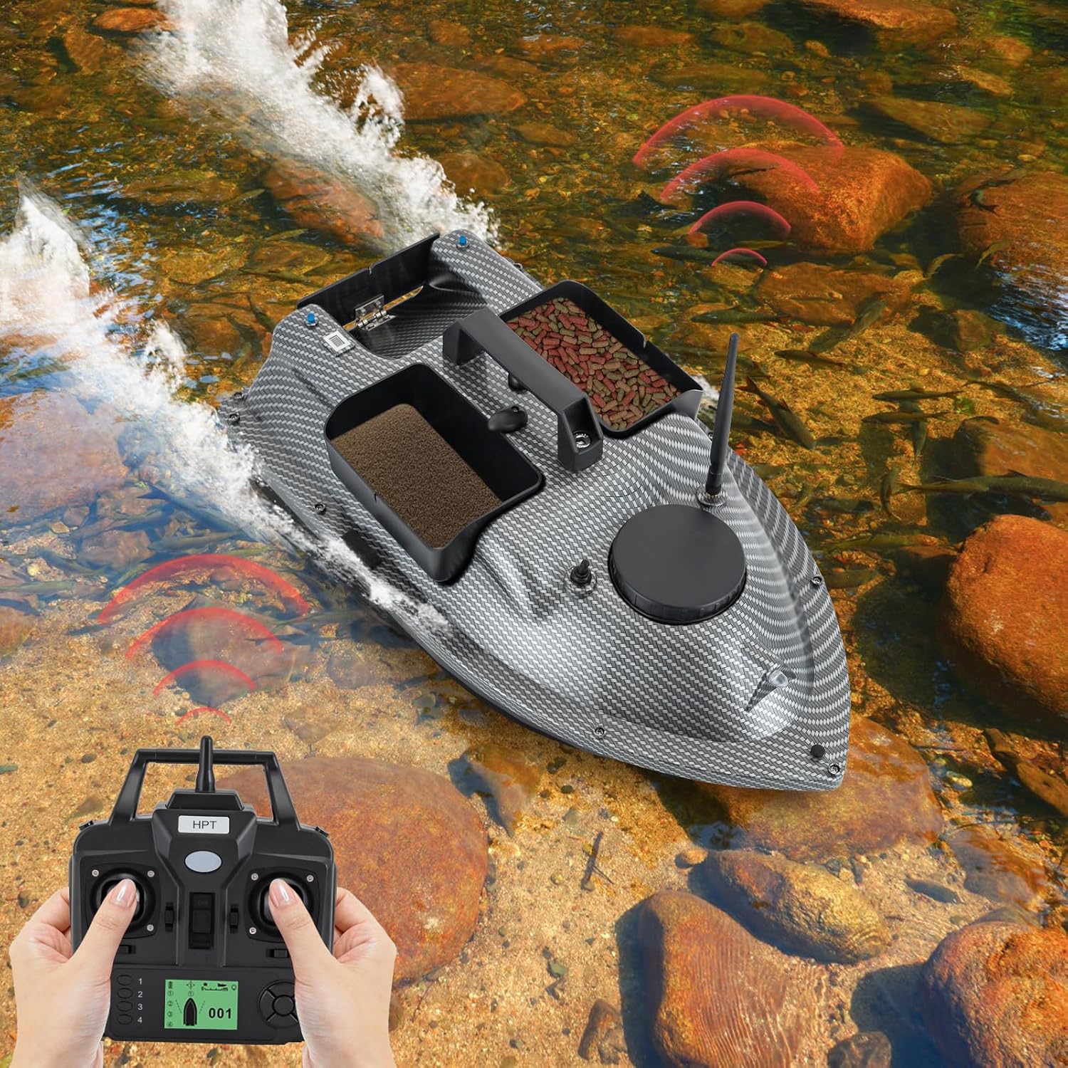 Robusto: realizzato in ABS di alta qualità con processo di sabbiatura per una maggiore durata e resistenza ai graffi Precisione: con GPS e 99 punti di posizionamento per un posizionamento preciso dell'esca Lungo tempo di funzionamento: due batterie agli ioni di litio da 5200 mAh offrono fino a 90 minuti di tempo di pesca Funzionamento semplice: telecomando con schermo LCD per una chiara visualizzazione della distanza e dello stato della batteria Impermeabile: copertura impermeabile per telecomando e vano batteria protegge dall'umidità