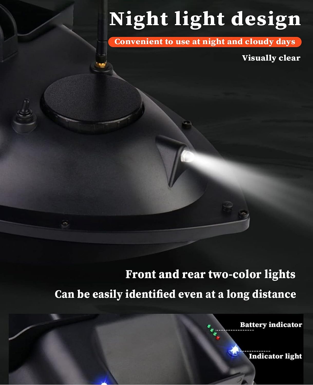 Capacità unica multi-esca: la nostra barca intelligente esca da pesca dispone di tre contenitori per esche controllati in modo indipendente, che consentono di trasportare e distribuire più tipi di esche contemporaneamente. Telecomando GPS avanzato: goditi il telecomando a due mani aggiornato con una portata di 400-500 m. Sperimenta un funzionamento chiaro e affidabile con uno schermo LCD che mostra distanza, direzione, posizionamento, alimentazione a batteria e luci per la massima tranquillità durante la pesca. Design durevole e stabile: realizzato con materiali ABS di alta qualità, il design dello scafo completamente chiuso garantisce stabilità e previene il ribaltamento. Perfetto per l'uso in varie condizioni dell'acqua, tra cui laghi e mari. Funzionalità Smart Cruise Control: La barca esca RC dispone di un controllo automatico della velocità di crociera che corregge automaticamente la sua direzione se necessario. Può tornare lungo il percorso originale se la batteria è scarica o il segnale viene perso, inoltre include funzioni di accesso diretto e ritorno con un tasto per una facile navigazione. Assistenza clienti: Siamo qui per assisterti con qualsiasi domanda riguardante il nostro prodotto. Sentiti libero di contattare e garantiamo una risposta entro 24 ore.
