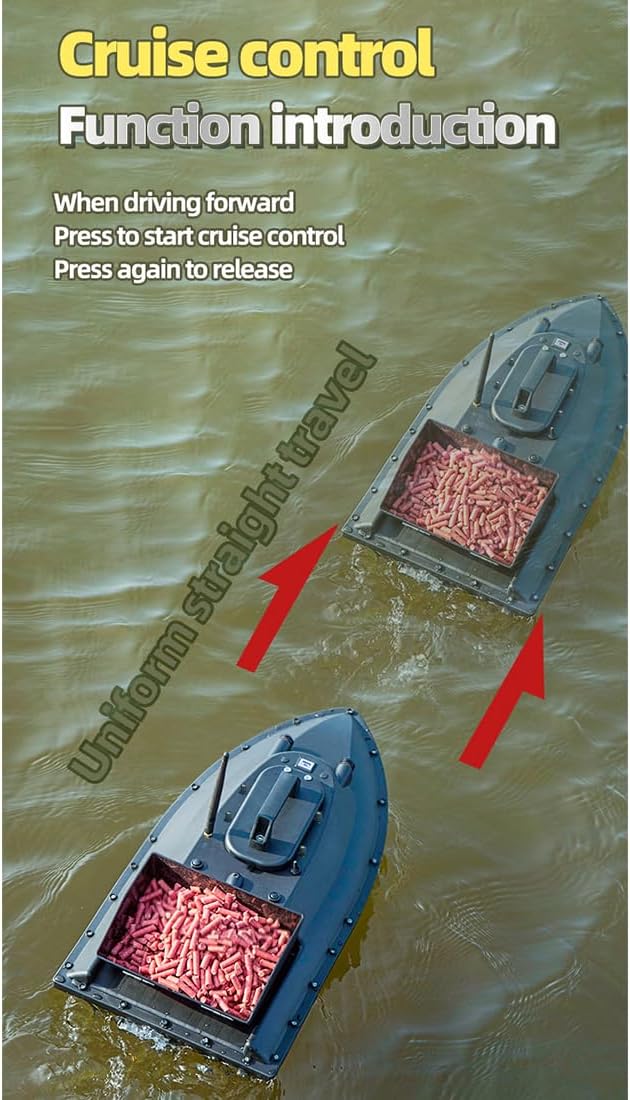 Controllo a 3 velocità: GPS RC Bait Boat dispone di tre livelli di velocità regolabili: bassa e media per l'esca precisa e la consegna dell'amo, e ad alta velocità per una pesca a strascico efficiente Robusta capacità di pesca a strascico: la pesca a strascico telecomandata supporta la trazione di reti da pesca fino a 50 metri, con un comodo sistema di rilascio elettromagnetico per la caduta della rete one-touch Bait Boat - Esca radiocomandata per pesca alla carpa, 600 m, con 2,5 kg di carico Durata prolungata della batteria: dotata di una batteria massiccia da 18.000 mAh, che offre circa 7 ore di autonomia a bassa velocità La confezione include: 1 barca da pesca, 1 telecomando, 1 caricabatterie, 1 manuale di istruzioni (lingua italiana non garantita), 2 eliche di ricambio, 1 antenna, 1 vite lunga, 1 batteria da 18000 mAh, 1 borsa, 1 cavo di ricarica USB