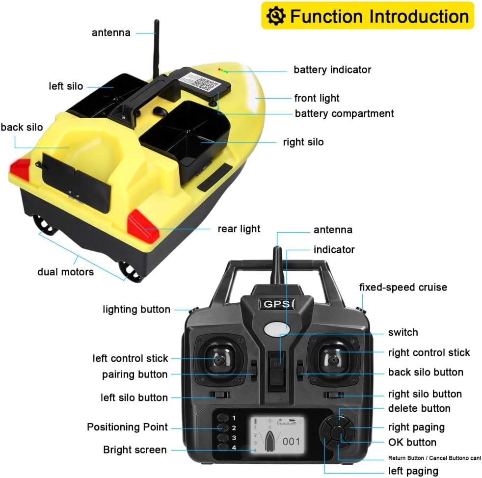 Ritorno automatico: la distanza del telecomando è entro 500 metri. Quando la barca è scarica, perde il segnale o supera i 500 metri, tornerà automaticamente. Non aver paura di perdere. Cruise Control: con un clic per accendere il sistema di controllo della velocità di crociera per mantenere la barca a velocità costante in linea retta, risparmiando tempo e fatica e liberando le mani. Fixed Point Cruise: Beidou/GPS sistema di posizionamento doppio satellite, 40 punti di posizionamento possono essere impostati, partendo dal punto di partenza, per ottenere una crociera automatica verso la destinazione. Correzione automatica del percorso: sistema di bilanciamento automatico integrato, che può aiutare a correggere automaticamente l'imbardata e garantire che la barca continui a guidare dritto sotto il vento/le onde e il carico. Forte potenza: forte sistema motore a doppia potenza, funzionamento silenzioso, non disturba il pesce. L'elica a tre pale ad alta efficienza può fornire una forte potenza, crociera veloce.