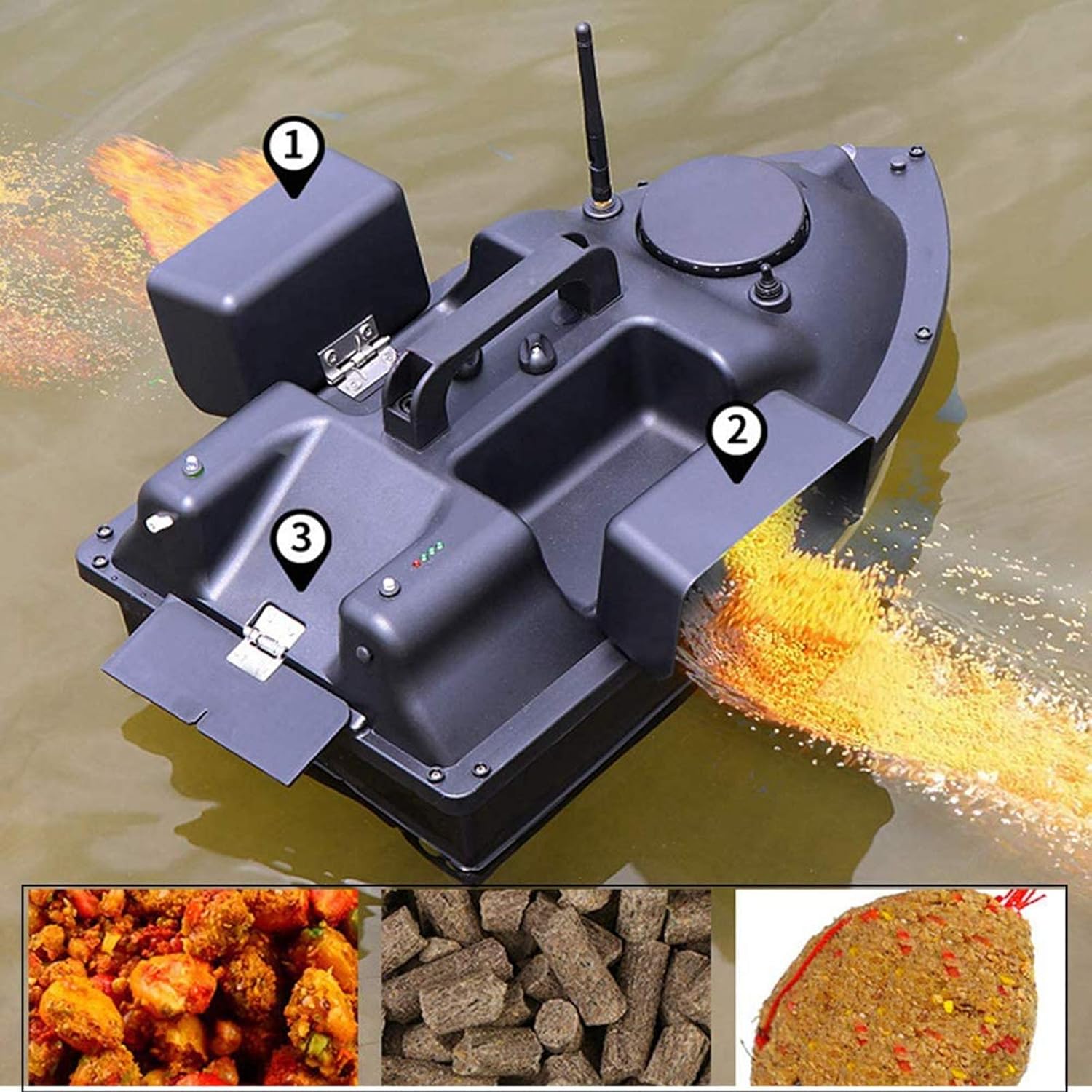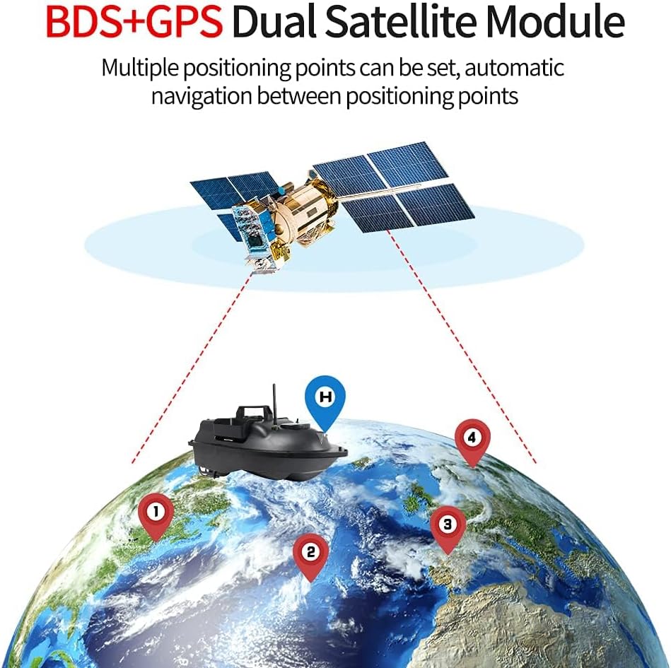 1. Sistema di navigazione GPS e Fish Finder: dotato di GPS avanzato per la marcatura precisa di 16 punti di pesca entro 500 m di gamma. Il fishfinder integrato scansiona fino a 100 m, rilevando accuratamente la distribuzione del pesce in acque da 0,6 m a 36 m di profondità. 2. Auto-Cruise & Stabilizzazione Gyro: coinvolgere auto-cruise a mani libere per una navigazione costante e retta. Il giroscopio integrato stabilizza automaticamente la barca, correggendo la deriva del vento e delle onde per una tenuta affidabile del percorso. 3. Sistema a tripla esca ad alta capacità: dispone di tre catapulte di esca indipendenti con una capacità totale di 2 kg, supportando varie esche come mais e pellet. Lo scomparto posteriore non si aggroviglia, progettato per un facile utilizzo con ganci e reti. 4. Design durevole con doppio motore e luci LED: alimentato da doppi motori ed eliche con protezione anti-erbacce. Le luci a LED anteriori e posteriori migliorano la visibilità, mentre lo scafo aerodinamico in ABS offre resistenza agli urti e all'abrasione. 5. Batteria a lunga durata con ritorno di sicurezza: include una batteria al litio da 7,4 V 5200 mAh che fornisce 2-3 ore di autonomia. Dispone di avviso di batteria scarica e ritorno all'avvio automatico in caso di perdita di segnale per un funzionamento senza preoccupazioni.