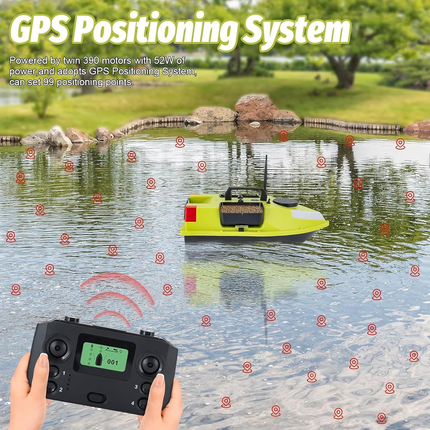 Esca da Pesca in ABS Verde per Barca, Pesca, Barca con Telecomando GPS, 12000 mAh Batteria Integrata, Distanza di Controllo Remoto di 600 M, per Grandi Bacini e Laghi, 47 x 26 x 23 CM