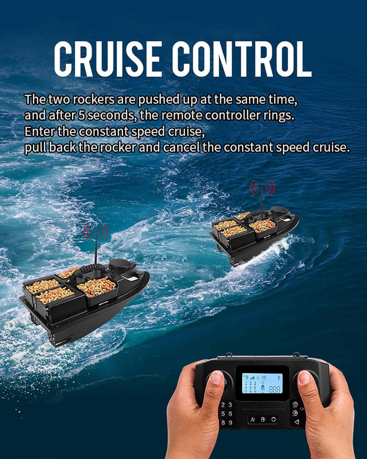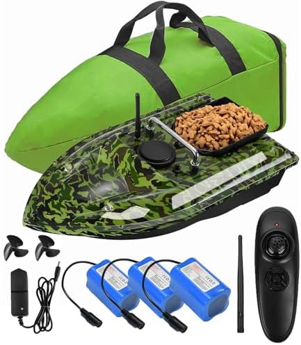Migliora la tua esperienza di pesca con un telecomando GPS intelligente barca esca da pesca con ritorno automatico a casa, 100 punti di posizionamento GPS e 7 luci colorate regolabili, perfetto per la pesca notturna. Rilascio dell'esca senza sforzo con 4 tramogge separate in grado di caricare circa 2 kg di esca e gancio. Il telecomando impermeabile e la correzione automatica dell'imbardata garantiscono una navigazione fluida sia per i principianti che per i pescatori esperti. Tecnologia GPS avanzata con 100 punti di posizionamento e un raggio di controllo remoto di 500 metri. Dispone di avviso di batteria scarica e ritorno automatico al punto di partenza quando la batteria è scarica o la distanza supera i 500 metri. Progettato per la pesca notturna con 7 luci colorate regolabili per una facile navigazione. Lo schermo LCD impermeabile visualizza la distanza dalla nave, la carica della batteria, lo stato della luce notturna, il tasto di posizione e la funzione di ritorno con un Dotato di una batteria rimovibile di grande capacità da 7,4 V che offre fino a 8 ore di utilizzo con una singola carica. I doppi motori e il design impermeabile resistono a forti venti e onde fino a 5-6 livelli, garantendo durata e prestazioni.