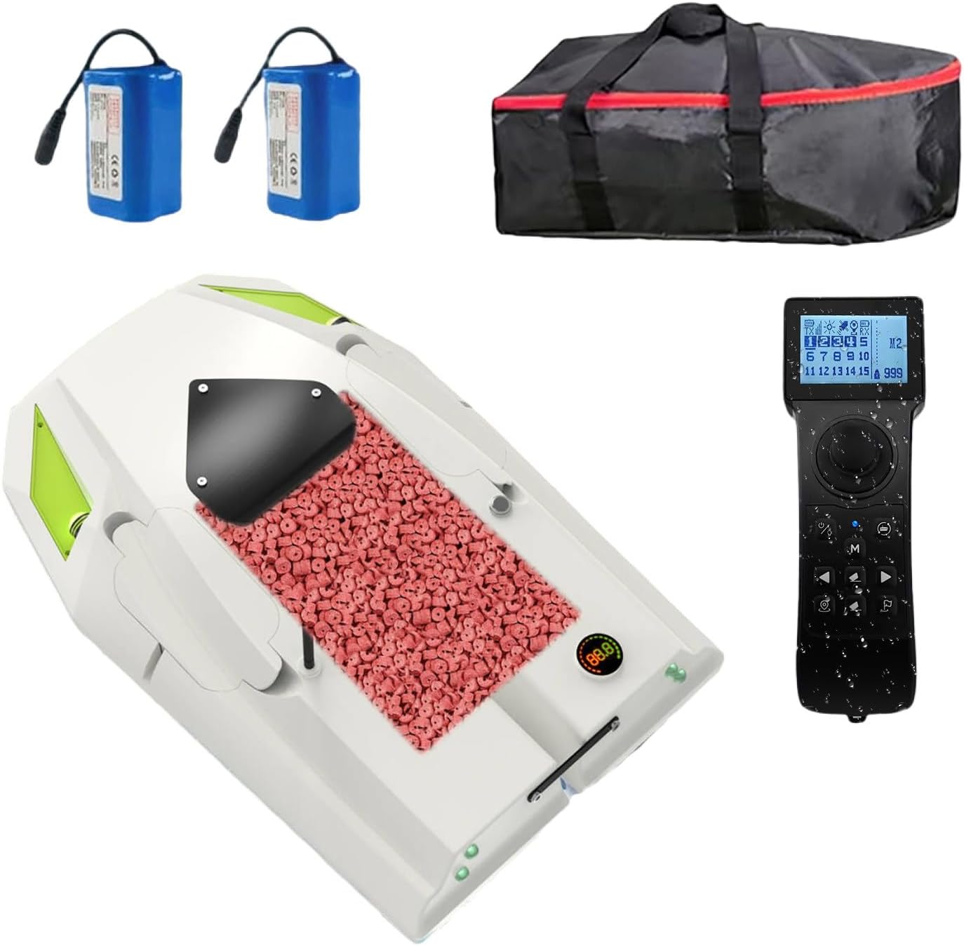 ALTA DURATA Il materiale ABS composto da questa barca da pesca è robusto e durevole, quindi può resistere a forti venti e onde e ridurre la possibilità di imbardare. Lungo tempo di standby: la mangiatoia può avere un tempo di standby fino a 2 ore, risparmiando tempo di ricarica extra e godendo del tempo di pesca. Distanza del telecomando: con una distanza di telecomando ultra lunga di 500 m, il segnale del telecomando della barca è forte e devi solo premere il pulsante sul telecomando per controllare la distanza. Cruise Control Keys: il pulsante Cruise della barca da pesca permette alla barca di guidare a velocità costante e in linea retta. Posizionamento della luce notturna: c'è una luce a LED appositamente progettata per la pesca notturna, che consente di trovare l'area di pesca più accuratamente di notte. Controllabile con una sola mano: c'è un telecomando speciale che controlla la barca. È possibile ruotare e girare la barca con una mano in avanti, indietro, a sinistra ea destra. Buone prestazioni: ha una classe di protezione contro le esplosioni di 7-8 e viene fornito con un sistema di correzione intelligente. Ha prestazioni eccellenti e può controllare in modo indipendente l'apertura di tre cuscinetti.