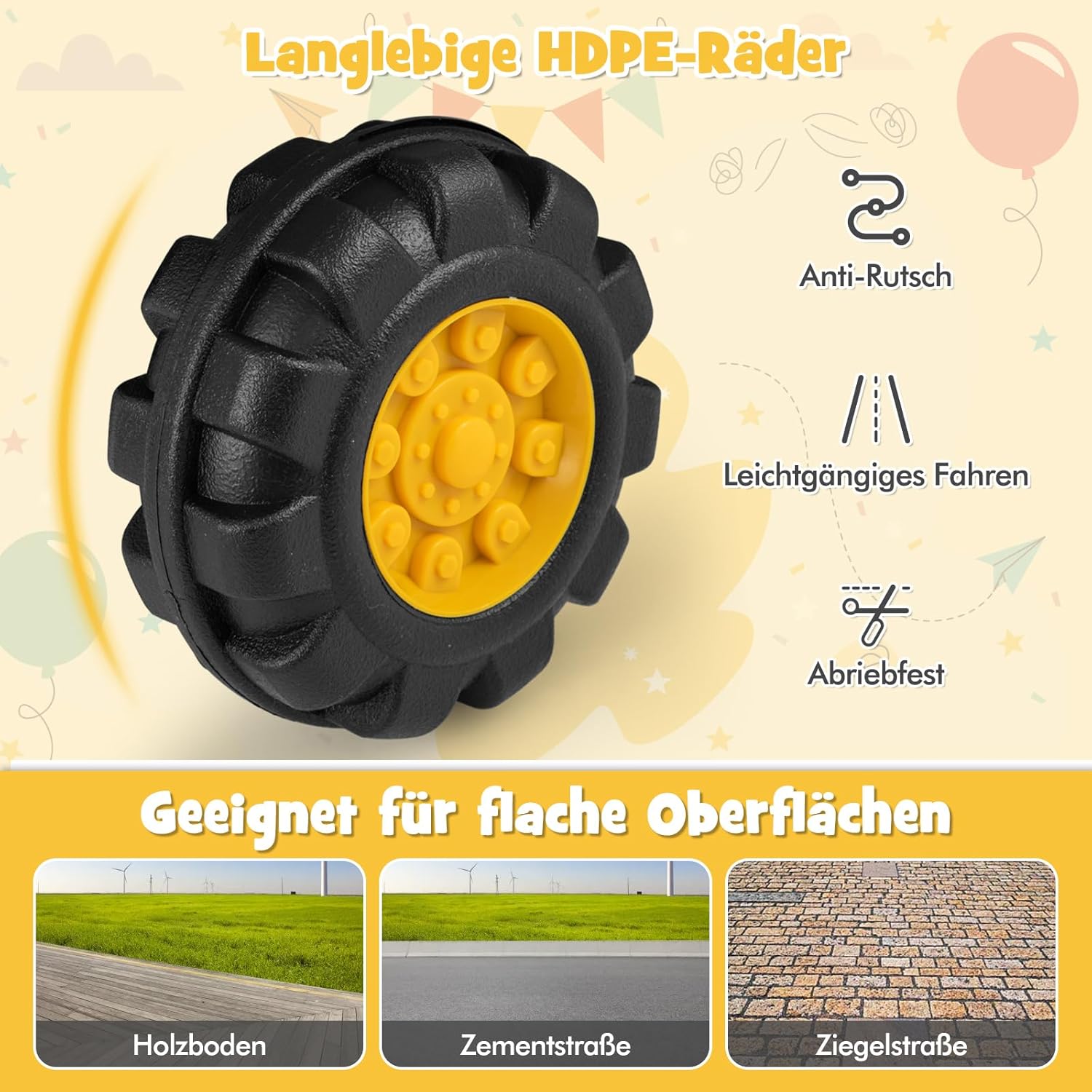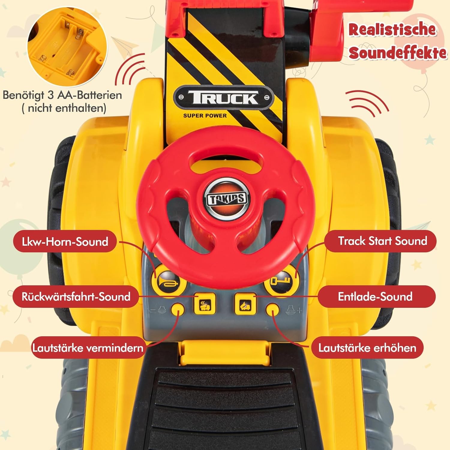 🌟Esperienza di guida realistica - L'escavatore con conducente seduto è dotato di volante e maniglia rotante che consentono di controllarlo in avanti o indietro e di regolare la posizione della benna. È inoltre dotato di corno, così i bambini potranno vivere un'autentica sensazione di cantiere e vere e proprie esperienze di scavo. 🌟Sedile comodo e spazio di archiviazione integrato - Il sedile è ad un'altezza adeguata, è ampio e confortevole. Sotto il sedile è presente uno spazio dove i bambini possono riporre piccoli giocattoli. 🌟Design sicuro - Il sedile ha uno schienale e una superficie antiscivolo per evitare che i bambini scivolino giù. Le 4 ruote sono grandi, antiscivolo e garantiscono stabilità. L'escavatore per seggiolino per bambini è adatto a diversi pavimenti, ad es. parquet, prati, spiagge, perché le ruote dell'escavatore sono realizzate in materiale HDPE. 🌟Materiale di alta qualità - L'escavatore uomo a bordo è realizzato in materiale PP di alta qualità ed è liscio senza sbavature. Grazie al materiale PP, l'escavatore uomo a bordo è resistente e leggero per un comodo trasporto. Ed è facile da pulire dopo aver giocato nella sabbia. 🌟Funzionamento semplice: non esiste un design complicato per l'escavatore con sedile. Può essere azionato manualmente o elettricamente. È necessario installare personalmente le batterie da 1,5 V (non incluse). I bambini possono quindi utilizzare i pulsanti per controllare l'escavatore del sedile per spalare terra, sabbia o pietre, così possono provare rapidamente il divertimento di scavare. 🌟Nota: gioca solo se accompagnato da un adulto!