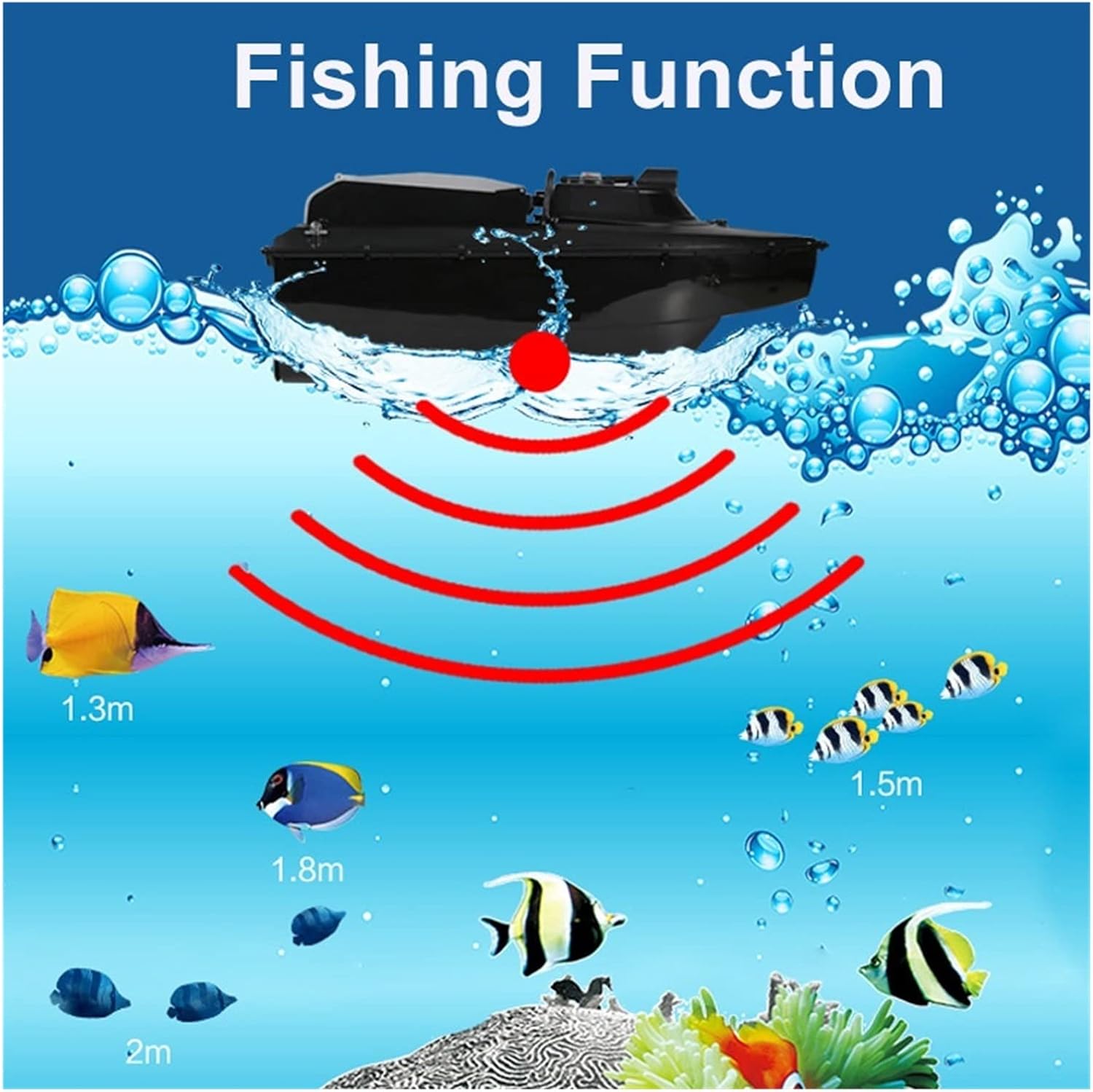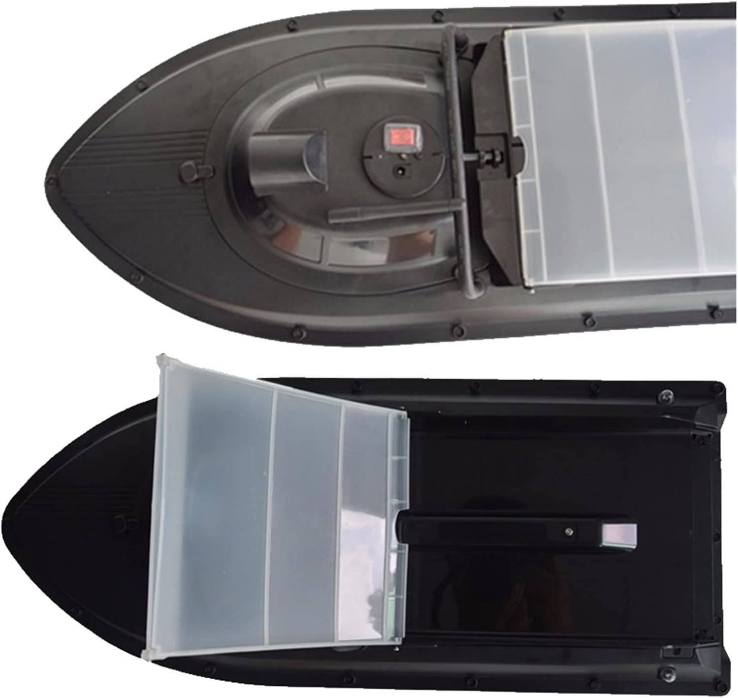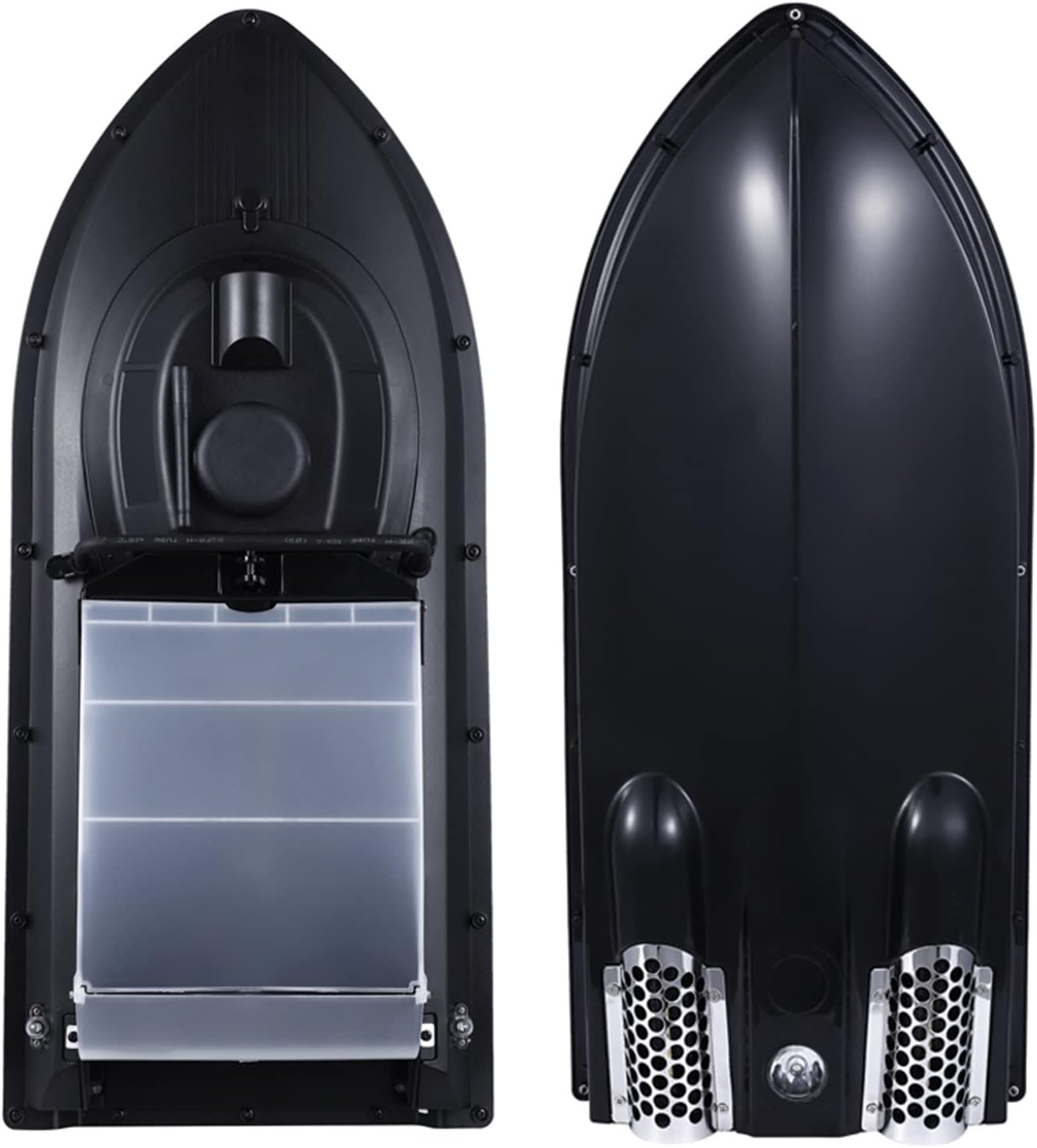 La barca da esca è realizzata in tecnopolimeri di alta qualità nel suo insieme, il che garantisce che le barche da esca siano robuste e durevoli e abbiano anche un bell'aspetto. La scocca è removibile per una facile regolazione e manutenzione. All'interno è presente un anello di tenuta in gomma, che ha buone prestazioni di tenuta. La potenza è fornita da due motori 380. Il riduttore migliora notevolmente l'efficienza meccanica e allunga i tempi di navigazione. Il design integrato dell'elica previene efficacemente l'aggrovigliamento di erbacce e oggetti galleggianti e prolunga la durata dell'elica. Per poter operare di notte è dotato di luci di navigazione di due colori diversi che permettono all'operatore di identificare e controllare la direzione della navigazione.