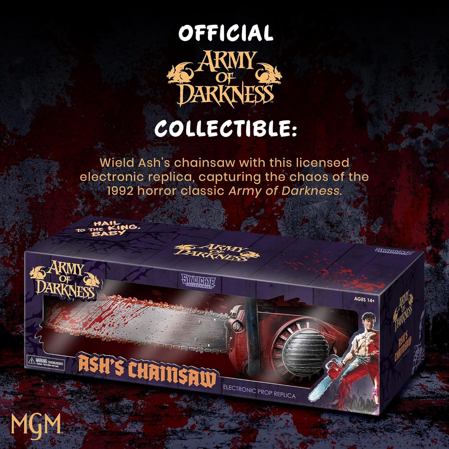Combatti contro un esercito di non morti: i Deadites non hanno alcuna possibilità contro questa esclusiva replica di oggetti di scena con la motosega di Ash Williams di Army of Darkness. Il manico resistente alle intemperie e la finta lama spruzzata di sangue ti renderanno pronto a respingere il male Design autentico: quando sei deformato nel tempo fino al Medioevo, hai bisogno dell'attrezzatura giusta per sconfiggere i non morti. Prendi questa replica elettronica dell'iconica motosega di Ash, autenticamente ricreata con un'attenta attenzione ai dettagli. Replica a grandezza naturale: questa riproduzione in scala 1:1 porta autenticità alla tua collezione. Misura circa 71,1 cm di lunghezza, questa replica a grandezza naturale può essere indossata sulla mano per portarti in azione. REALISTIC SOUND FX: alzare la motosega premendo l'interruttore on/off per attivare gli effetti sonori della motosega agghiacciante. Utilizzare il grilletto sull'impugnatura per controllare il suono. Funziona con 3 batterie AA (incluse). UFFICIALE ARMY OF DARKNESS COLLETTIBLE: Impugna la motosega di Ash contro i deadites con questa replica elettronica con licenza ufficiale, ricreando il caos del classico horror del 1992 Army of Darkness. Realizzato per bambini dai 14 anni in su.