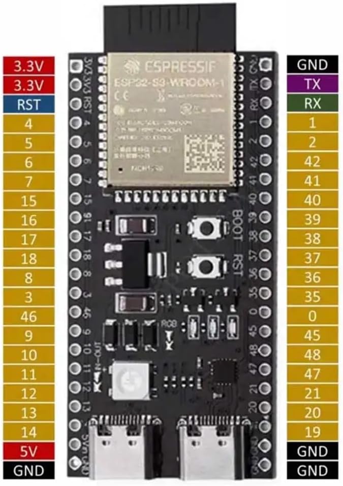 Supporto per l'accelerazione AI. ESP32-S3 MCU aggiunge istruzioni vettoriali per accelerare i calcoli della rete neurale e l'elaborazione del segnale. Gli sviluppatori AI possono utilizzare queste istruzioni vettoriali tramite le librerie ESP- ed ESP-NN per ottenere applicazioni di riconoscimento delle immagini, riattivazione vocale e riconoscimento ad alte prestazioni. Anche ESP-WHO ed ESP-Skainet supporteranno questa funzionalità. WiFi + Bluetooth 5 (LE): ESP32-S3 Wi-Fi a 2,4 GHz (802.11 b/g) e supporta larghezza banda 40 MHz; il suo sottosistema Bluetooth bassa potenza supporta Bluetooth 5 (LE) e Bluetooth Mesh, che possono raggiungere comunicazioni lunga distanza tramite Coded PHY ed estensione broadcast. Supporta anche PHY a 2 Mbps per aumentare velocità trasmissione e produttività dati. Prestazioni radio WiFi e Bluetooth LE ESP32-S3 sono eccellenti e possono funzionare stabilmente anche ad alte temperature. ESP32-S3 fornisce un meccanismo di sicurezza completo e misure di protezione per i dispositivi IoT per prevenire vari attacchi e minacce dannose. Supporta la crittografia flash basata sull'algoritmo -XTS, l'avvio sicuro basato sull'algoritmo , la firma digitale e HMAC. Interfacce IO avanzate: ESP32-S3 ha 45 GPIO programmabili e interfacce periferiche comuni come SPI, I2S, , PWM, , ADC, UART, controller host SD/MMC e controller TwAITM. 14 dei GPIO possono essere configurati come input touch capacitivi per l'interazione HMI. Inoltre, ESP32-S3 è dotato di un coprocessore a bassissimo consumo (ULP), che supporta più modalità a basso consumo ed è ampiamente utilizzato in vari scenari applicativi a basso consumo.