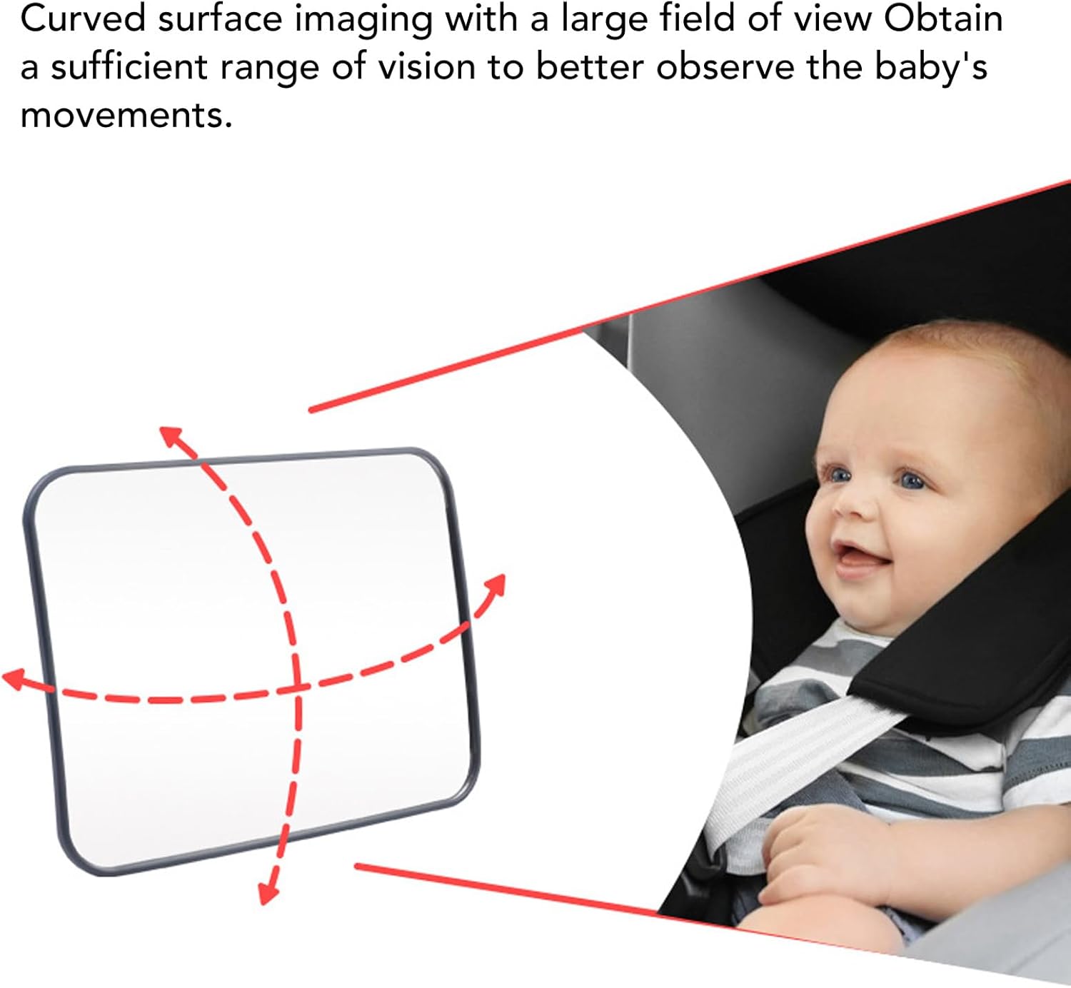 [OBSERVACIÓN SEGURA Y CONVENIENTE] Asegúrese de que los padres observen fácilmente al bebé sin volver atrás, conduciendo con tranquilidad. [VISIBILIDAD MEJORADA] El diseño de gran angular proporciona un campo de visión amplio y claro para controlar la seguridad de su bebé en el automóvil. [FÁCIL INSTALACIÓN] Ajuste flexible adecuado para todos los automóviles, lo que garantiza experiencias de conducción seguras y seguras. [CALIDAD PREMIUM] Hecho de ABS resistente y materiales acrílicos sin olor irritante, lo que ofrece tranquilidad a los padres. [ELECCIÓN DE IDEAL] La instalación rápida y el uso duradero brindan tranquilidad y conveniencia a amigos y familiares con niños.