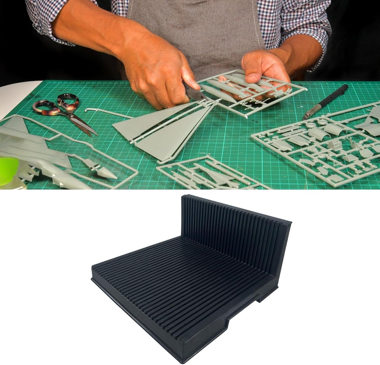 Organizzazione efficiente del flusso di lavoro: fornisce un facile accesso e stoccaggio per i pezzi di modello durante i progetti di assemblaggio, contribuendo a mantenere un processo di costruzione fluido e organizzato Struttura in polipropilene resistente: realizzato in polipropilene che offre una durata affidabile e longevità per un uso ripetuto in applicazioni di modellazione e hobby Soluzione salvaspazio per scrivania: il design compatto si adatta comodamente a qualsiasi spazio di lavoro senza occupare un'area eccessiva, ideale per modellisti e hobbisti con spazio limitato Diverse opzioni di dimensioni: disponibile in varie dimensioni tra cui 32,5 x 7 x 2,5 cm e 34 x 5,5 x 2,5 cm per adattarsi a diverse dimensioni di parti e layout di spazio di lavoro Set completo di organizzazione: include un modello di scaffalatura per attrezzi, fornendo una capacità di organizzazione immediata per i tuoi progetti di modellazione fin dalla confezione