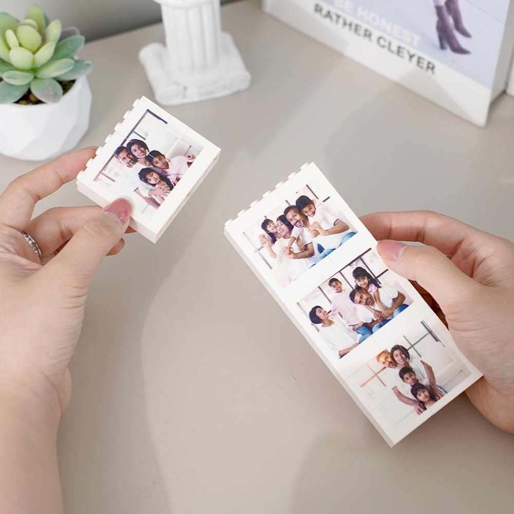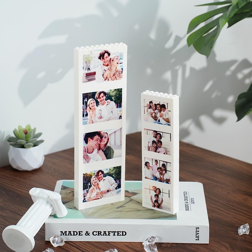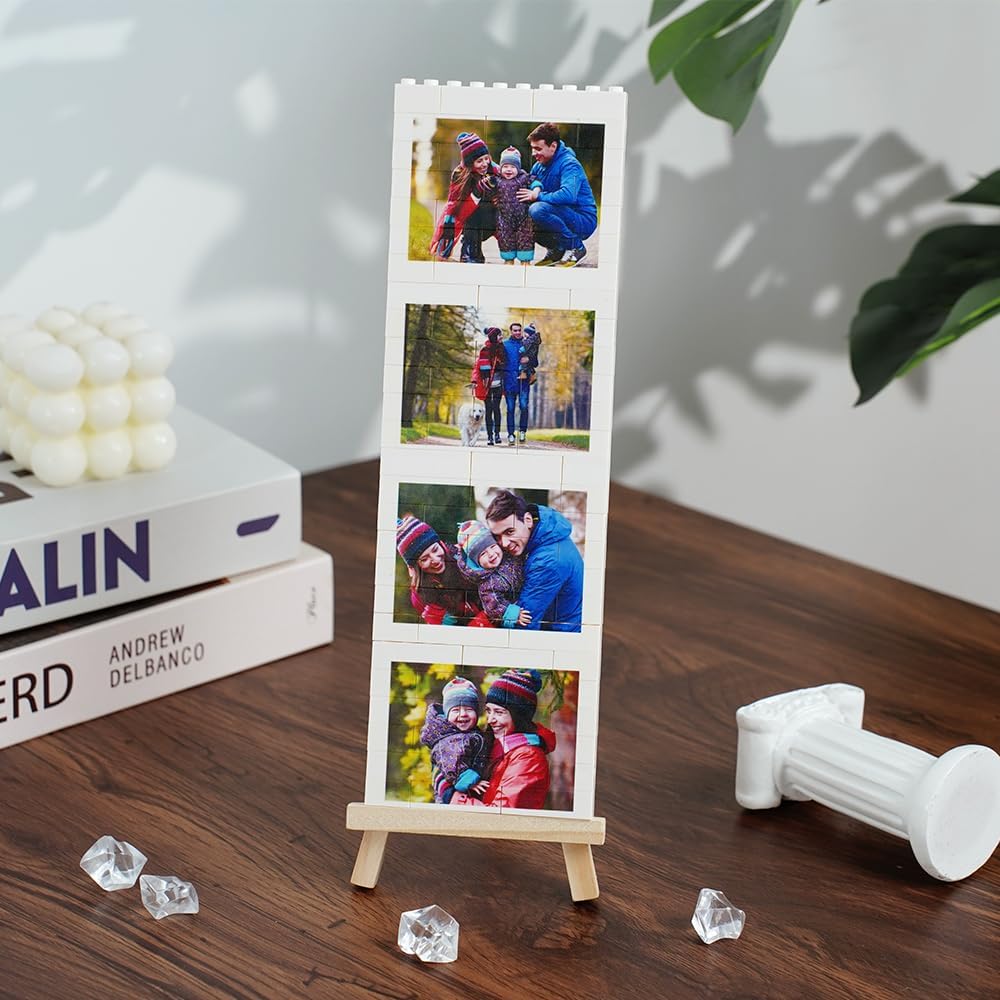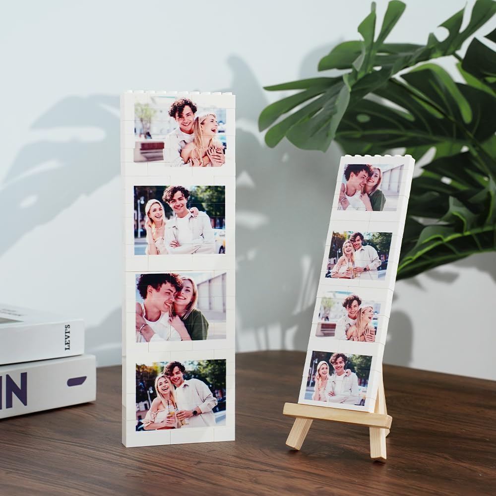 PERSONALIZZAZIONE: 1- Seleziona la dimensione, 2- Clicca sul pulsante giallo a destra "Personalizza ora", 3- Carica 4 foto, 4- Aggiungi al carrello e paga. Opzioni di visualizzazione: viene fornito con un supporto in legno per una presentazione elegante, che consente di mostrare il tuo puzzle personalizzato su qualsiasi superficie piana Regalo versatile: ideale per diverse occasioni, tra cui San Valentino, matrimoni, anniversari e feste di famiglia Design unico: presenta un layout verticale che può contenere più fotografie in una disposizione creativa in stile mattone. Crea un display fotografico unico aggiungendo le tue care fotografie a questo puzzle di mattoni, perfetto per preservare ricordi speciali. Presentazione premurosa: combina il fascino dei blocchi da costruzione con fotografie personali per un pezzo significativo e distintivo