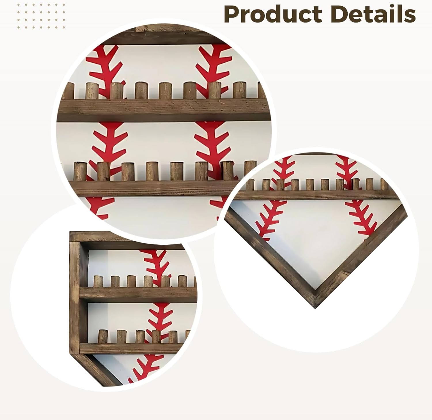 Espositore da parete salvaspazio: facile da installare con ganci inclusi; libera spazio sul bancone; per uffici e stanze più piccole; mantiene i tuoi cimeli organizzati ed esposti Decorazione unica da baseball: giocoso ed elegante con cuciture decorative; progettato per appassionati di sport e collezionisti; mostra i tuoi anelli o medaglie Struttura in legno con finitura scura: struttura in legno di pino; aspetto alla moda ed elegante; migliora qualsiasi stanza; fornisce una qualità duratura per esporre oggetti da collezione Espositore su due livelli: più posizioni circolari su due livelli; mantiene visibile la tua collezione; un must per qualsiasi collezionista serio Posizionamento versatile: aggiunge un tocco sportivo a camere da letto, uffici, grotte e salotti; un'idea per gli amanti del baseball; mostra vari cimeli sportivi, tra cui anelli e medaglie