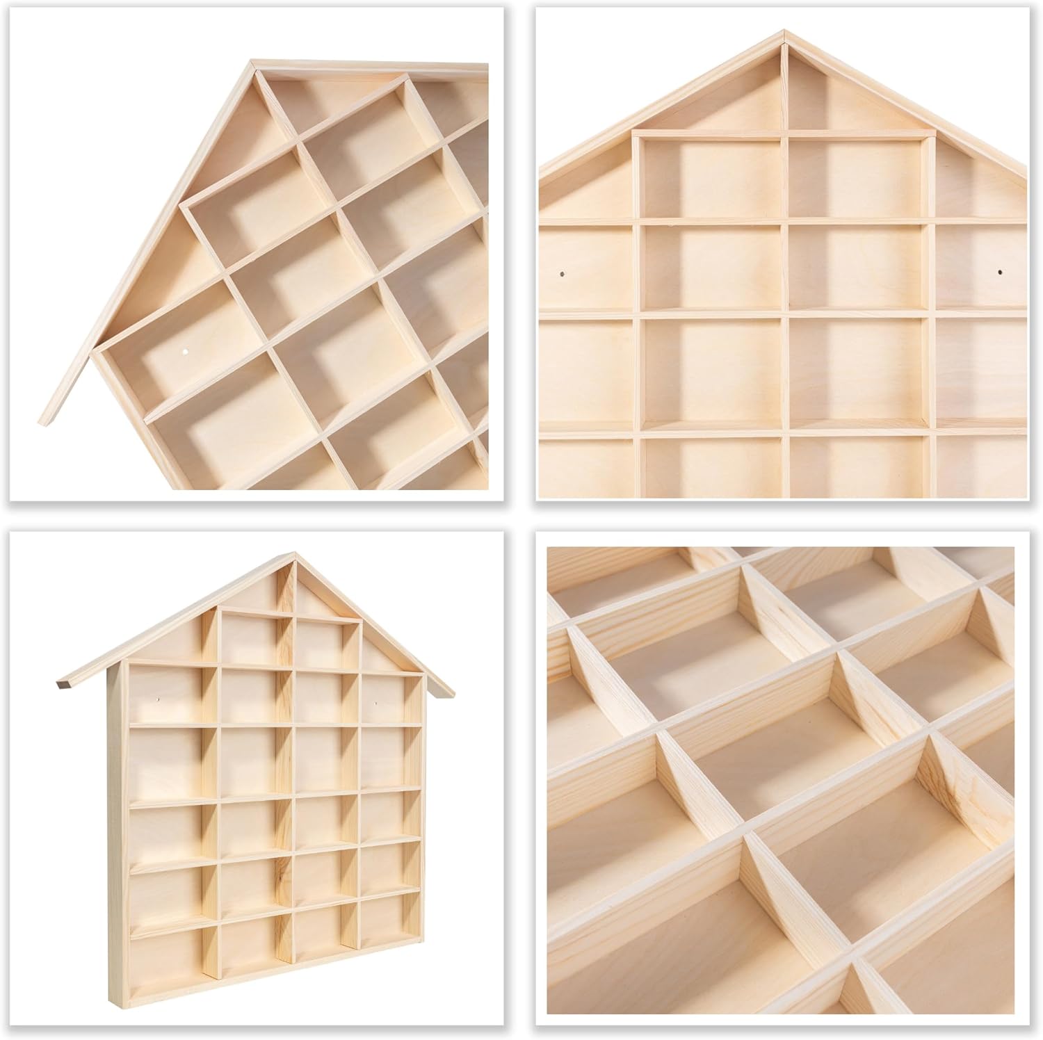 DIMENSIONE PERFETTA – Con una dimensione esterna di 56 x 50 x 3,5 cm (+/- 1 cm) e 28 scomparti, la nostra mini libreria è ideale per conservare e organizzare tutti i tuoi oggetti di valore, accessori, gioielli, prodotti di bellezza, Lego, automobili in miniatura o piccoli profumi. È anche un'ottima idea regalo per un compleanno, Natale, Pasqua o un battesimo. ALTA QUALITÀ – Il legno di pino con cui è realizzato il nostro scaffale proviene da foreste sostenibili nei Carpazi ed è certificato. Fai da te & Fai da te – Le piccole mensole sono verniciate di nero, ma possono comunque essere ridipinte, decorate o verniciate, per tutti i tuoi futuri progetti fai da te. Puoi fare ciò che ti si addice e secondo i tuoi desideri. La vetrina può essere appesa, ma IL PRODOTTO NON COMPRENDE FORI DI FISSAGGIO O KIT DI FISSAGGIO. ORGANIZZAZIONE DELLO SPAZIO – Se hai difficoltà a riporre i tuoi piccoli oggetti, abbiamo LA soluzione per te! Il nostro prodotto è perfetto perché puoi riporre tutti i tuoi piccoli accessori in ogni cubo sul vassoio. Grazie ai divisori la tua finestra sarà ben organizzata. Il piccolo armadio decorerà perfettamente le diverse stanze della tua casa, come la cucina, la sala da pranzo e anche la cameretta di un bambino o di un neonato. MADE IN EU - Proveniamo i nostri prodotti dall'Unione Europea, che ha alcuni degli standard più alti al mondo. Questo è il motivo per cui possiamo garantire ai nostri clienti l'alta qualità dei nostri prodotti. I nostri prodotti sono realizzati con materiali naturali e atossici.