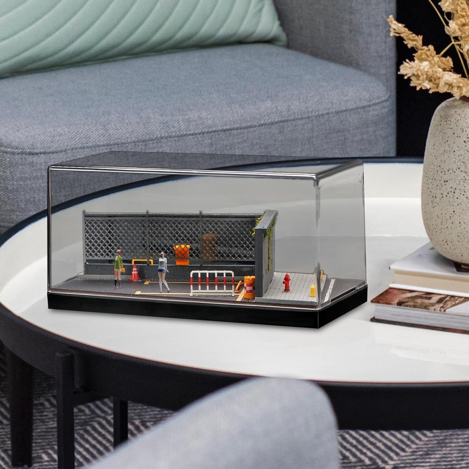 【Materiale】: il supporto per espositore per modellini di auto in lega è realizzato in PVC, robusto MDF (pannello di fibra a media densità) e acrilico trasparente, garantendo durata e visibilità ottimale. Il coperchio in acrilico ad alta trasparenza protegge efficacemente i tuoi preziosi modelli da polvere, sporco e danni accidentali. 【Fascino versatile】: oltre un'ottima vetrina, la vetrina per diorama in scala 1/64 funge anche da elegante soluzione di archiviazione, un'affascinante decorazione da scrivania e un regalo premuroso per appassionati. È ideale per organizzare, ammirare, commemorare modelli speciali o valorizzare l'arredamento di qualsiasi stanza. 【Ambiente stradale realistico】: Diecast Car Garage valorizza la tua esposizione. Questo accessorio trasforma la tua collezione in un diorama dinamico, aggiungendo un tocco realistico che fa davvero risaltare il tuo mondo in miniatura. 【Mostra la tua collezione】: progettata per modelli di auto pressofuse in scala 1/64, miniature e oggetti da collezione, la vetrina per parcheggio in scala 1/64 presenta un coperchio ad alta trasparenza che mette in risalto i tuoi oggetti preziosi, offrendo al contempo sfondo urbano immersivo 【Compatto e portatile】: le dimensioni della scatola portaoggetti per mini modellini di auto sono 19,7 cm x 10 cm x 10 cm (7,76 pollici x 3,94 pollici x 3,94 pollici), perfettamente adatta per scrivanie, librerie o vetrine