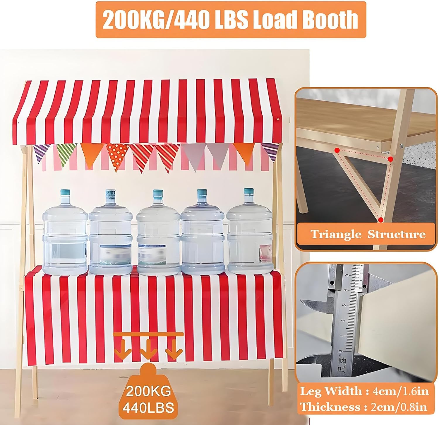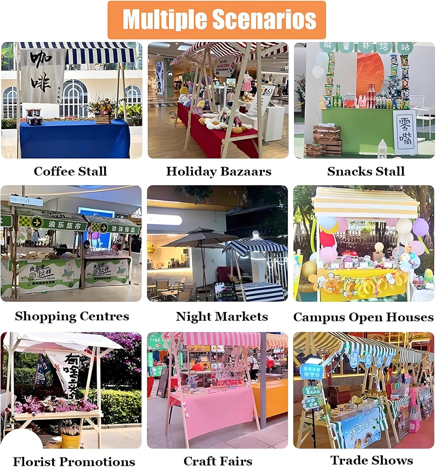 【Tend.a protettiva per le intemperie】: il chiosco è dotato di una resistente tend.a in tessuto Oxford che protegge efficacemente dall'esposizione al sole e protegge la merce dalle intemperie, riducendo al minimo le potenziali perdite economiche. Include anche eleganti tovaglie per attirare i clienti. 【Robusta struttura in legno】: Questo carrello per venditori è costruito con assi da banco larghe 60 cm (23 5/8"). Il suo telaio robusto e il design triangolare migliorano la stabilità e supportano una capacità di carico fino a 200 kg. 【Design pieghevole】Massimizza spazio e praticità con il nostro carrello pieghevole per esposizione di cibo: perfetto per i venditori in movimento, consente di risparmiare spazio quando non in uso, pur rimanendo robusto e affidabile quando aperto. Leggero ma robusto, offre una portabilità senza problemi senza sacrificare la funzionalità. 【Chiosco per cibo】: Scivola attraverso strade acciottolate o fiere affollate con il carrello rimovibile. Niente più mal di schiena per trascinare attrezzature: il tuo stand scorre senza intoppi, anche su campi erbosi o marciapiedi irregolari. 【Uso flessibile per i venditori】: Perfetto per vari contesti, tra cui centri commerciali, mercati agricoli, fiere ed eventi all'aperto. Questo stand versatile è ideale per i venditori ambulanti che vendono cibo, fiori o una vasta gamma di altri prodotti.
