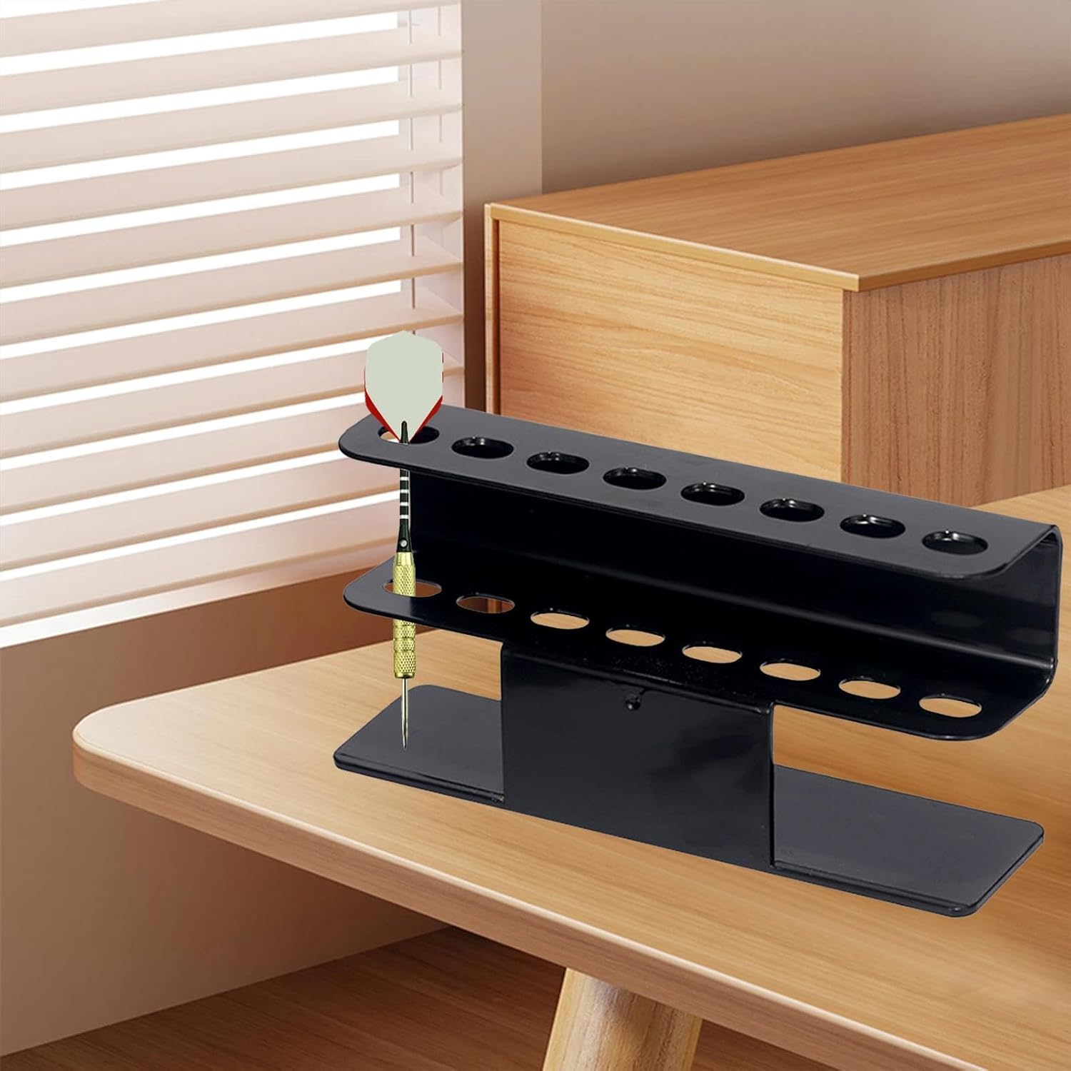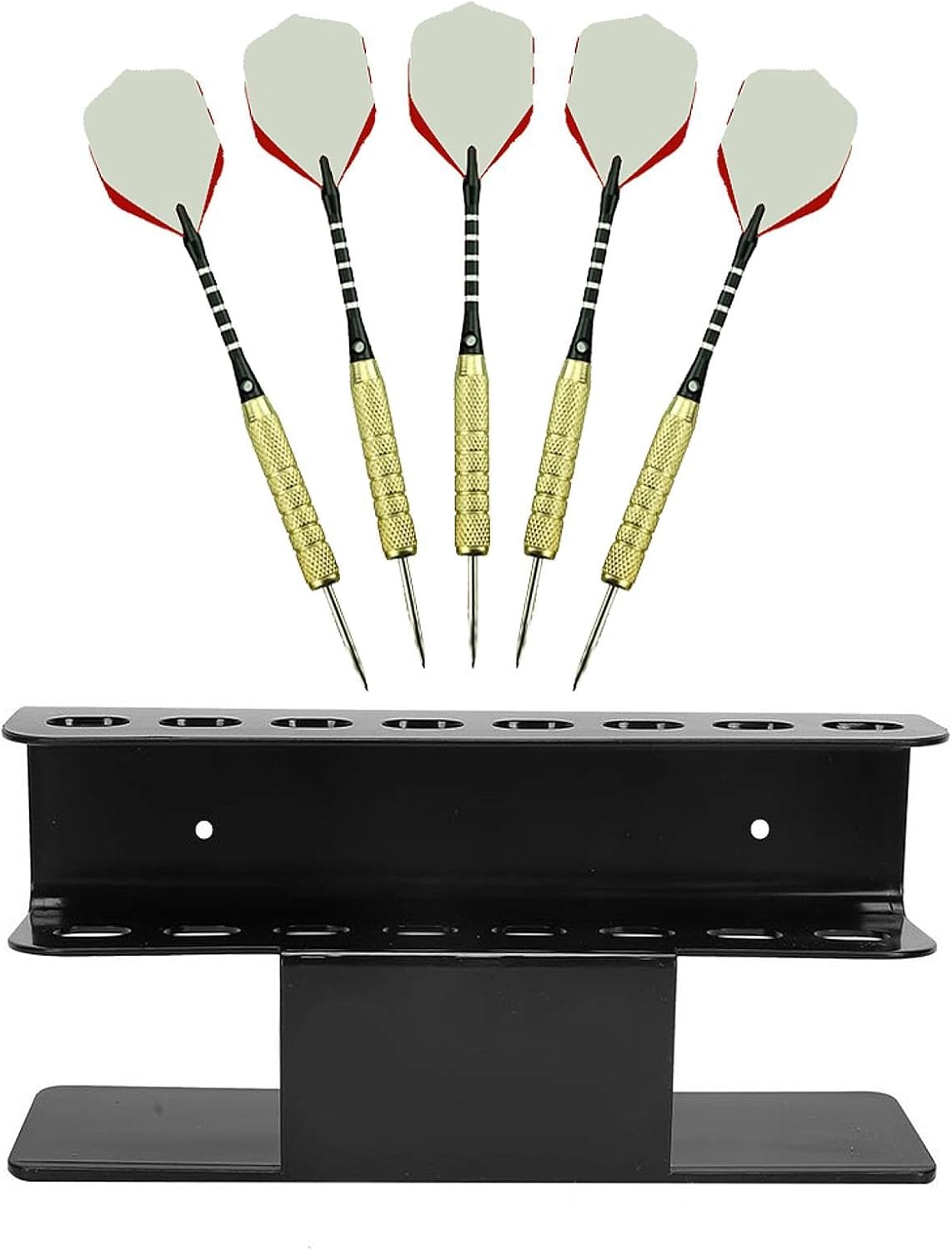 Ampia capacità e compatibilità: progettato per ospitare fino a 8 punte in acciaio, questo espositore è adatto per la maggior parte dei tipi di freccette, rendendolo una scelta versatile per qualsiasi appassionato di freccette Display elegante e organizzato: mantieni il tuo organizzato questo elegante supporto da parete o espositore da tavolo. Con dimensioni di 17 x 4,5 x 7,3 cm Ideale per varie impostazioni: adatto per uso domestico, pareti del garage, bar, pub, sale giochi, officine, sale ufficio e molto altro ancora. Migliora qualsiasi spazio con questa aggiunta funzionale ma elegante Kit di installazione facile incluso: ogni confezione include 1 supporto per freccette in acrilico, 2 viti e 2 tubi di espansione per una facile installazione. Configura il display rapidamente e senza sforzo in qualsiasi posizione desiderata Opzioni di installazione versatili: questo supporto per freccette può essere posizionato piatto su qualsiasi superficie o facilmente montato alla parete utilizzando la vite, grazie ai suoi fori preforati. Ideale per adattarsi alla configurazione preferita