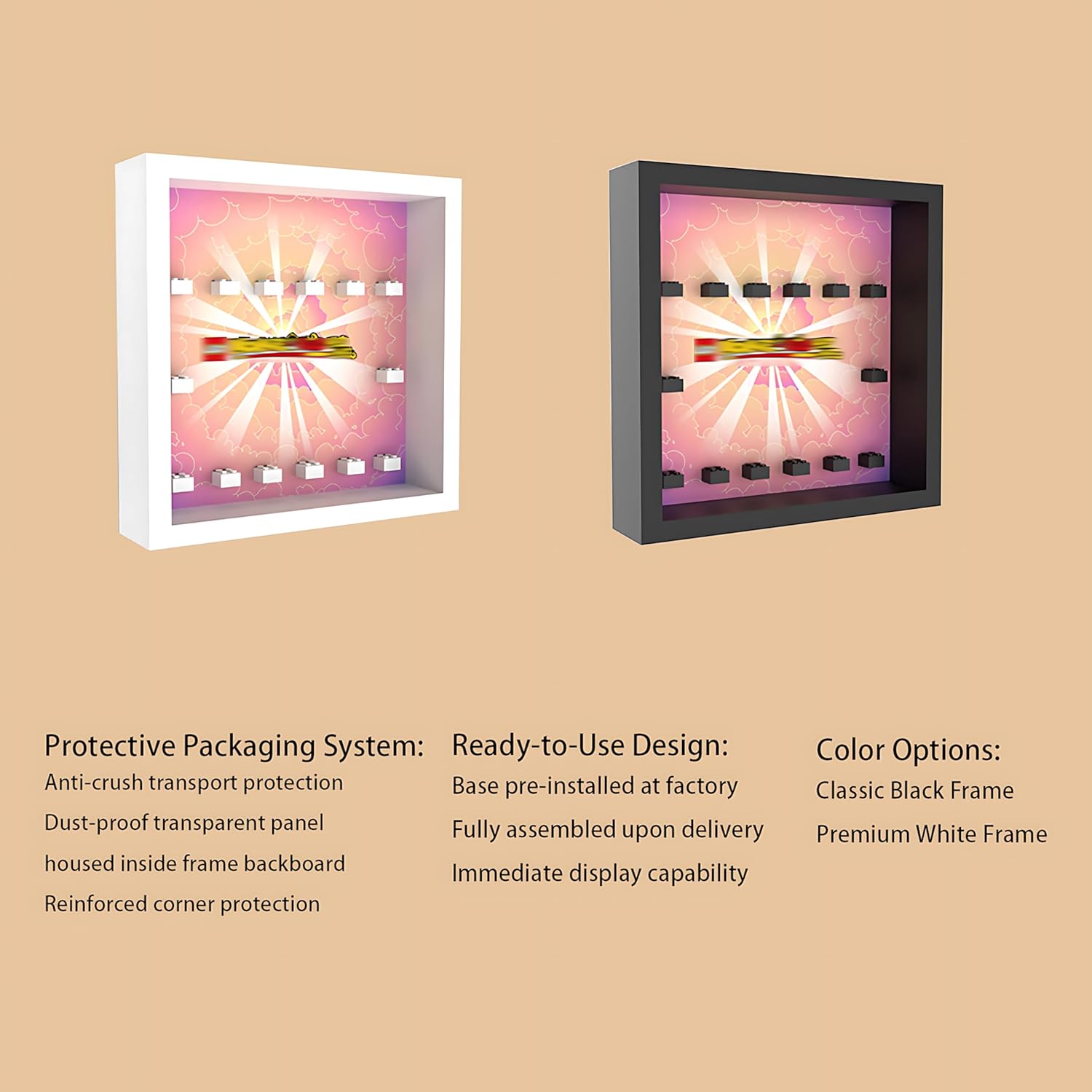 Cornice di visualizzazione premium per minifigure L-e*g-o: Cornice per foto di alta qualità con un pannello di sfondo acrilico progettato su misura, che si abbina perfettamente al tema e allo stile del tuo preferito per le minifigure Le/go. Ogni sfondo è su misura per migliorare la tua collezione, con mattoni prefissati per un facile posizionamento della figura. Disponibile nelle classiche cornici nere o bianche. Pronto all'uso e facile da installare: la robusta base è già installata prima della spedizione, in modo da poter visualizzare la tua collezione di minifigure direttamente fuori dalla scatola. La copertura antipolvere trasparente è conservata in modo sicuro all'interno del tabellone del telaio durante la consegna per evitare danni durante il trasporto. Diverse opzioni di visualizzazione: montaggio a parete o supporto: questa versatile vetrina può essere posizionata su scrivanie, scaffali o montata su pareti, rendendola un elegante pezzo decorativo per salotti, uffici, camere da letto o sale giochi. Ideale come cornice per foto, cornice o cornice da collezione. Regalo perfetto per collezionisti e appassionati: un regalo premuroso e unico per gli amanti delle minifigure Le/go, collezionisti, bambini o chiunque ami l'arredamento creativo. Ideale per compleanni, Natale, inaugurazione della casa o occasioni speciali. Imballaggio sicuro e servizio clienti reattivo: ogni telaio è accuratamente imballato per garantire una consegna sicura. In caso di domande, il nostro cordiale team di assistenza clienti risponderà entro 24 ore tramite Amazon. La vostra soddisfazione è la nostra priorità.