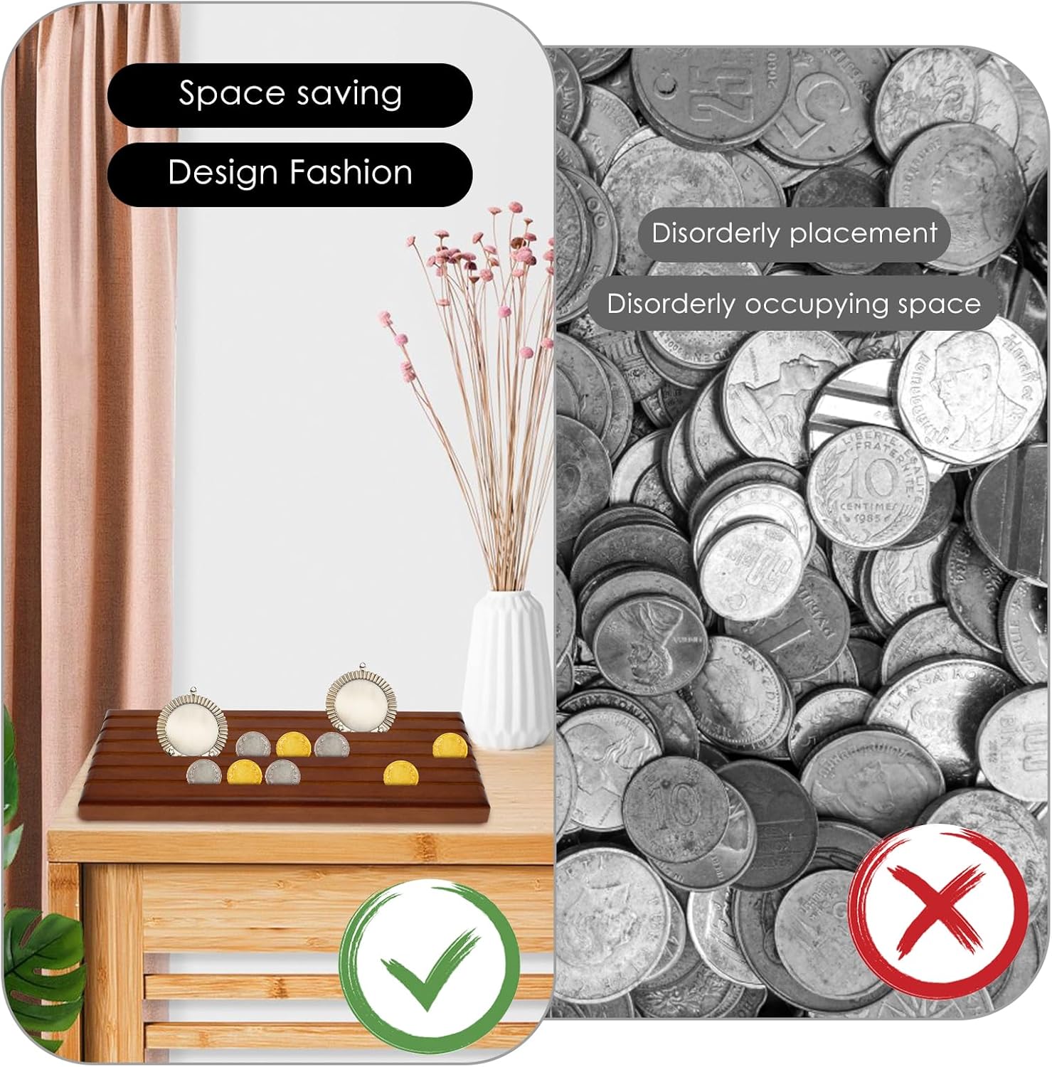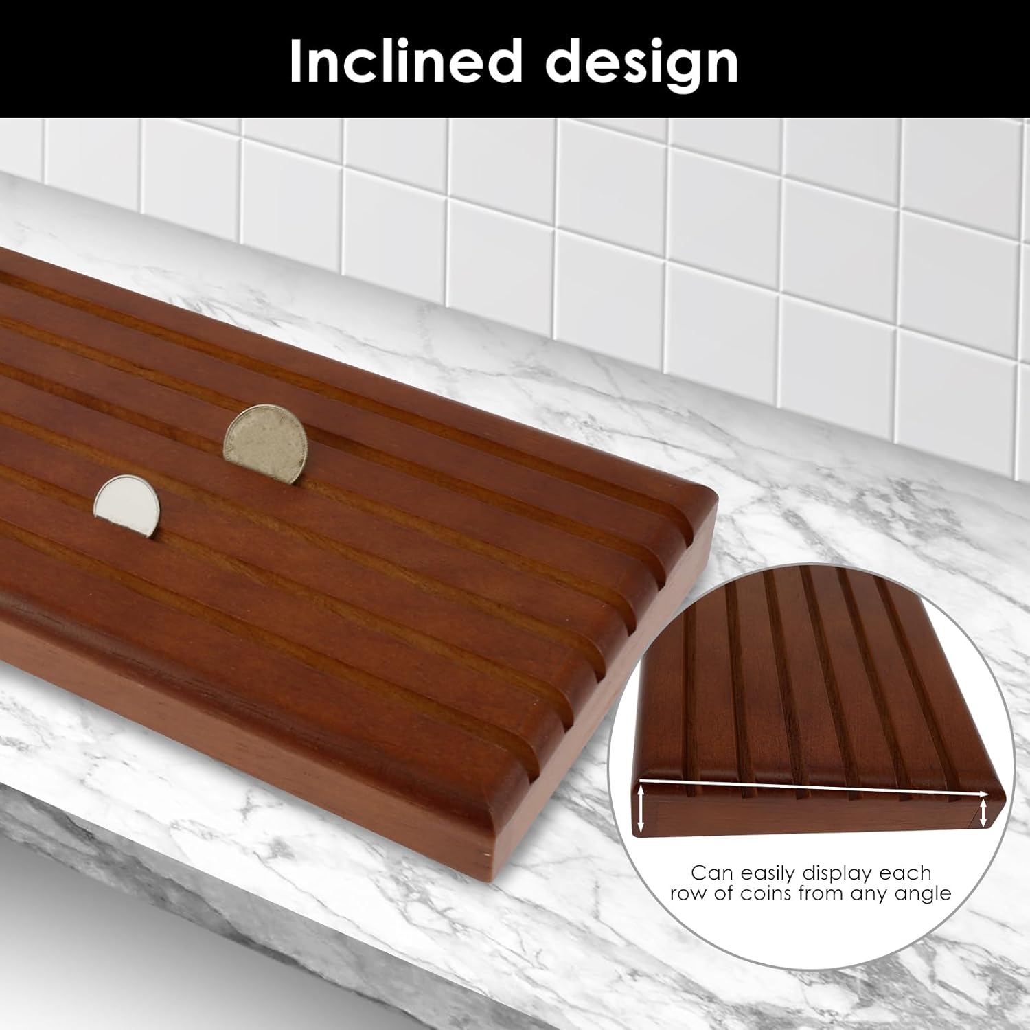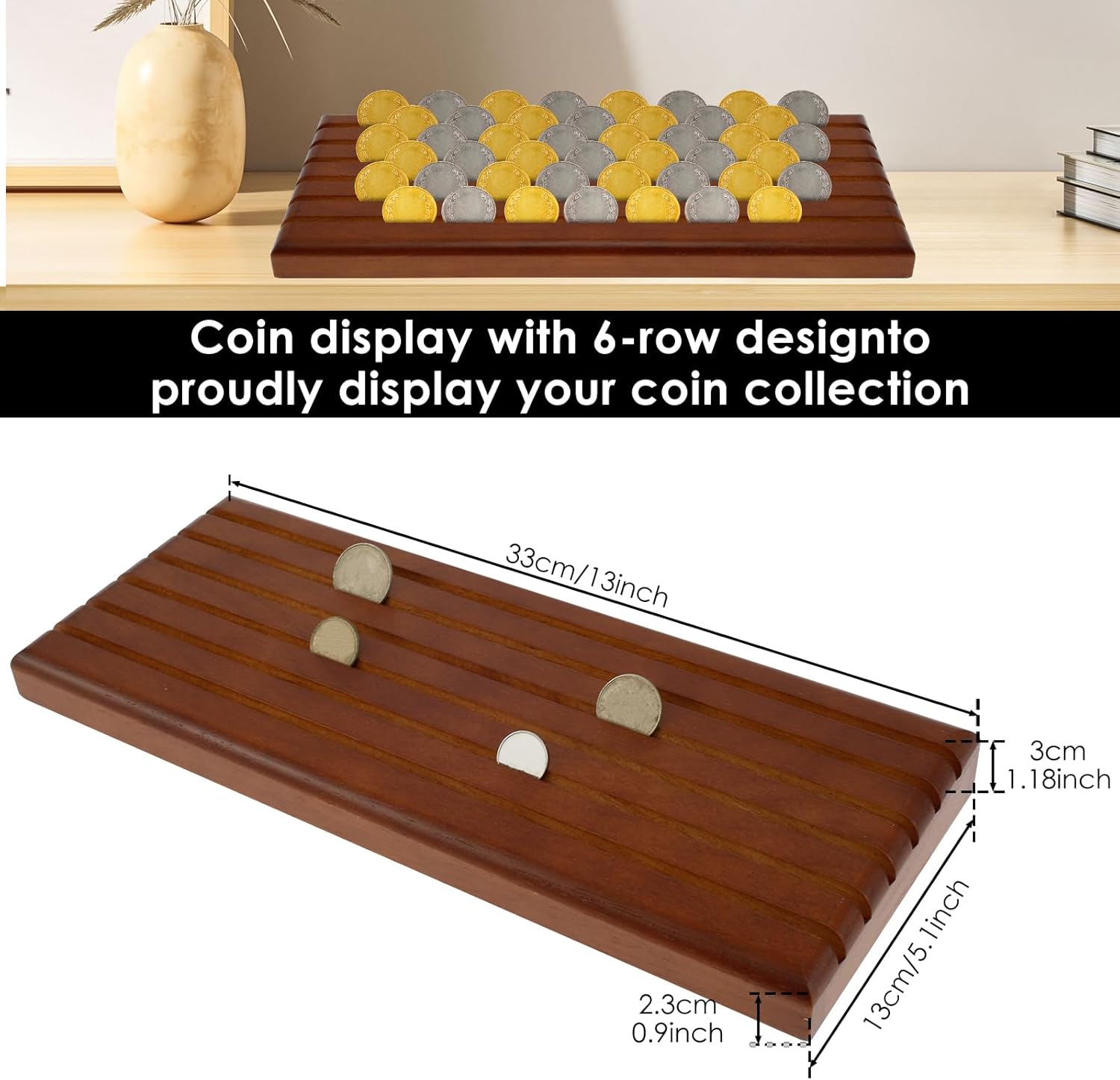 Legno di caucciù naturale: questo espositore per monete sfida è realizzato in legno di caucciù naturale, che mantiene la struttura naturale del legno massiccio con venature chiare e forti, durevole Design inclinato: questo espositore per monete presenta un design inclinato con un'angolazione appropriata, rendendo facile visualizzare ogni fila di monete da qualsiasi angolazione, in modo che tutti abbiano una visione ottimale delle tue preziose medaglie e medaglie commemorative Conservazione conveniente: questo portamonete da collezione misura circa 13 x 5,1 x 0,9 pollici (L x P x A) con una larghezza della fessura di circa 5,5 mm. Lo slot per carte ha le dimensioni giuste per riporle comodamente Decorazioni eleganti: questo portamonete sfida è elegantemente progettato per aggiungere un tocco di raffinatezza a qualsiasi stanza o spazio ufficio e migliorare la bellezza delle tue monete mantenendole organizzate Display multiuso: questo portamonete è dotato di 6 slot per linee, una base robusta e ampio spazio per esporre fino a 40 monete, permettendoti di visualizzare e organizzare gettoni, medaglie, penne e altri piccoli oggetti da collezione in modo ordinato