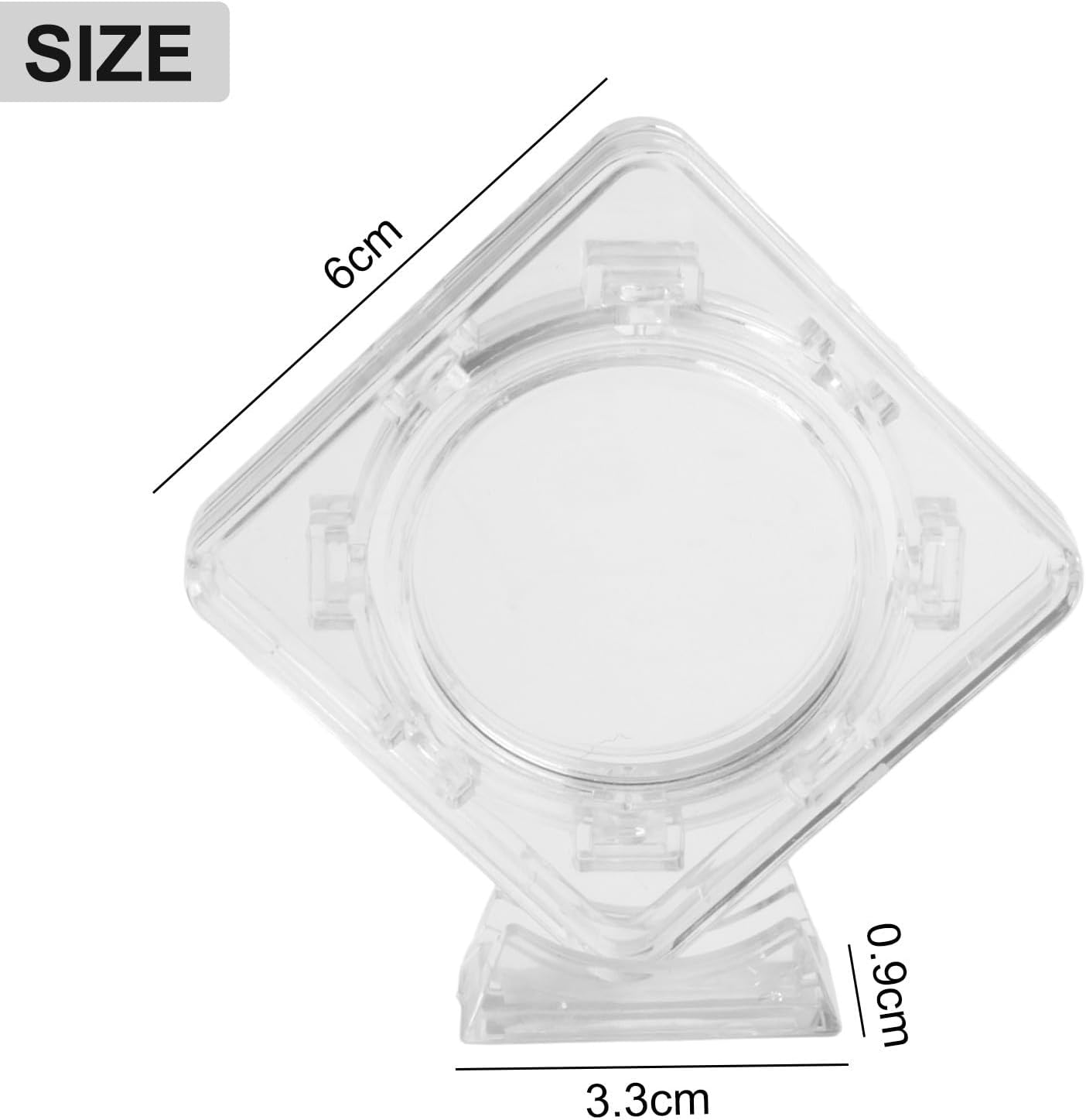 Espositore per monete: questa scatola acrilica trasparente è perfetta per raccogliere e proteggere le tue monete Adatto per monete da 40 mm: progettato specificamente per monete con un diametro di 40 mm, garantendo una vestibilità sicura Nessun cuscino interno: la custodia è senza un cuscino interno, fornendo un display semplice e pulito per le tue monete Materiale acrilico durevole: realizzata in acrilico di alta qualità, questa custodia è robusta e di lunga durata Include supporto: la confezione include un supporto per un facile posizionamento e visualizzazione della scatola di protezione delle monete