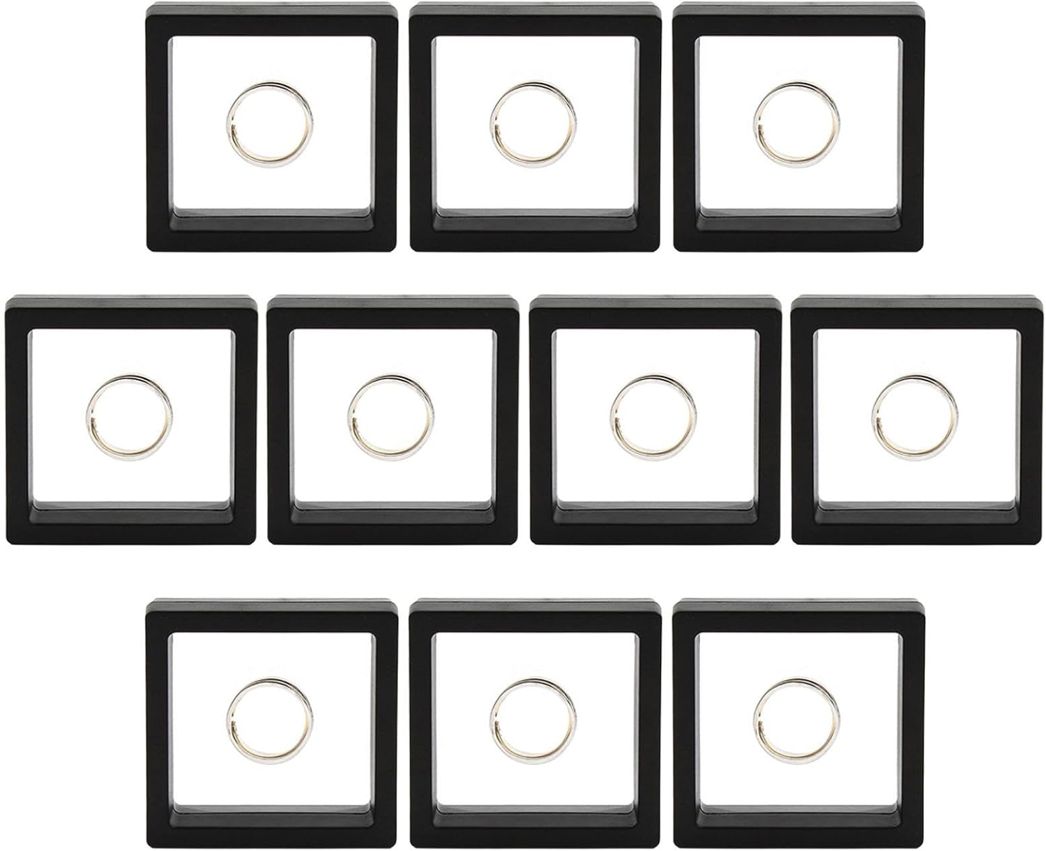 Pellicola in TPU: poiché il display per monete è realizzato in materiale PP e pellicola TPU flessibile, è leggero, molto forte, buona elasticità e alta trasparenza Previene i graffi: la caratteristica del display per monete galleggiante è quella di far fluttuare i tuoi gioielli tra due pellicole trasparenti flessibili, aggiungendo un effetto levitazione 3D. Sigillato per evitare urti e graffi sui gioielli. Installazione rapida: la vetrina per monete è facile da installare, non solo grazie al design con fibbia, ma anche per aprire la scatola per gioielli, mettere gli oggetti tra la trasparenza e regolare la posizione, chiudere la scatola e nella staffa di visualizzazione. Buona protezione: il vantaggio di una vetrina galleggiante 3D è che ha una chiusura salda, che può prevenire i graffi causati dalla conservazione all'aria aperta ed evitare l'ossidazione dovuta al contatto diretto con aria e polvere. Multiuso: il vantaggio di una cornice galleggiante 3D è che ha una vasta gamma di usi, non solo adatta per anelli e bracciali, ma può anche essere utilizzata per esporre medaglie, francobolli, patatine e altri souvenir.