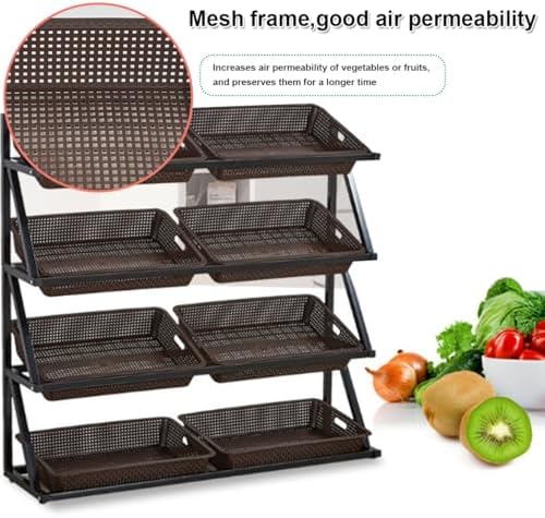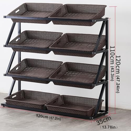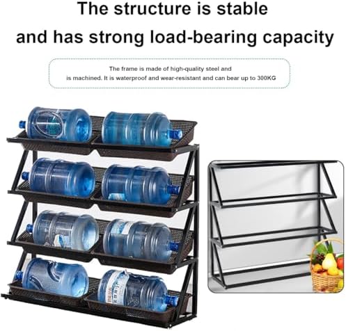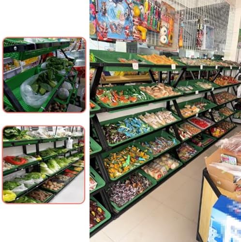 1. Espositore in ferro: tubo di ferro spesso, vernice spray superficiale, impermeabile, non sbiadisce. Saldatura a tenuta stagna, non facile da deformare e rompere, stabile e senza vibrazioni. Il telaio complessivo sopporta 300 kg/660 libbre. 3. Piedini antiscivolo: movimento silenzioso, nessun danno al pavimento, sicuro e stabile, nessuna vibrazione. 2. Scaffali per supermercati di grande capacità: gli scaffali per la frutta dei supermercati hanno ringhiere di sicurezza laterali, un design con apertura angolata anteriore bassa e posteriore alta, comodi da prendere e riporre, un ampio spazio di stoccaggio a strati, una classificazione ordinata, comodi da prendere e riporre, puliti e ordinati. 5. Facile da montare: l'espositore per la vendita al dettaglio del supermercato è facile da installare, è dotato di accessori, può essere installato con successo in pochi minuti e può esporre immediatamente snack e articoli che devono essere esposti! 4. Uso commerciale: molto adatto per negozi al dettaglio o per uso commerciale. Può essere utilizzato in supermercati, farmacie, minimarket, dormitori, soggiorni, camere da letto, cucine e altri luoghi per conservare frutta, verdura, libri, giocattoli, prodotti agricoli, cipolle, patate, snack e altri piccoli alimenti che possono essere acquistati più volte.