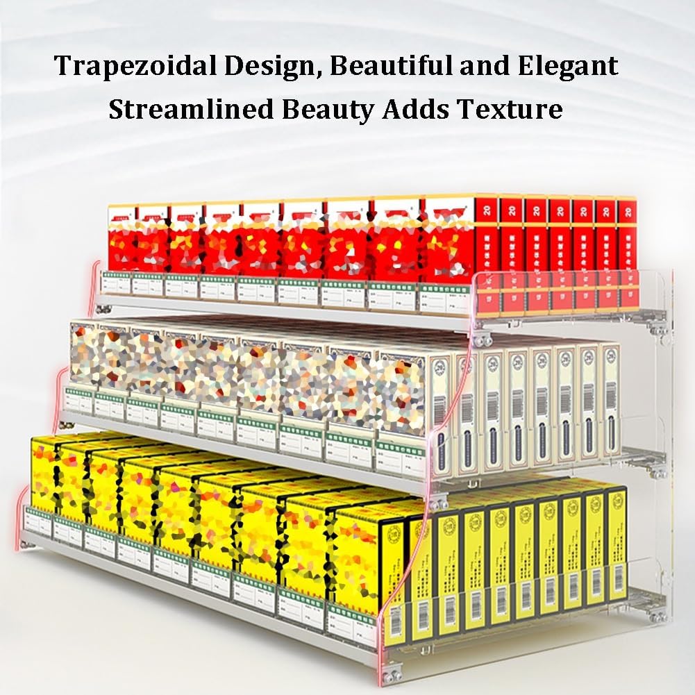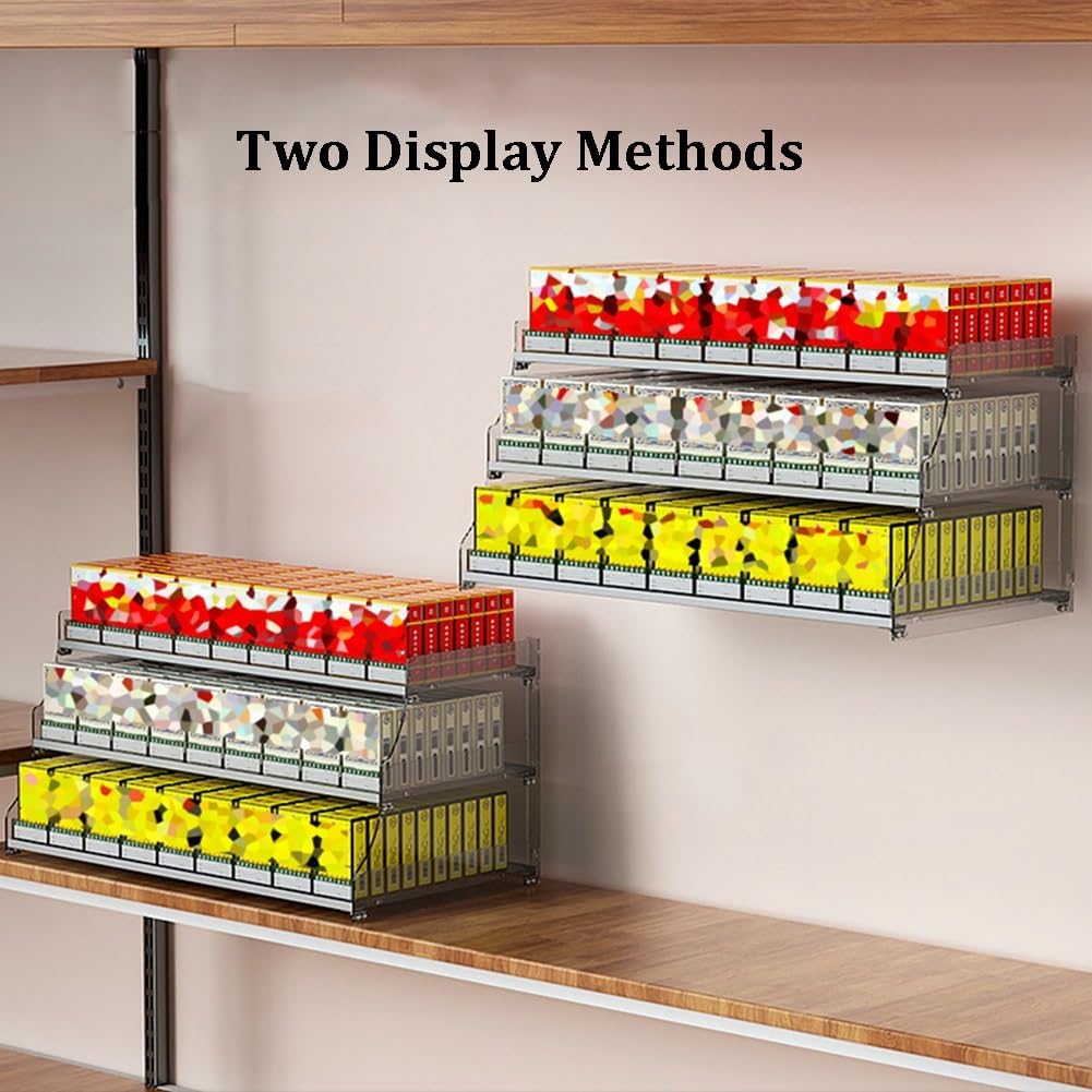 Espositore acrilico: materiale acrilico, superficie lucida, buona sensazione al tatto, atmosfera esclusiva, design molto pratico, durevole e trasparente, i tuoi ospiti possono vedere facilmente la merce. Bocchino automatico: il bocchino altamente trasparente spinge automaticamente le sigarette ed è più comodo da usare. Grazie ad una molla in acciaio inossidabile di alta qualità, può essere spinto avanti e indietro più volte. Montaggio a parete/bancone: questo espositore per sigarette può anche essere appeso al muro per una visualizzazione chiara e un risparmio di spazio. Tutte le opzioni disponibili possono essere facilmente visualizzate occupando uno spazio minimo, tranne quando posizionate sul bancone del negozio. Versatilità: questo display è facile da usare e da pulire, rendendo la manutenzione un gioco da ragazzi. Che tu stia allestendo un negozio in un centro commerciale, in una mensa, in un supermercato o in qualsiasi altro luogo, questo espositore è la soluzione perfetta per esporre i tuoi prodotti. Montaggio a parete: viti di estensione incluse nella confezione, l'installazione a parete richiede solo pochi minuti con gli strumenti necessari per una visualizzazione chiara e un risparmio di spazio.